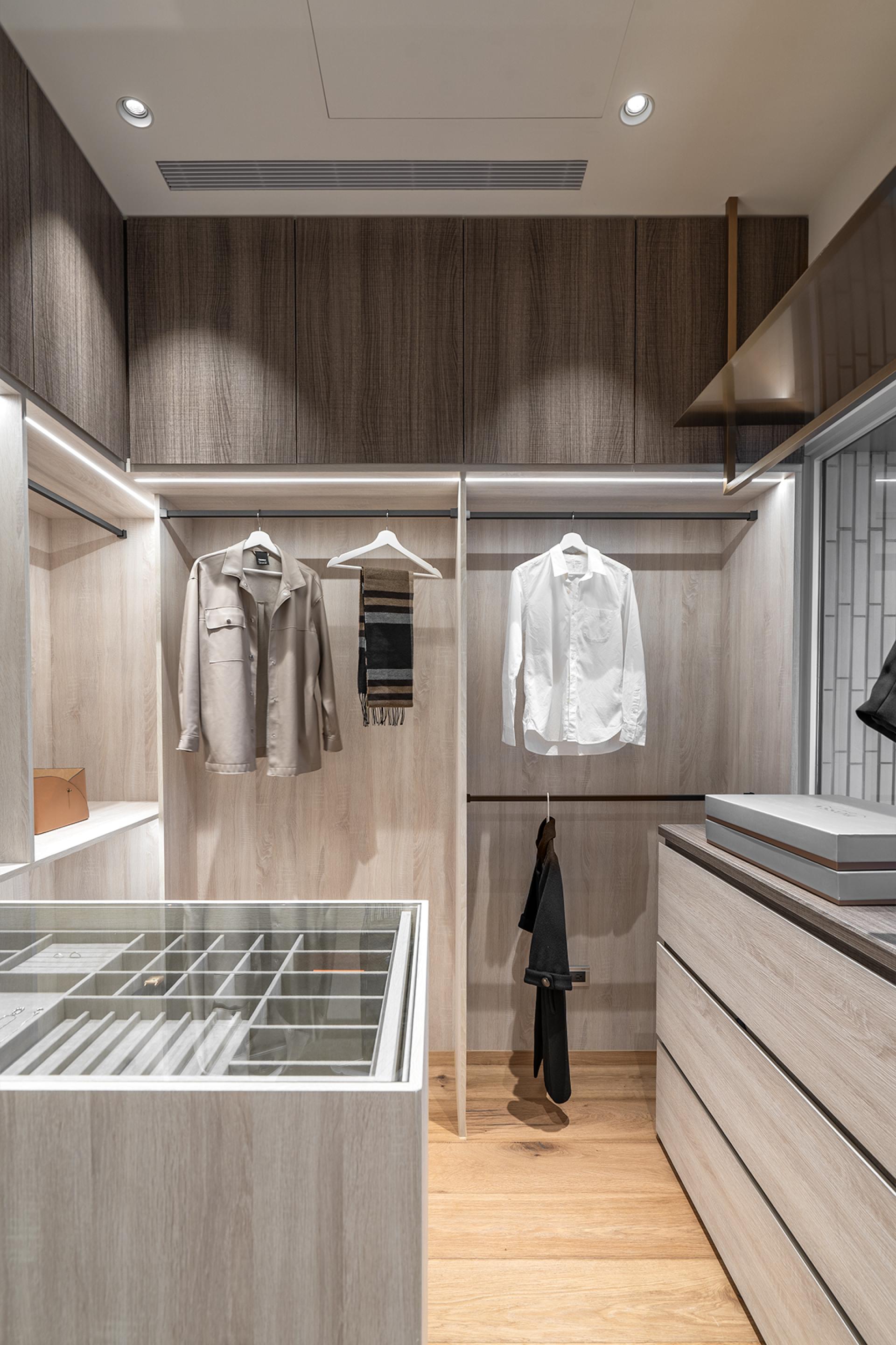 Meticulously treated the walls with a specialized wax coating that repels fingerprints and resists friction marks, ensuring effortless maintenance and prioritizing impeccable cleanliness. Deep-hued cabinetry minimizes visible smudges while instilling a sense of visual serenity. A carefully curated interplay of warm gray stone and wood-grain textures is enriched by subtle amber accents, achieving a delicate equilibrium between tactile warmth and refined contrast.