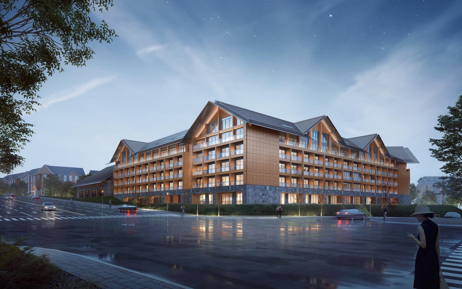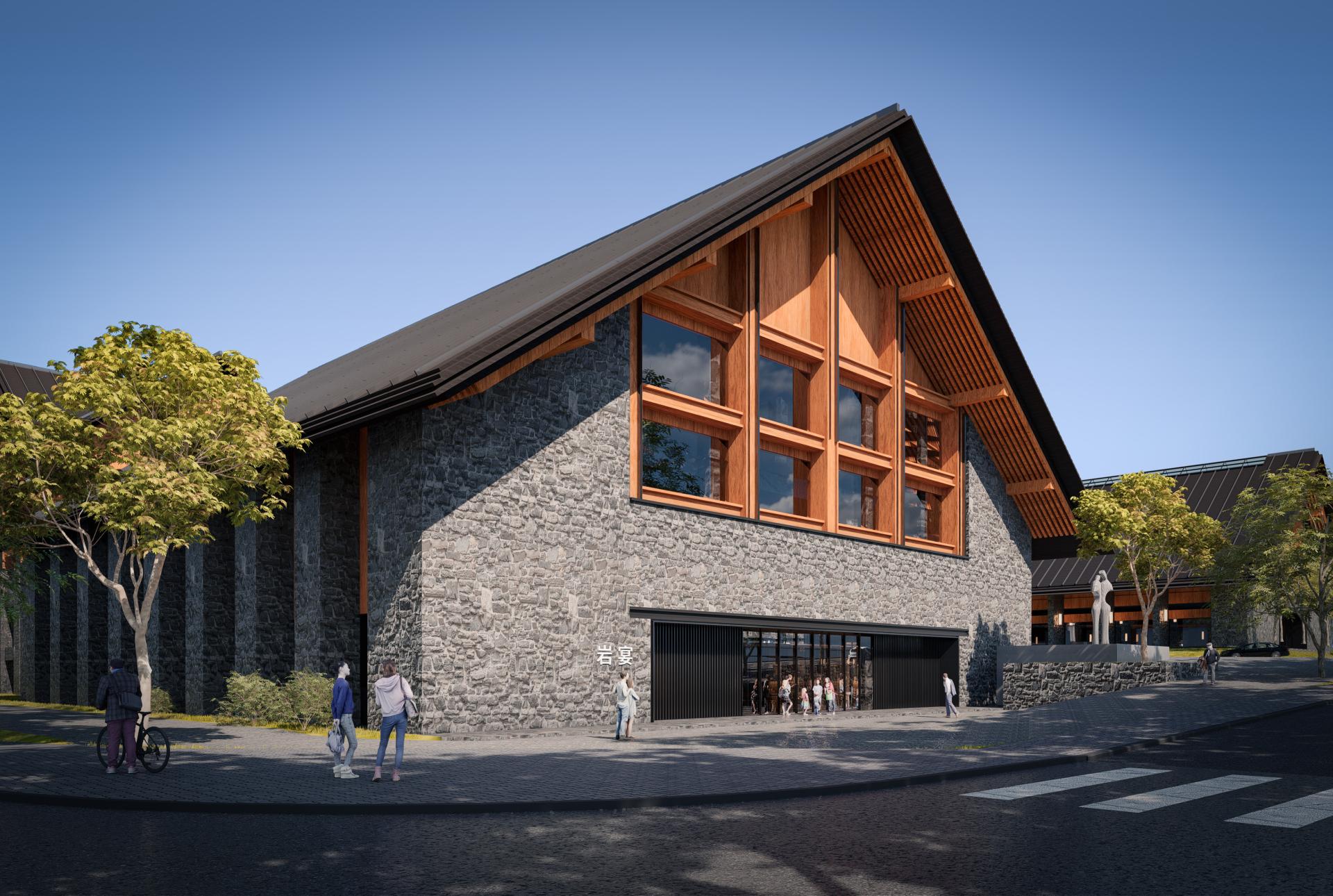 The overall building facade adopts the three-stage structural design and the base material is mainly ashlar, the local unique ashlar is used to build the exterior surface and are stacked according to local stacking methods, forming a stable building base. The middle part with Hemu style is decorated with imitation red pine wood grain aluminum plate to restore the architectural style of Hemu Village and reflect the local architectural features. The upper end features a Hemu architectural roof form and incorporates Velux skylights to preserve character and make full use of the pitched roof space. In the early stage of design, we consider the design scheme of the facade lighting and reserve the location of the light for hidden installation, so as to achieve the effect of seeing the light but not the fixture.