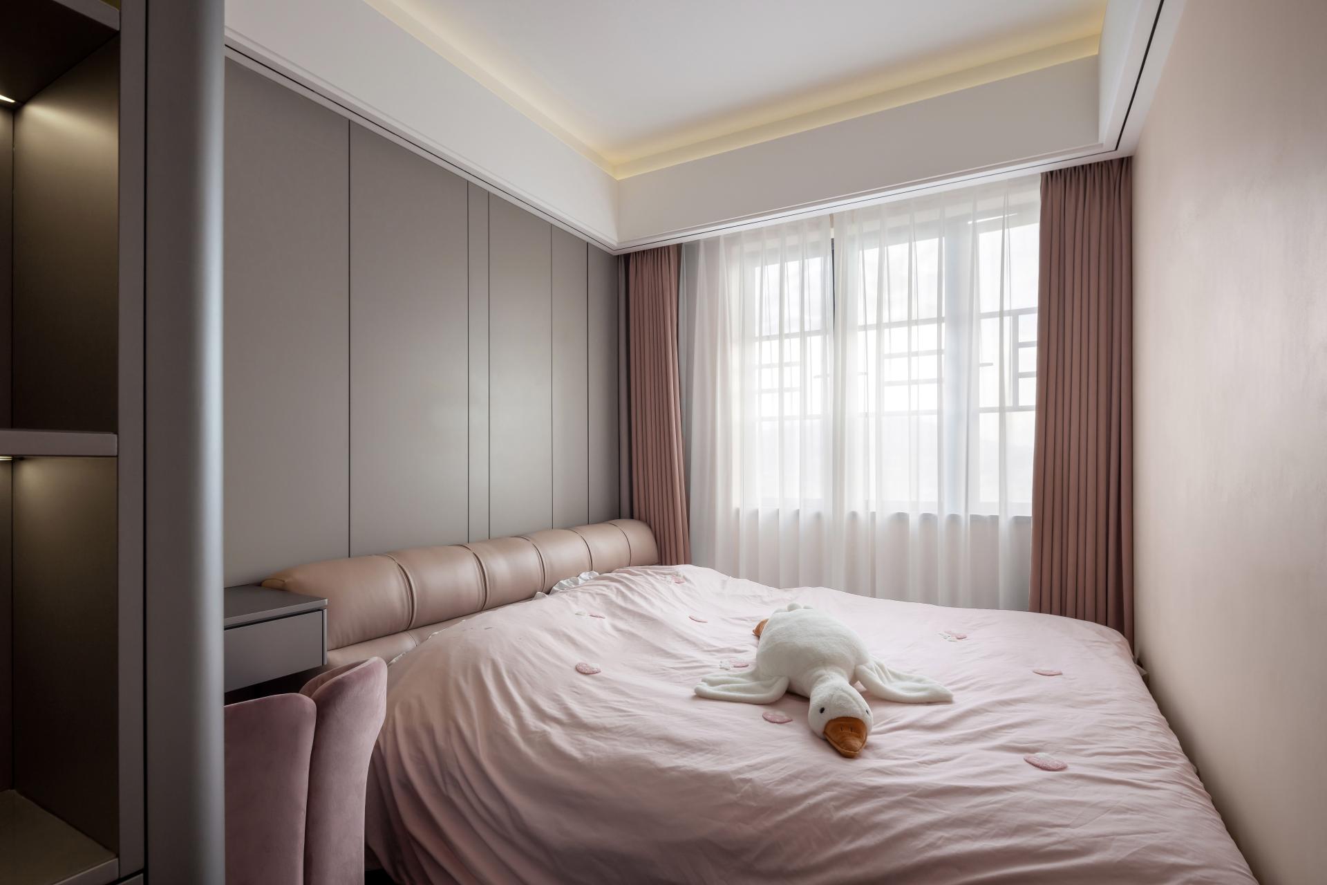 Each bedroom is personalized to reflect the unique aesthetics and habits of its occupant. From the serene guest room to the charming, soft-pink daughter’s room, the design nurtures personal expression and inner harmony, fostering restful and peaceful dreams.