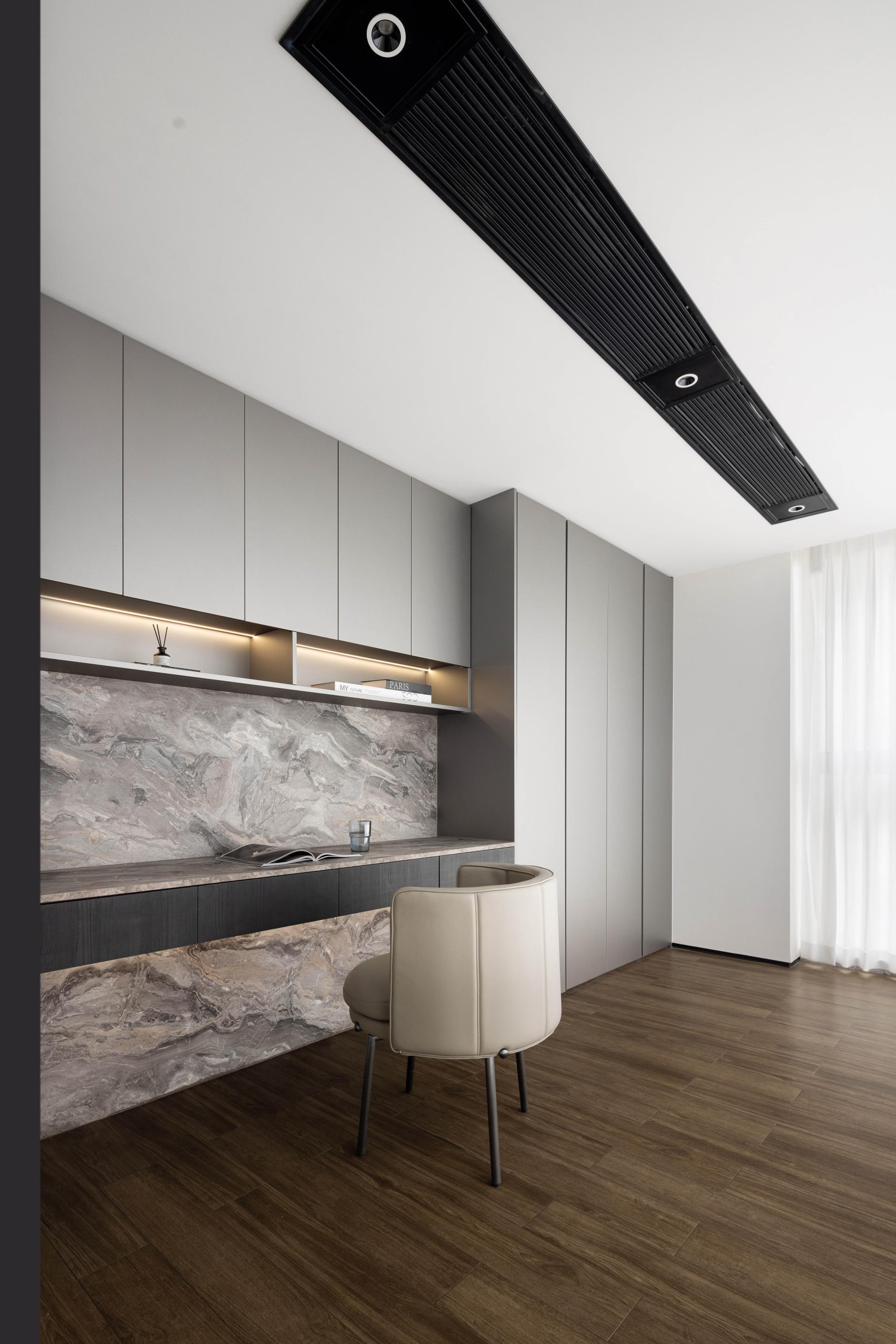 Designed as a multifunctional space for storage, work, and reading, the study offers a spacious and thoughtfully organized environment. Every aspect is meticulously considered, fostering a sense of tranquility and fulfillment.
