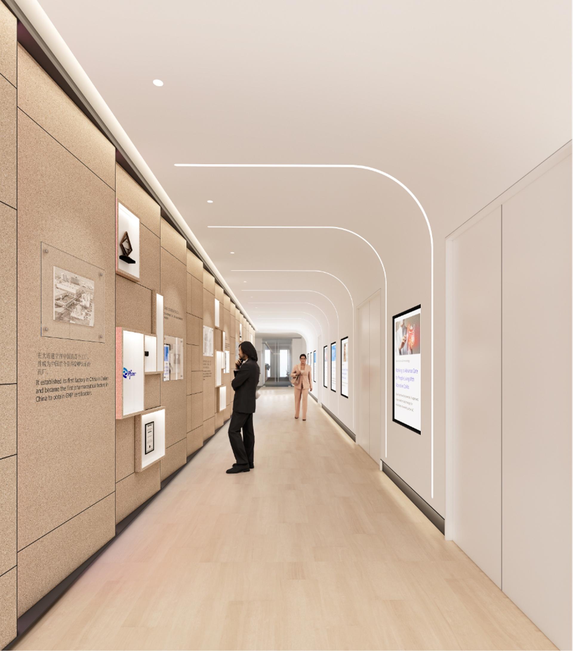 The project embraces low-carbon design principles, integrating ESG concepts with cutting-edge technologies like IoT. Innovatively, it utilizes 3D printing technology with recycled materials, transforming coffee grounds and pharmaceutical packaging into granules that are repurposed into soft furnishings. These elements incorporate cultural, urban, and corporate historical memories, aligning with Pfizer's mission of "breakthroughs that change patients' lives." Additionally, adhering to energy-saving goals, IoT technology enables energy consumption monitoring and smart lighting control for spatial optimization.