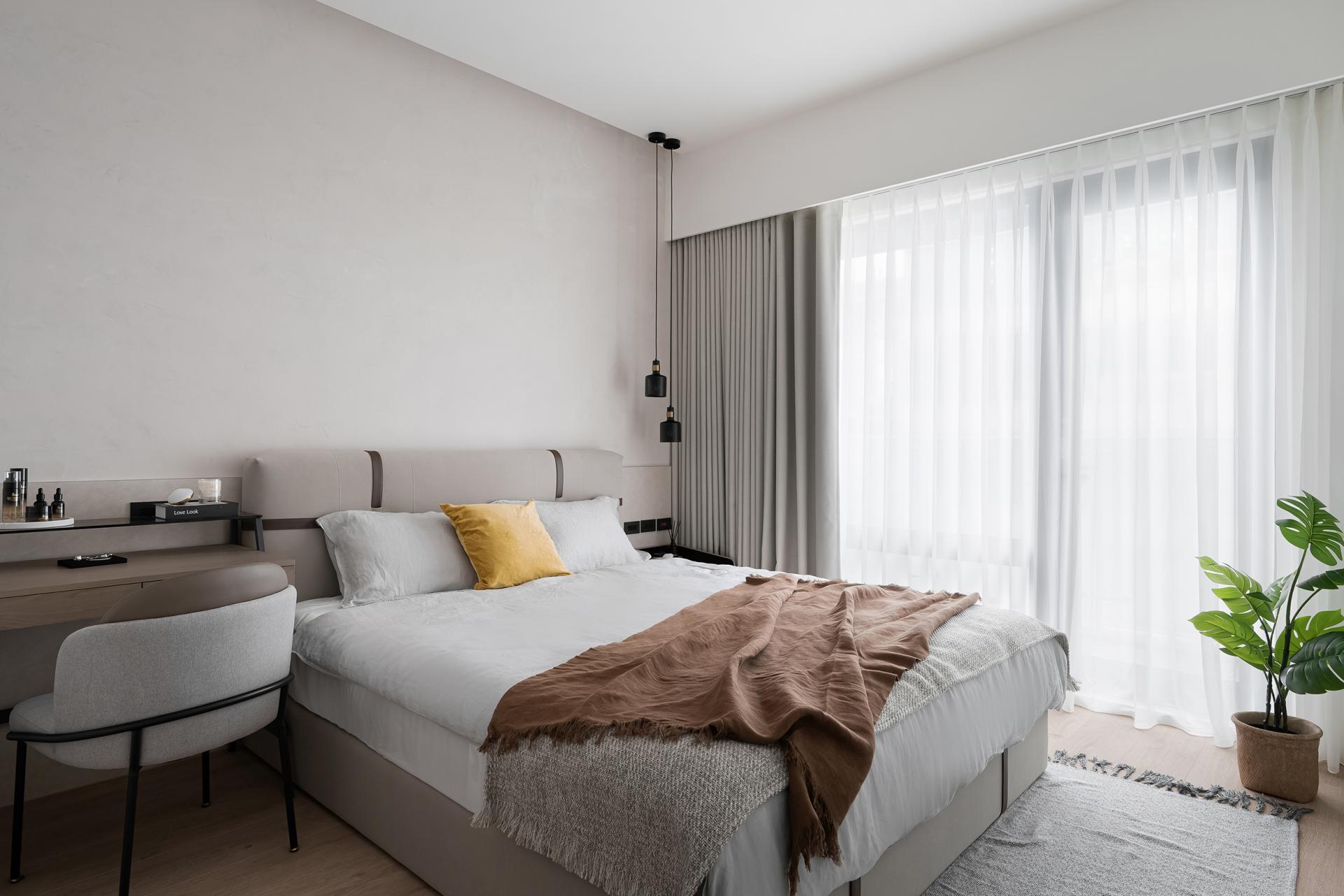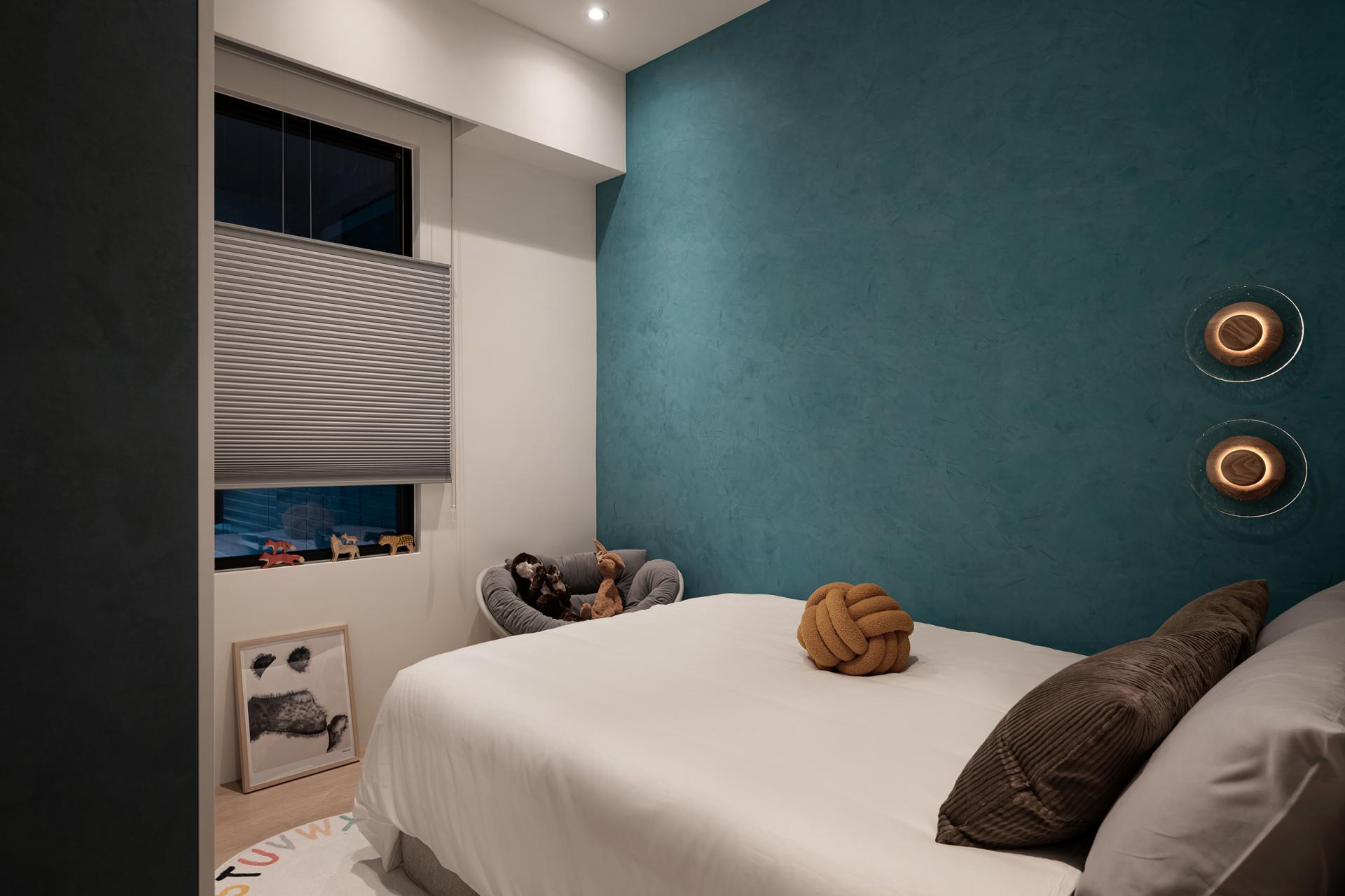 The design is based on an open plan, seamlessly connecting the living room and study to create a more spacious and flexible living area. A standout feature is the use of artistic paint on key accent walls. Unique textures achieved through trowel and hand-applied techniques injected an artistic expression into the space; set against a cool-toned base, delicate layers emphasized the inherent beauty of the materials. This approach is applied to the living room TV wall as well as the headboard areas in both the master and children’s bedrooms, creating a rich, dynamic texture that balances a sense of calm with lively energy.