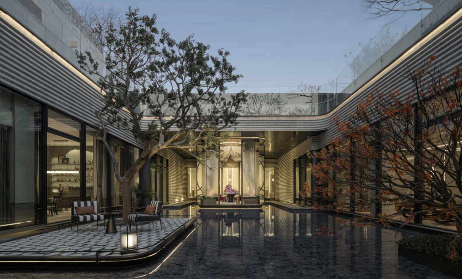 “Shanghai” style has always been the cultural heritage of the long history international city, which is a unique cultural symbol of Shanghai. It is characterized by the integration of the essence of Western architecture and the oriental space philosophy, and is deeply refined and elegant. The City Park project is adjacent to the Wedge Green Park in Beicai, Shanghai. The target customer group is mostly foreign and returned overseas practitioners who attach great importance to socializing and sports, and advocate nature and art. The design starts from the three dimensions of urban humanities, site characteristics, and customer attributes, and is committed to creating a top luxury hotel life next to Beicai Central Park. Introduce the quality and temperament of the world-famous New York Waldorf Astoria Hotel in Manhattan, USA. Propose a design theme with the concept of "Waldorf in the Park", and coordinate the design of landscape, architecture, fine decoration and other professional styles to reproduce and interpret the classic space scenes of the Waldorf Astoria Hotel, and jointly create a modern mansion where nature and prosperity are integrated, that is, a holiday life in a natural park on one side and a Shanghai style life in a modern city on the other. This community where nature and prosperity are integrated is also open to all rivers and is inclusive, and will write future classics and the contemporary vitality of urban residential aesthetics.