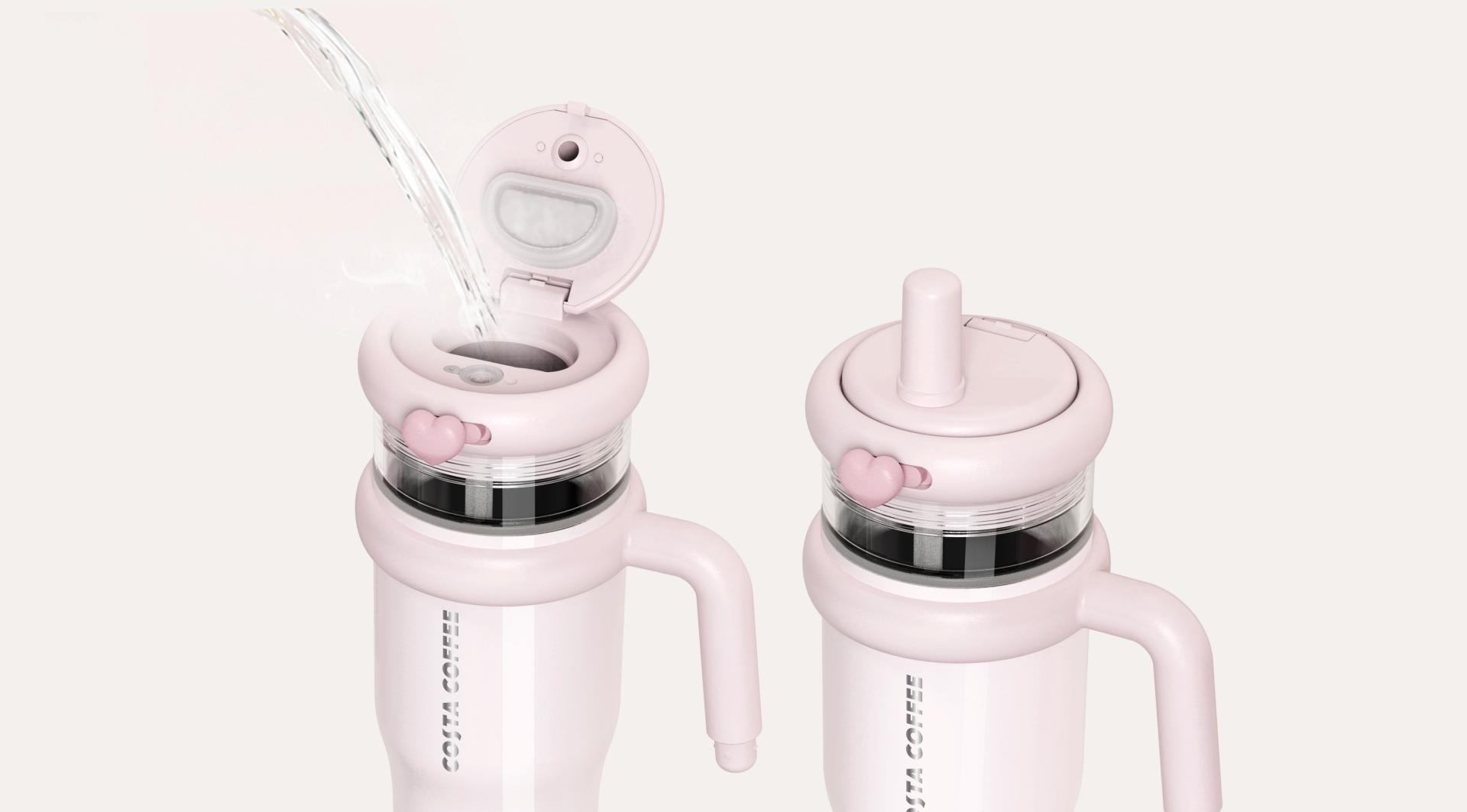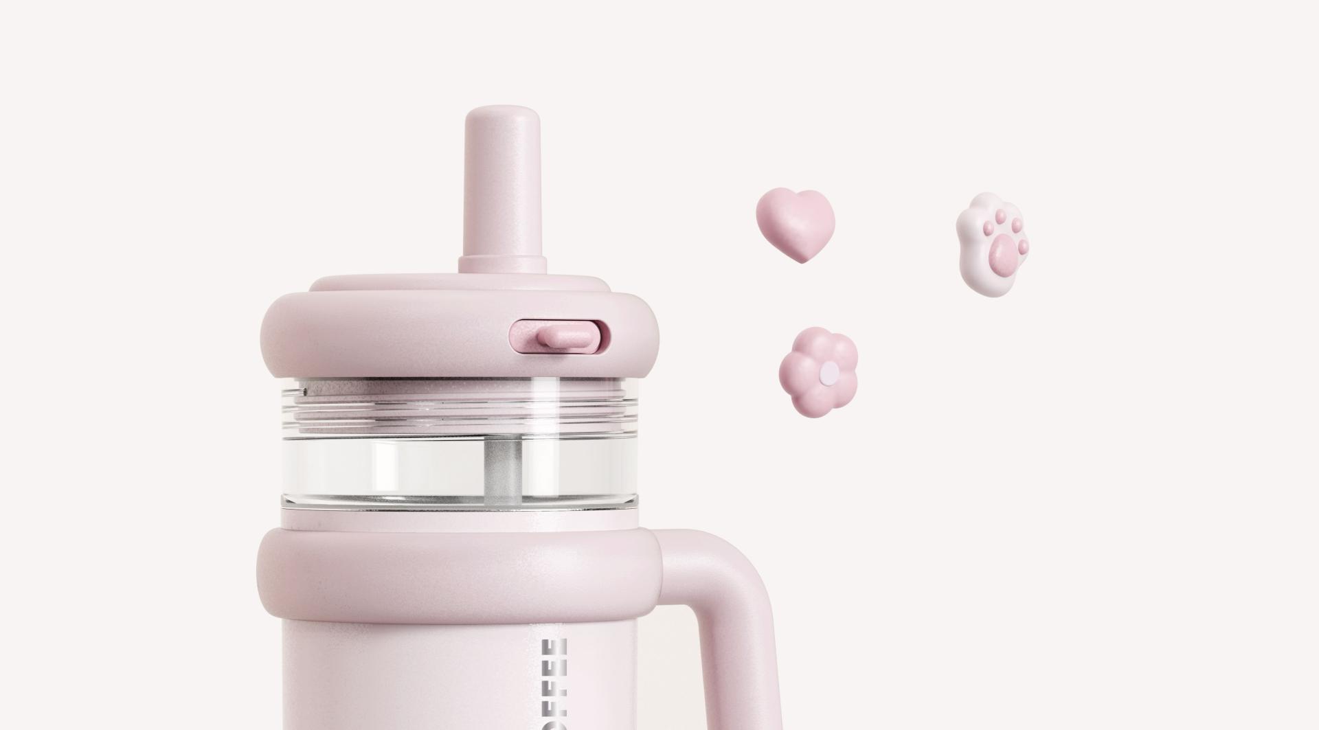 Aesthetically, the bottle’s silhouette is smoothly contoured, with sleek lines leading to a gently tapered base. This not only creates a minimalist and refreshing look but also ensures a comfortable grip. It comes in a range of color options, meeting individual aesthetic preferences. Moreover, the replaceable top decorative piece allows for personalization. Users can easily swap this component to match their preferences or moods. This feature not only boosts user engagement and fosters a sense of ownership but also keeps the product feeling fresh, extending its appeal and lifespan by preventing aesthetic fatigue. To enhance daily convenience, the bottle features an independent filling spout that opens with a simple press, along with a detachable mesh tea filter on the straw for filtering tea leaves or other particles, catering to various drinking preferences. When not in use, the straw cap can conveniently attach to the end of the handle for easy storage, preventing loss or contamination from improper placement.