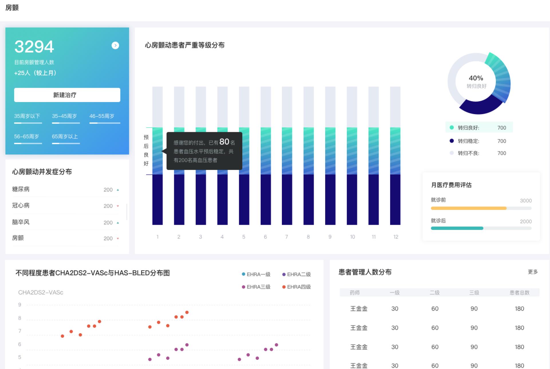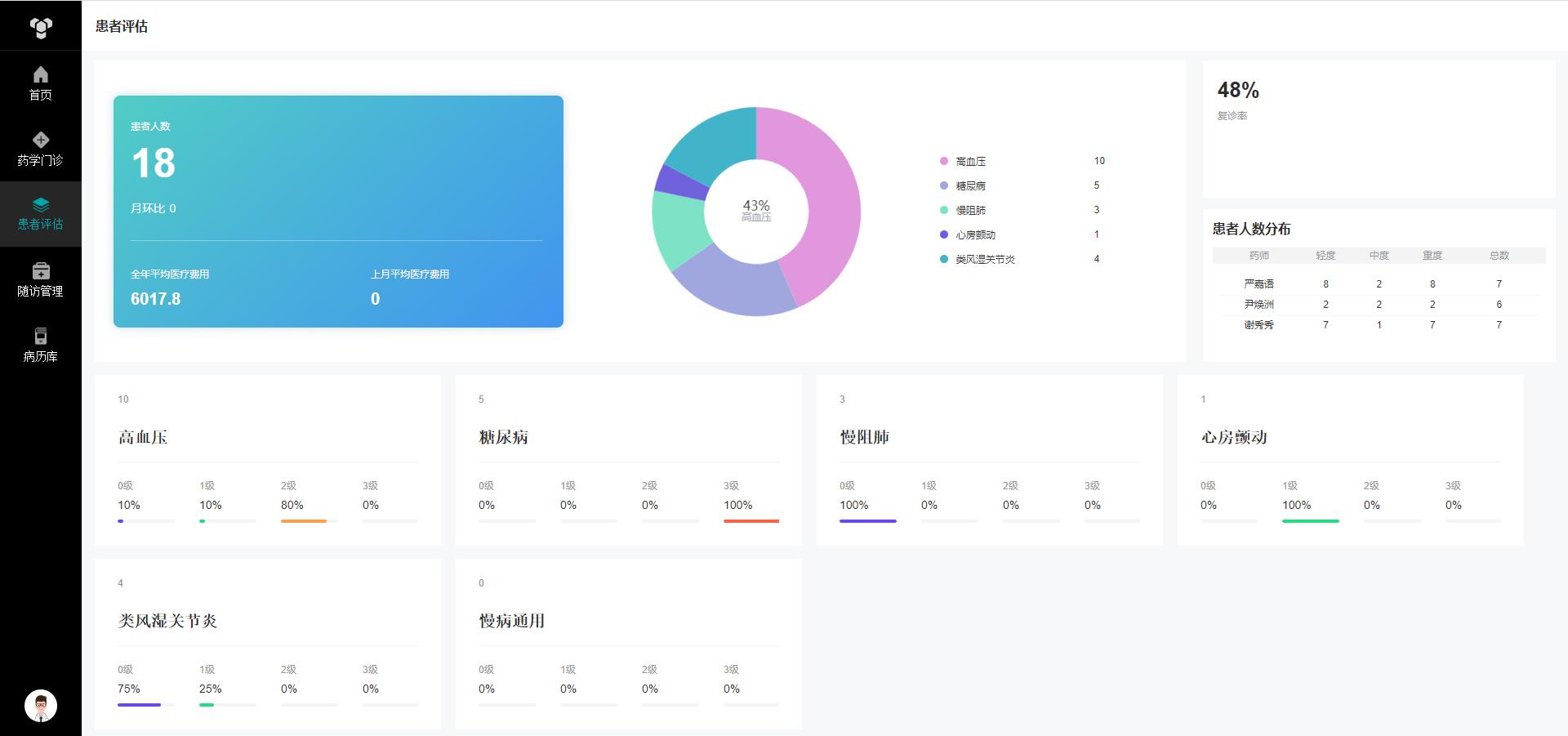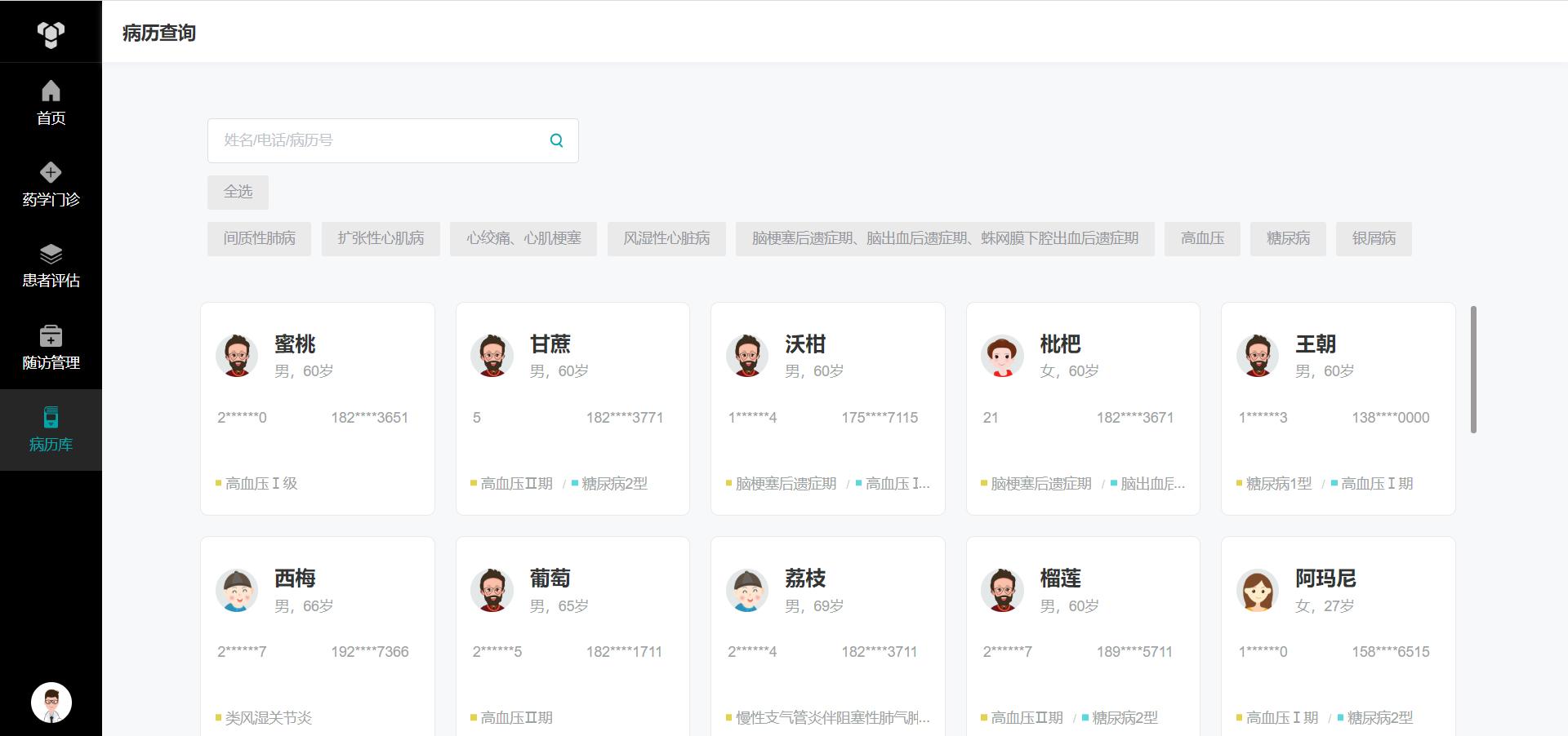 The patient assessment module covers six major diseases, including hypertension, diabetes, and chronic obstructive pulmonary disease (COPD). It offers scientific scale assessment and visual analysis, while also recommending treatment plans and exporting them as PDFs. The follow-up management module assists doctors in continuously monitoring patients’ conditions, supporting remote follow-up, reminder functionality, and trend analysis to achieve better continuity and precision in treatment.