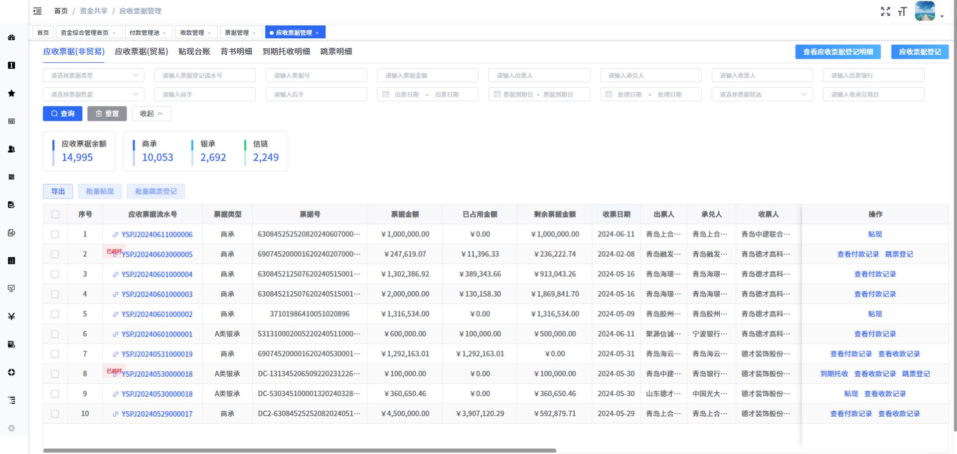In terms of payment management, the system allows enterprises to flexibly split payment methods and control the payment schedule; meanwhile, financing management can be seamlessly connected to achieve efficient fund circulation. For receipt settlement management, the system with features like direct bank-enterprise connection and bill registration consolidates all receipt data of the enterprise and supports project payment recognition, ensuring precise alignment of financial data. Bill management encompasses the entire lifecycle of bills, including registration, endorsement, discounting, and dishonor, improving the security and transparency of bill transactions. Financing management offers functions such as credit management, financing utilization, post-loan management, and repayment reminder, optimizing fund risk control. Bank account management enables unified management of all corporate accounts, automatically retrieves transaction records, and supports data import from up to 19 banks, facilitating efficient account reconciliation and fund supervision.