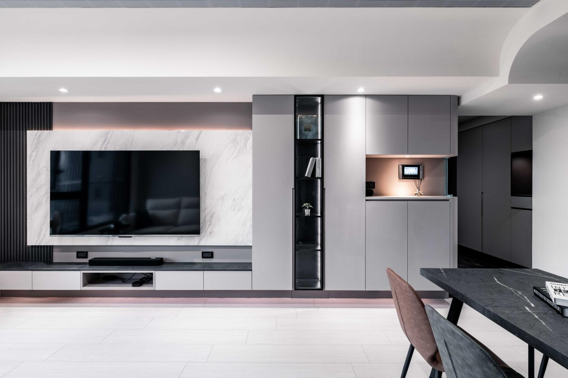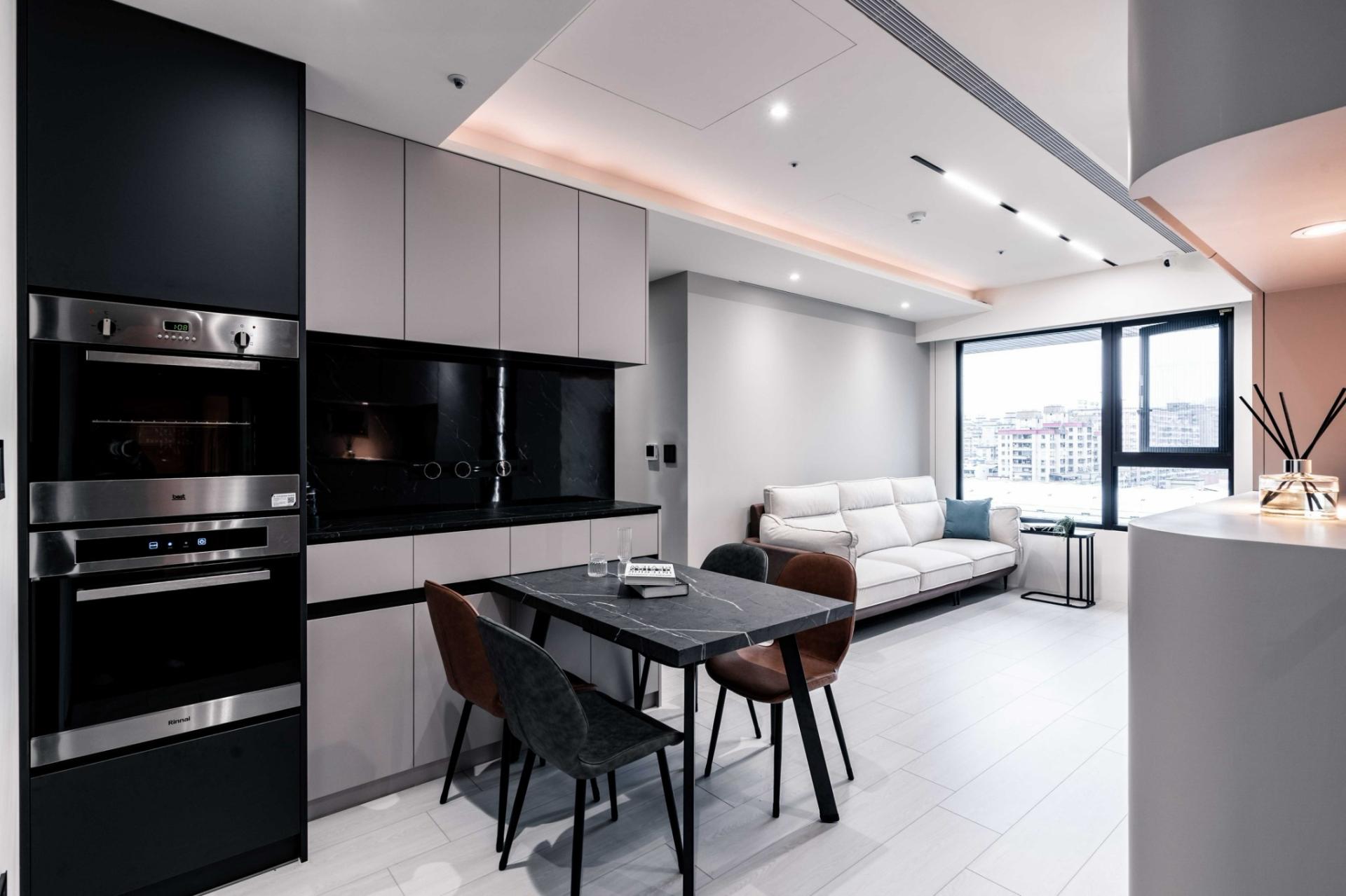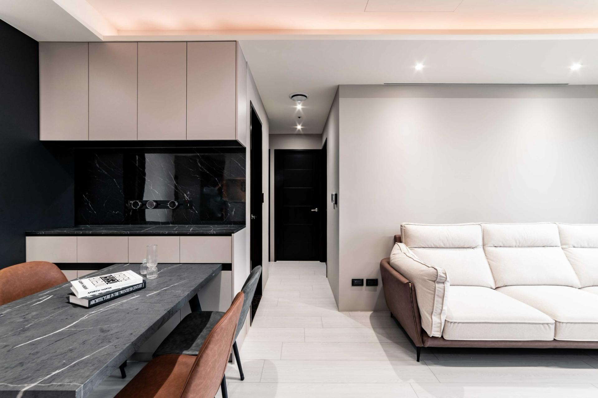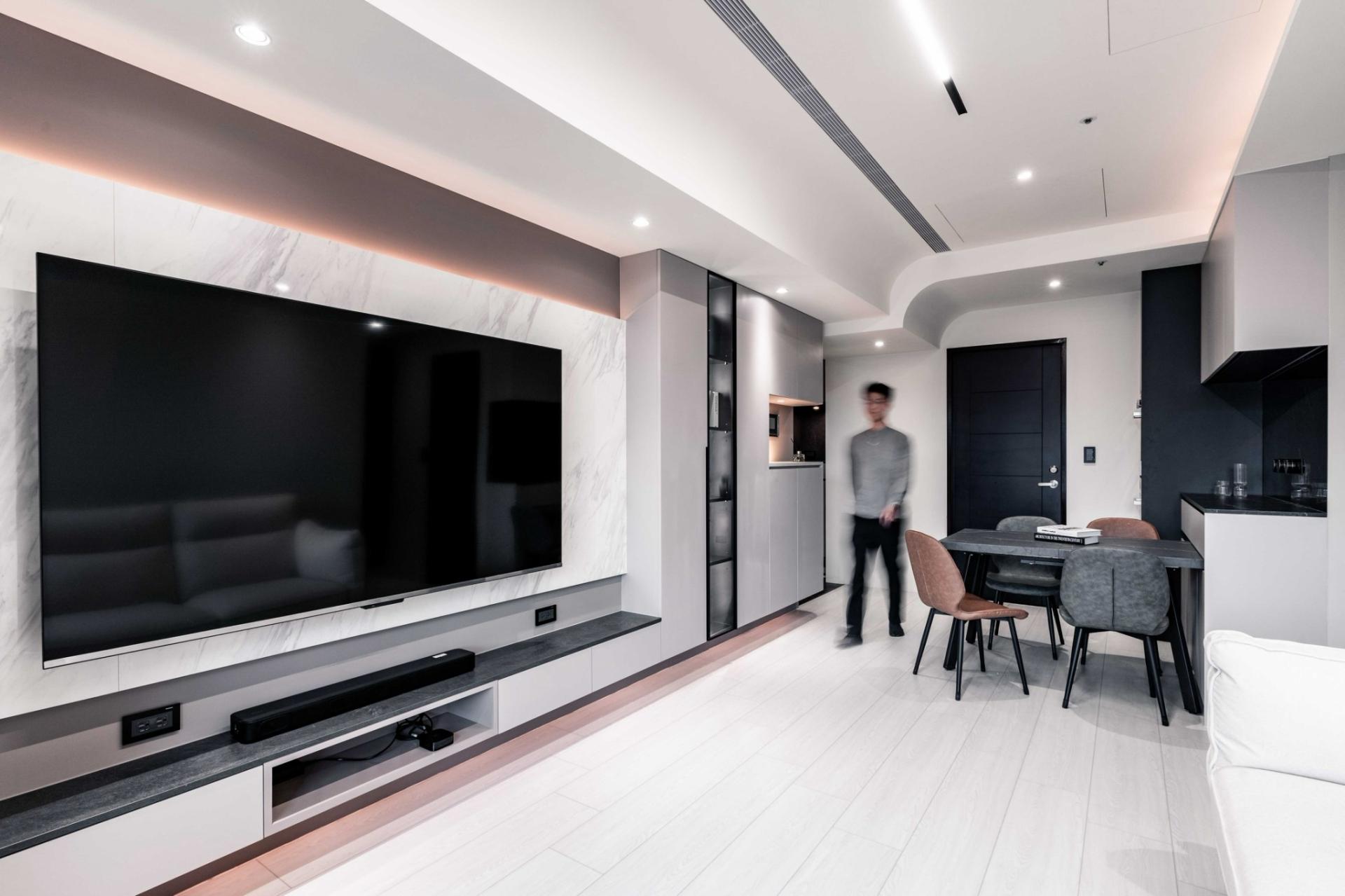 From the entrance to the TV wall, the original beams and fire pipelines have been skillfully concealed through thoughtful design.