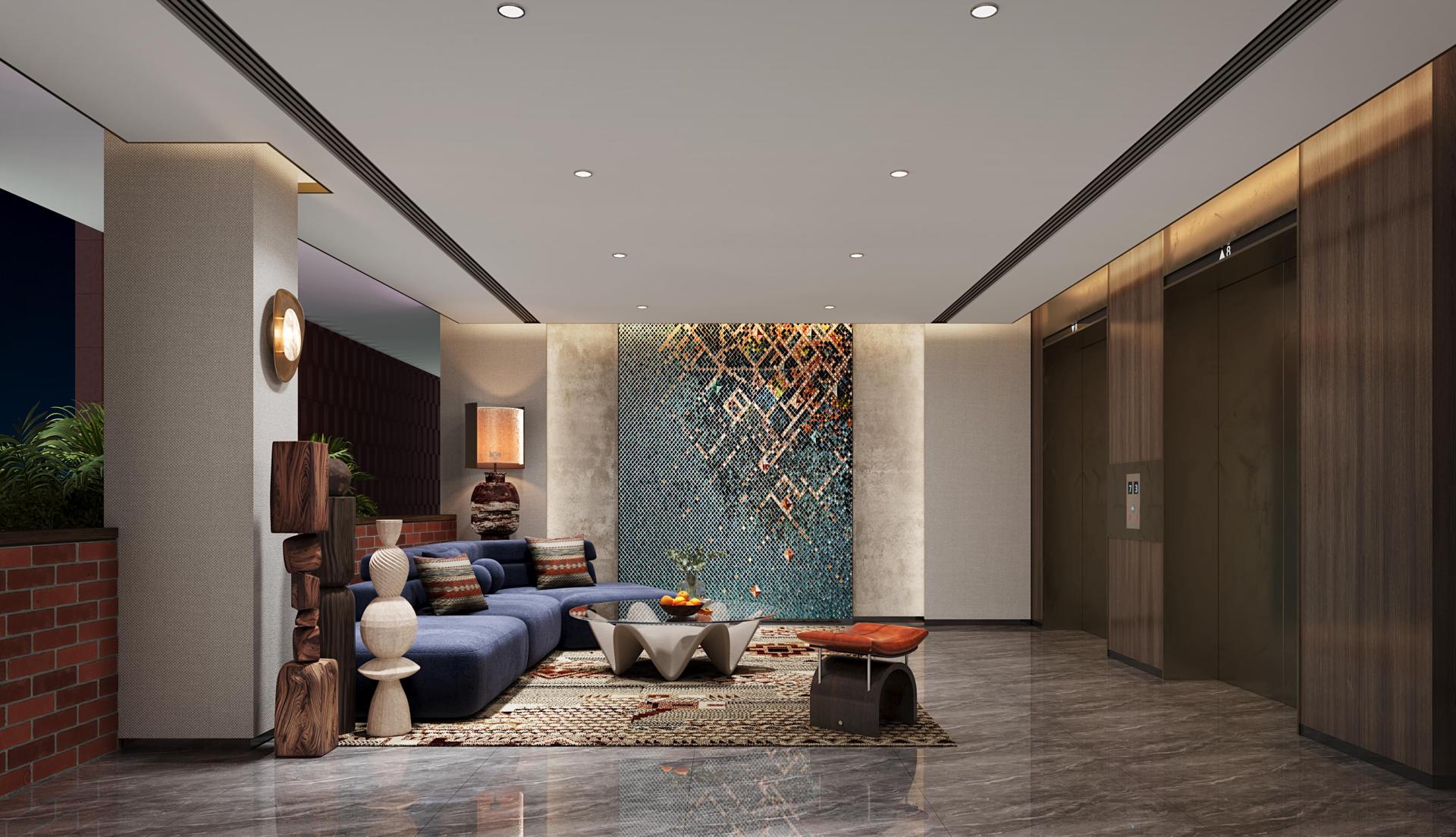 Rooted in Uganda's indigenous culture and integrated with modern minimalist design techniques, this project distills Kampala's regional symbols. For instance, it draws inspiration from the traditional Ugandan bricklaying craft, transforming it into a modern decorative language. This is evident in the regular tiling of the lobby elevator hall background wall and the staggered brick patterns on the restaurant walls, which both echo the local history and add depth to the space.