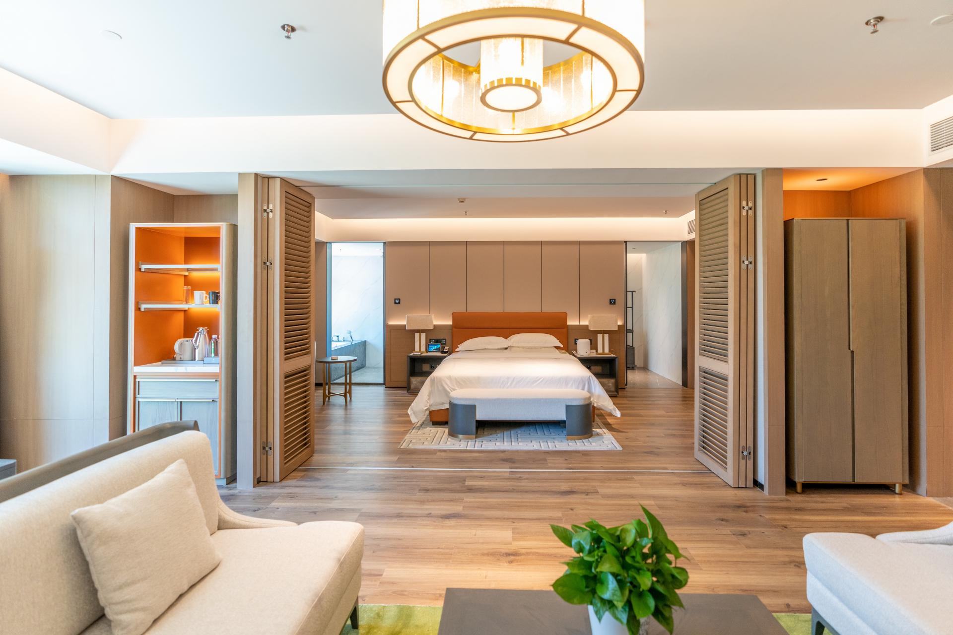 Kokdala, this poetic name means "green wilderness", which vividly depicts the natural scenery and ecological characteristics of this land. Nature, with its unique charm, has nurtured countless lives and miracles here, and has also inspired countless literati and poets. Among them, the famous song "Night on the Prairie" was born here. It uses affectionate melody and lyrics to express the love and yearning of the soldiers for this land, and it has been sung to this day. Soft furnishings create a unique spatial quality and artistic sense through the integration of nature, culture and emotion. The earth-toned space has the magical power to slow down time, which caters to the living style and lifestyle of modern people. The guest room is like a habitat between solitude and participation, soothing the heart while nourishing the body. Under the reflection of the light, the rustic texture of the wall and logs is more delicate, as if solidifying the years, and you can touch the green wilderness by reaching out and touching it. The unique chandeliers, soft sofas and solid black wooden tables in the restaurant create a small poetic space, which fully extends the diversity of the space. The carefully selected artworks and decorations in the public space integrate the spatial conception of the south of the Yangtze River, which not only improves the quality of the hotel but also makes the hotel a place full of cultural and artistic atmosphere.