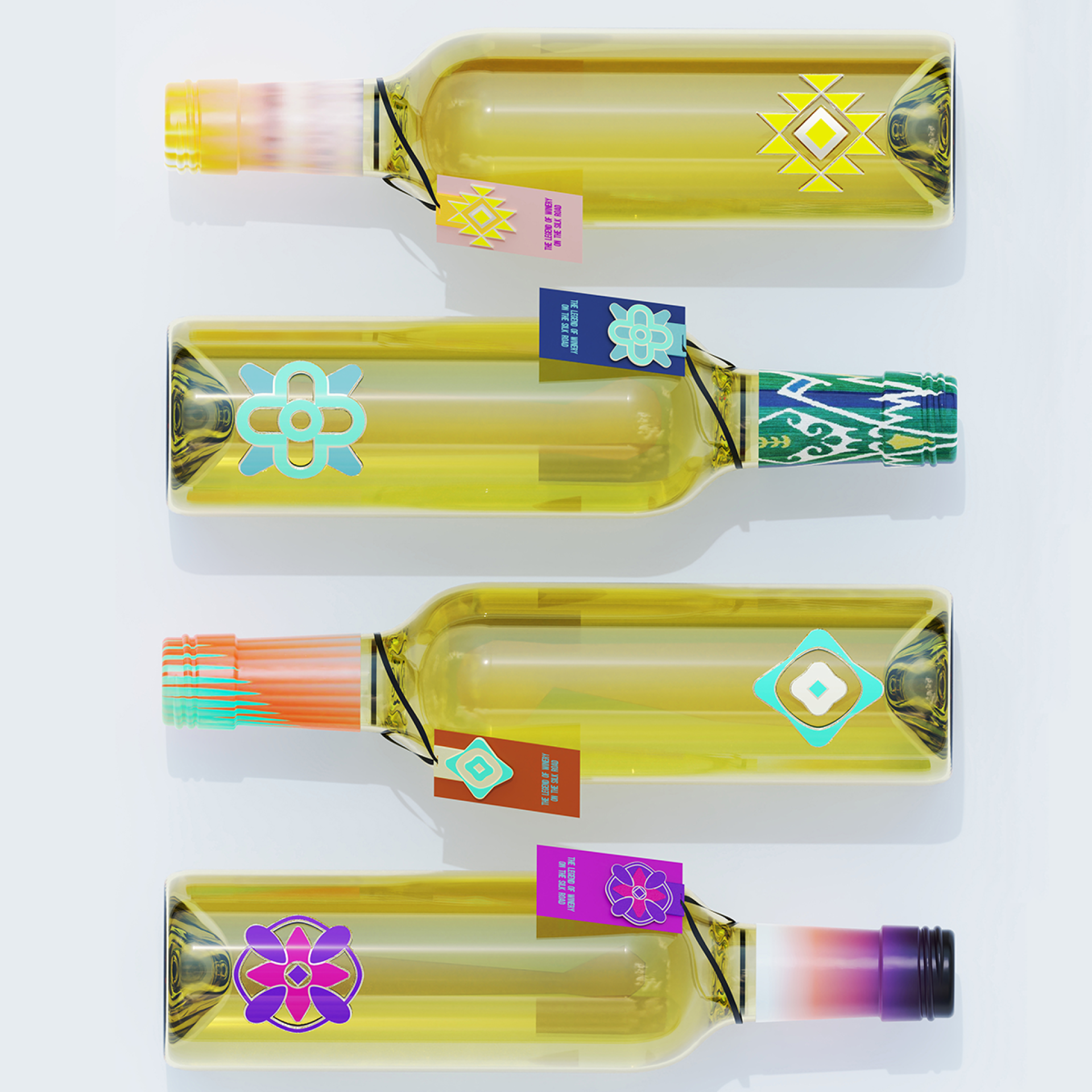 Loulan is a wine packaging design from Xinjiang, China, aimed at challenging the prevailing trend of overly westernized and sophisticated domestic wines. Inspired by the Loulan culture of Xinjiang, the design employs a minimalist and ethnic visual language that incorporates representative colors and symbols from traditional clothing and architecture. It features a clear and logical layout of information hierarchy to enhance product recognition while achieving cost reduction and environmental sustainability through the use of biodegradable labels and recyclable bottle materials. This innovative design not only showcases an exotic Chinese aesthetic but also conveys a strong sense of national pride, reflecting a deep respect for traditional culture and a seamless integration of modern technology.