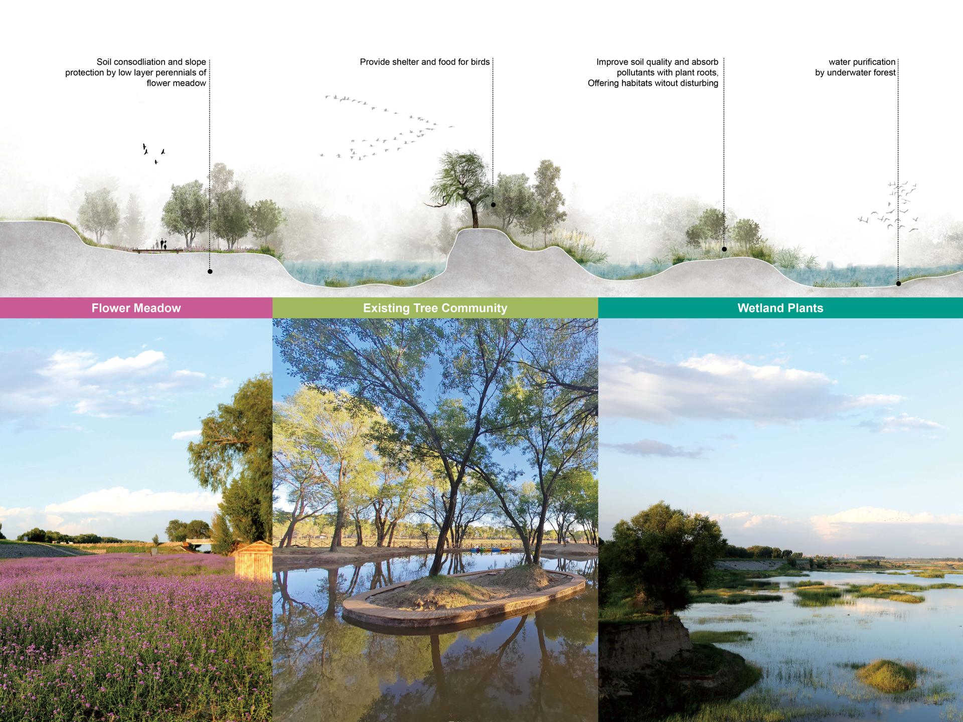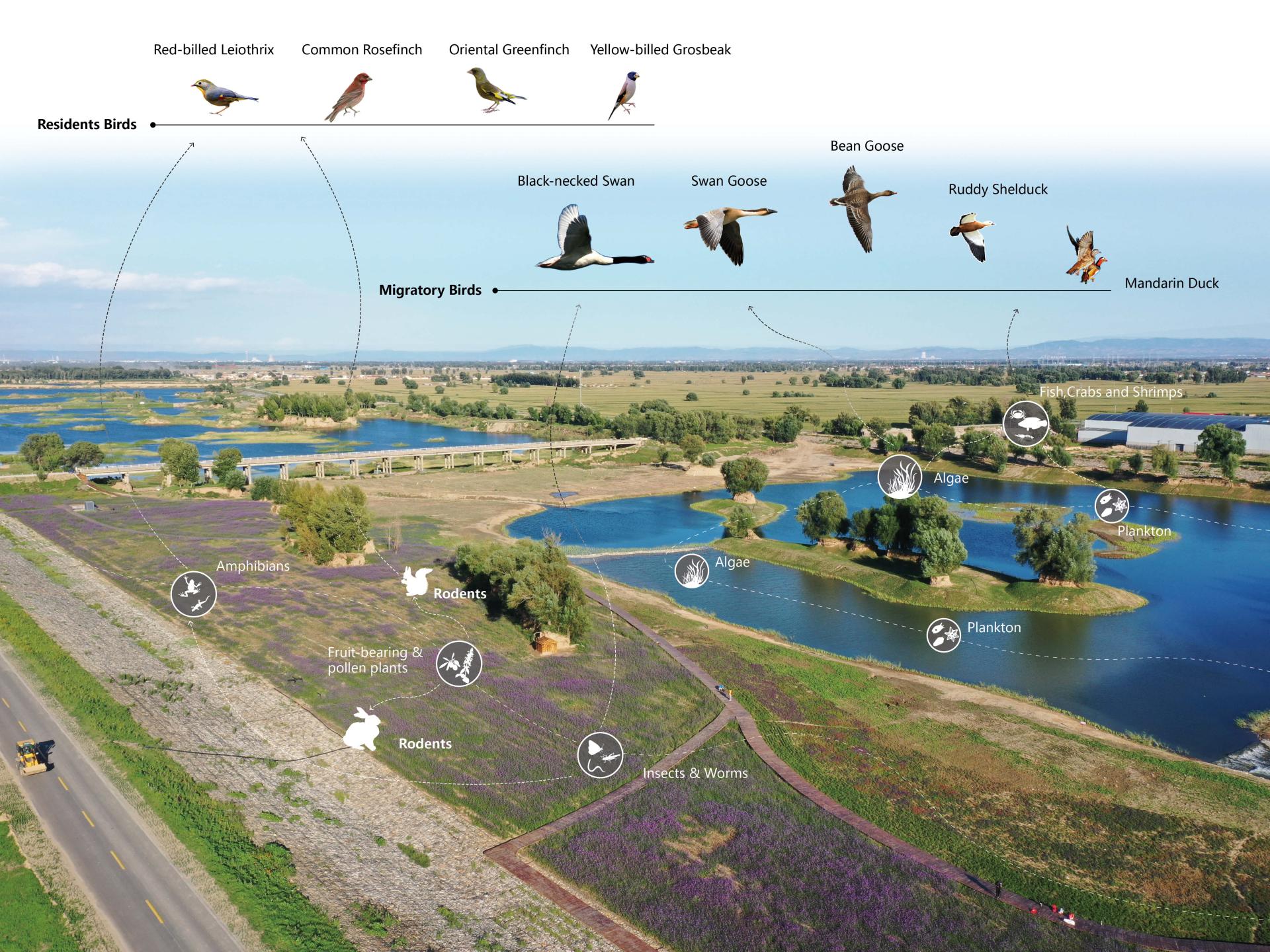 With the improvement of natural habitat as the core and preserving the current topography and vegetation to the maximum extent, a series of measures such as river dredging, water body restoration, vegetation restoration and insect hotel are implemented to achieve biodiversity enhancement and enrichment of waterfront vegetation community.