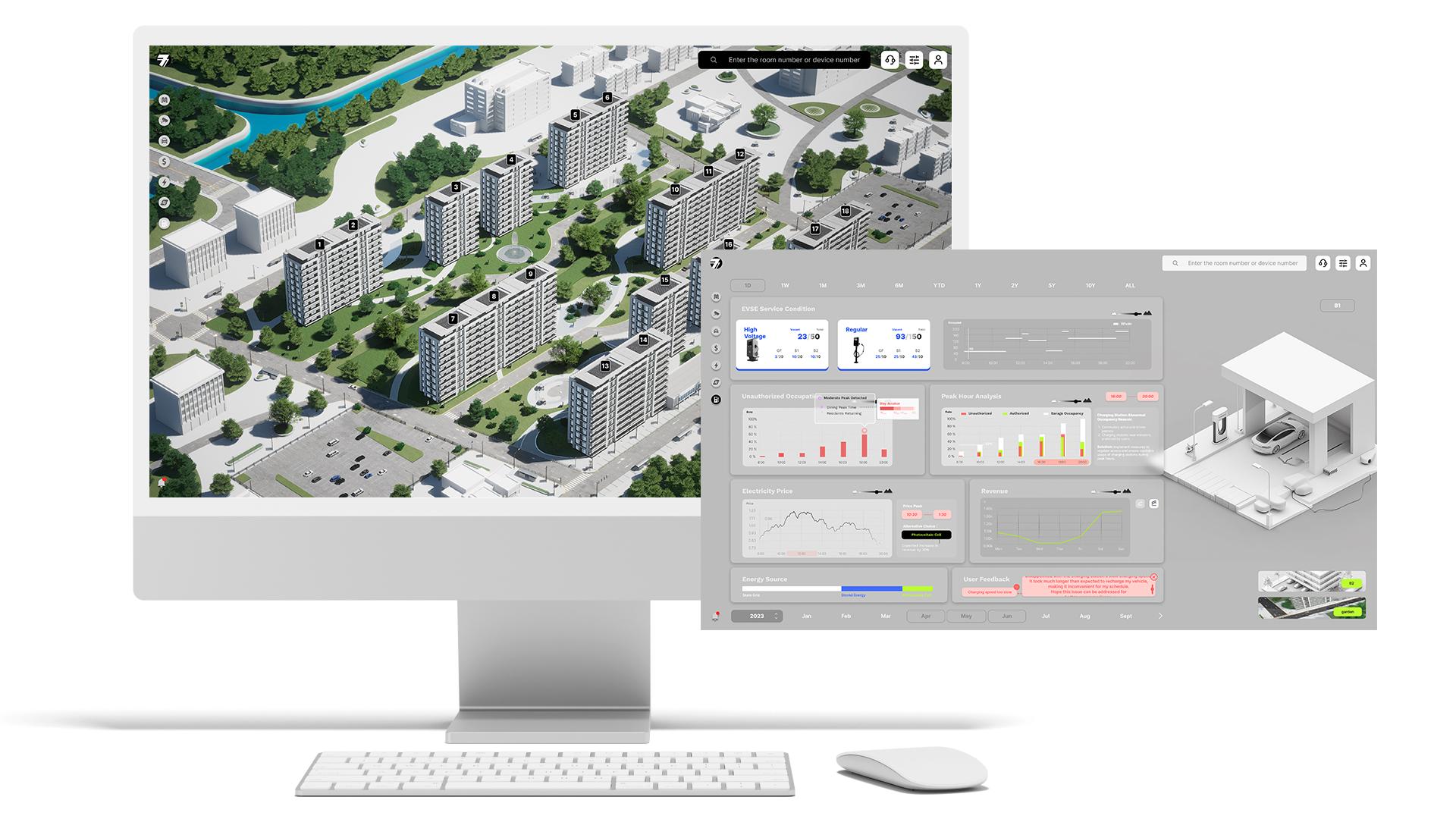 The system boasts a unique hybrid interface that combines a highly intuitive 3D spatial model with complementary 2D panels. The 3D visualization employs aerospace-grade clarity with light and shadow physics to realistically highlight structures and potential threats using mission-specific color coding (blue for security alerts, orange for energy issues, set against a dark hierarchical backdrop). In parallel, the 2D panels provide dynamic thermal-coded status updates of energy consumption and device health, allowing users to tap or swipe through detailed floor plans and seamlessly switch between views using both mouse and touch controls.