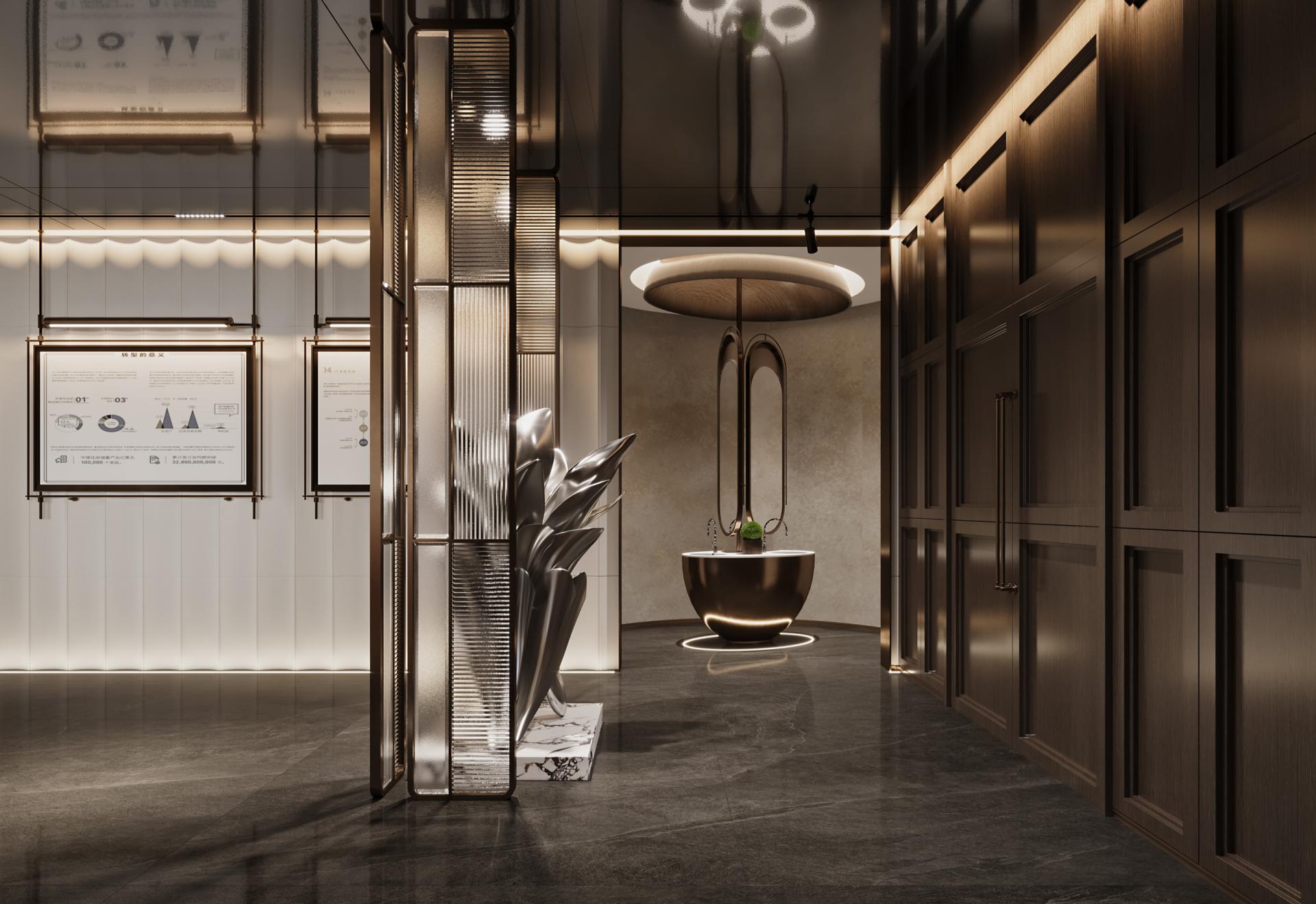 This sales center is designed as a tranquil oasis within the city, offering a sophisticated blend of modern Eastern aesthetics and luxurious living. The design concept is rooted in the idea of "purity" and "detachment," inspired by the symbolic purity of jade and the tranquil lifestyle it represents. The space is meticulously crafted to create a harmonious environment that is both close to nature and indulgently luxurious, appealing to both the senses and the emotions of potential buyers.