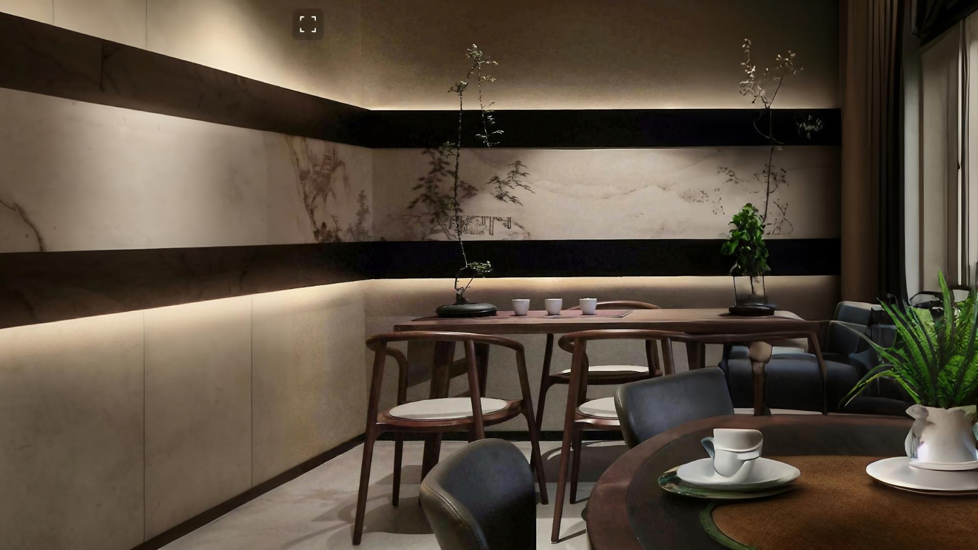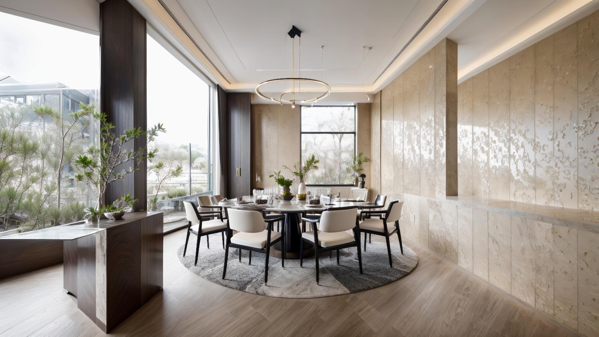 The Time Corridor features rotatable coffee cabinets with aged elm wood rings and mirrored stainless steel, juxtaposing organic textures with industrial precision. Gradient terrazzo flooring symbolizes the evolution from chaos to clarity, while a hidden lighting system adjusts color temperature with the circadian rhythm, making the space a living vessel of time.
