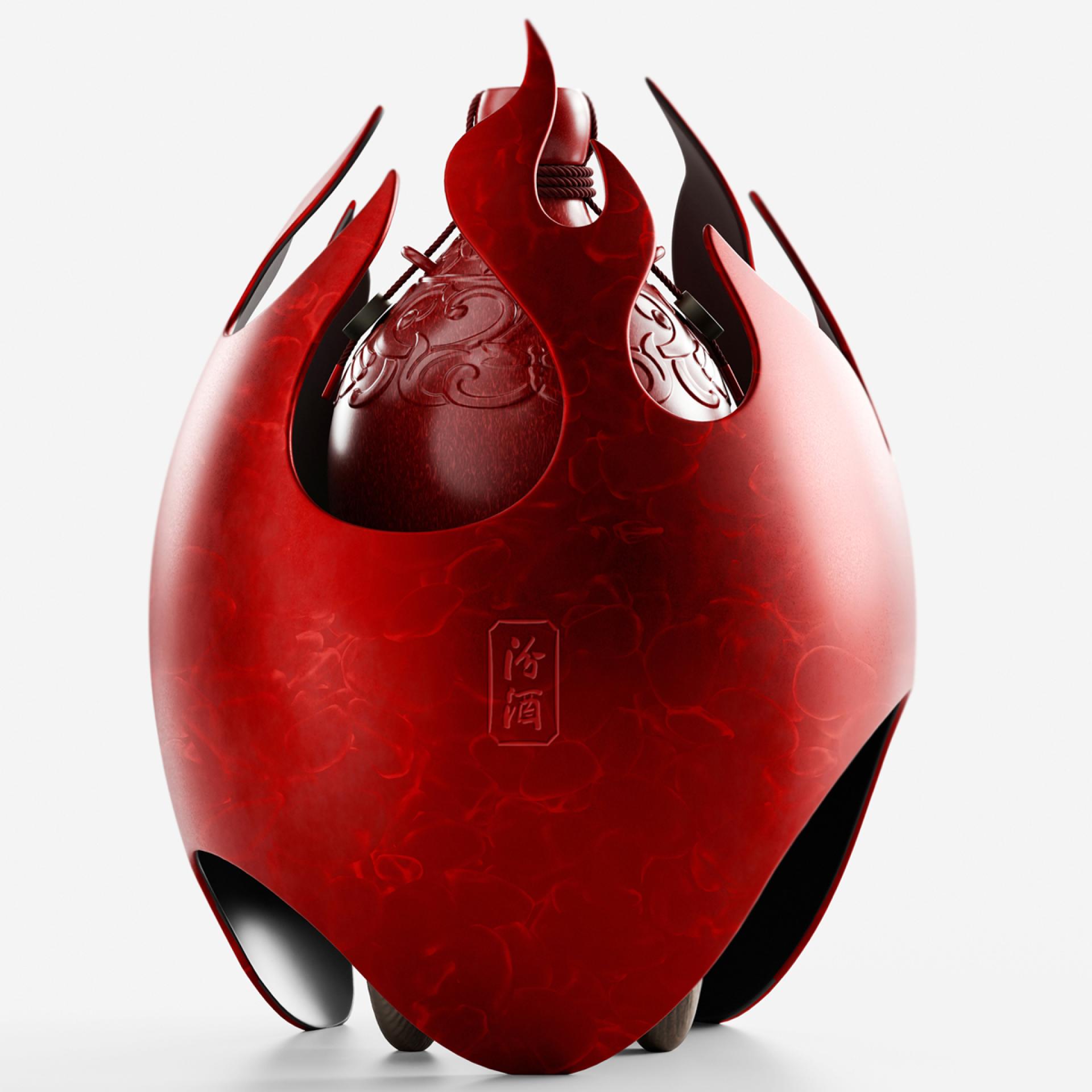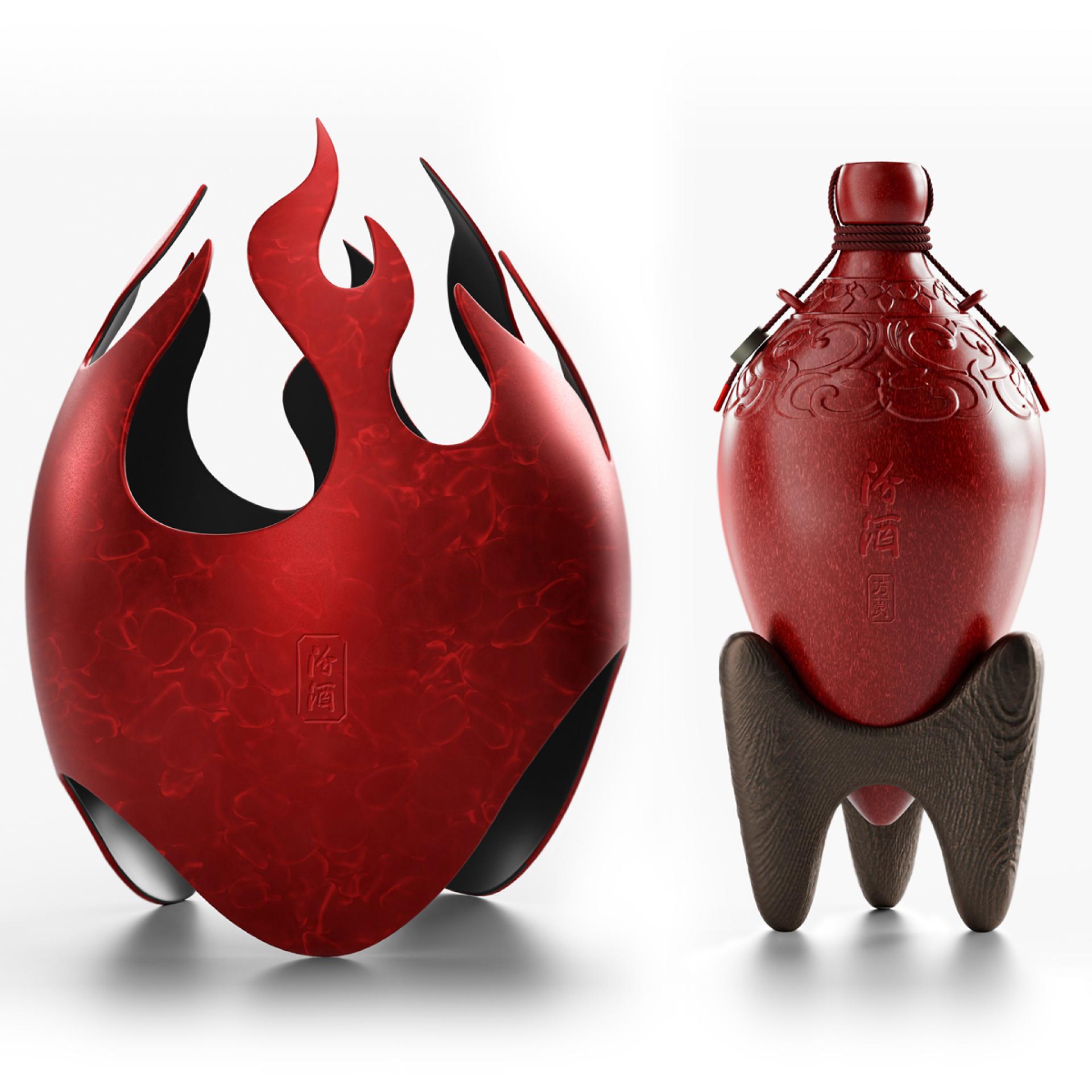 This Chinese baijiu packaging design is inspired by the ancient "small-mouthed, pointed-bottomed urns" dating back over 6,000 years to the Yangshao period, which were among the first containers used in the brewing of Chinese baijiu. This design reflects the deep historical and cultural roots of Chinese baijiu. It blends traditional culture with a modern twist by incorporating the element of "fire" from the five elements, symbolizing new strength and hope, inspiring a relentless drive for perfection and aspirations.