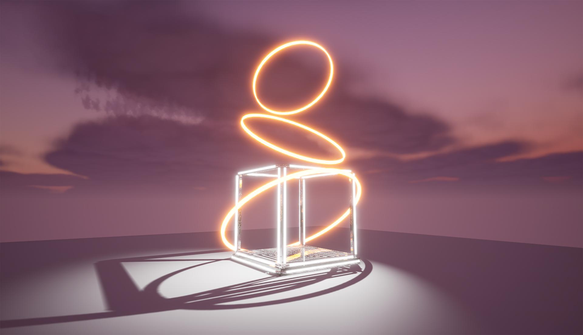 Magic Cube's main structure ingeniously combines a metal frame with a circular design, exuding a sleek and modern aesthetic. The smooth, circular halo atop represents completeness and infinity, while the square geometric lines at the bottom symbolize stability and solidity. Simple yet robust internal metal lines further enhance depth and layers. The circular halo atop interacts dynamically with both the internal linear elements and the square base. This not only generates a futuristic yet mysterious atmosphere, but also embodies the philosophical concepts of "Round Sky & Earth Square" and "Unity Between Humans and Nature," striking a balance between modern design and traditional culture.