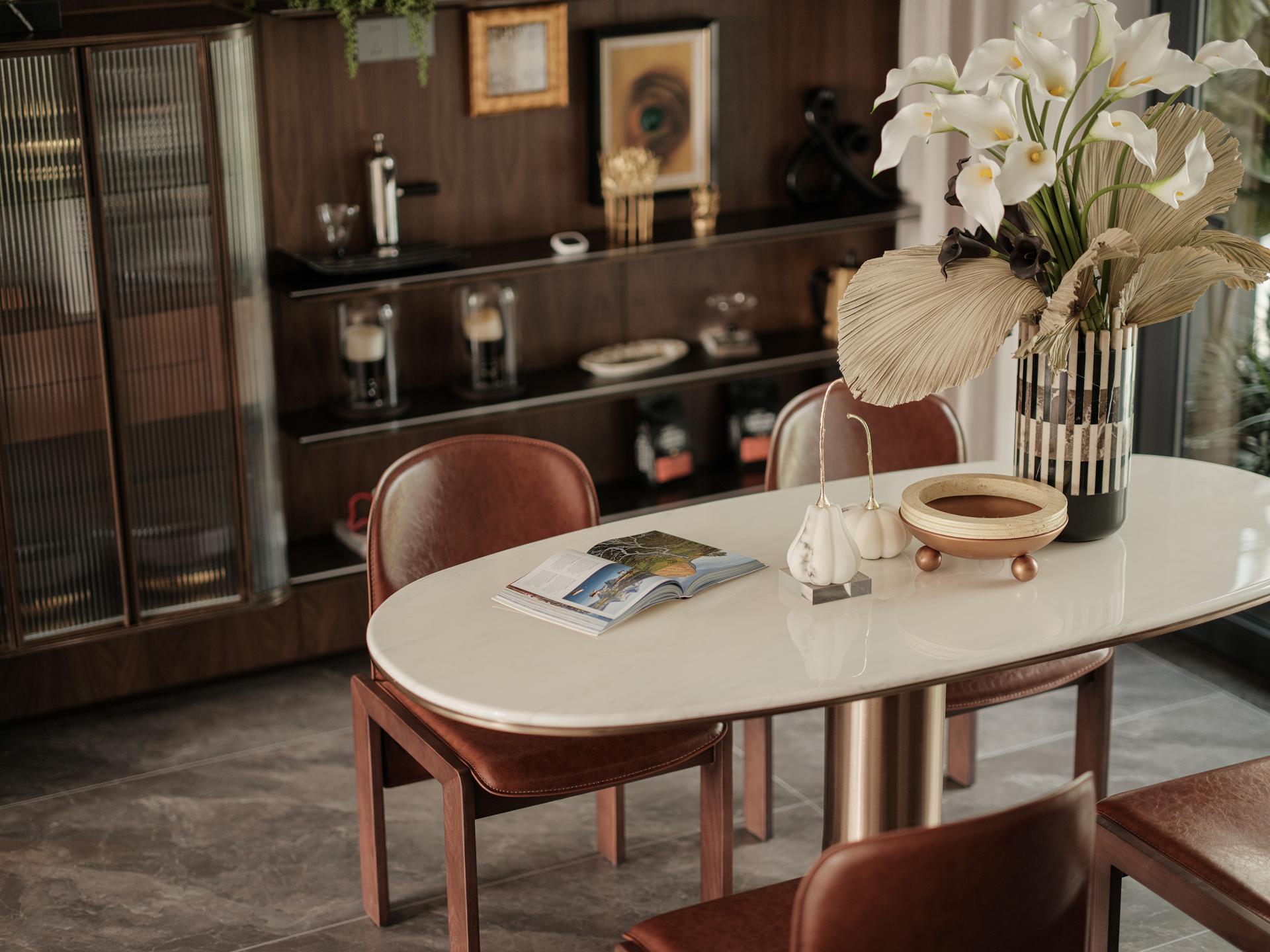 In this space where classical and modern elements converge, balancing trends with timelessness, an understated yet luxurious aesthetic quietly unfolds. A home is not merely a sanctuary for the body and soul but also an exquisite expression of life’s rituals. Here, art is redefined—it becomes a measure of living and a sensory feast that immerses both mind and body. Centered on the philosophy of lifestyle aesthetics, the designer transforms the space into a spiritual “treasury of objects,” where the delicate textures of art coexist with the warmth of everyday life.