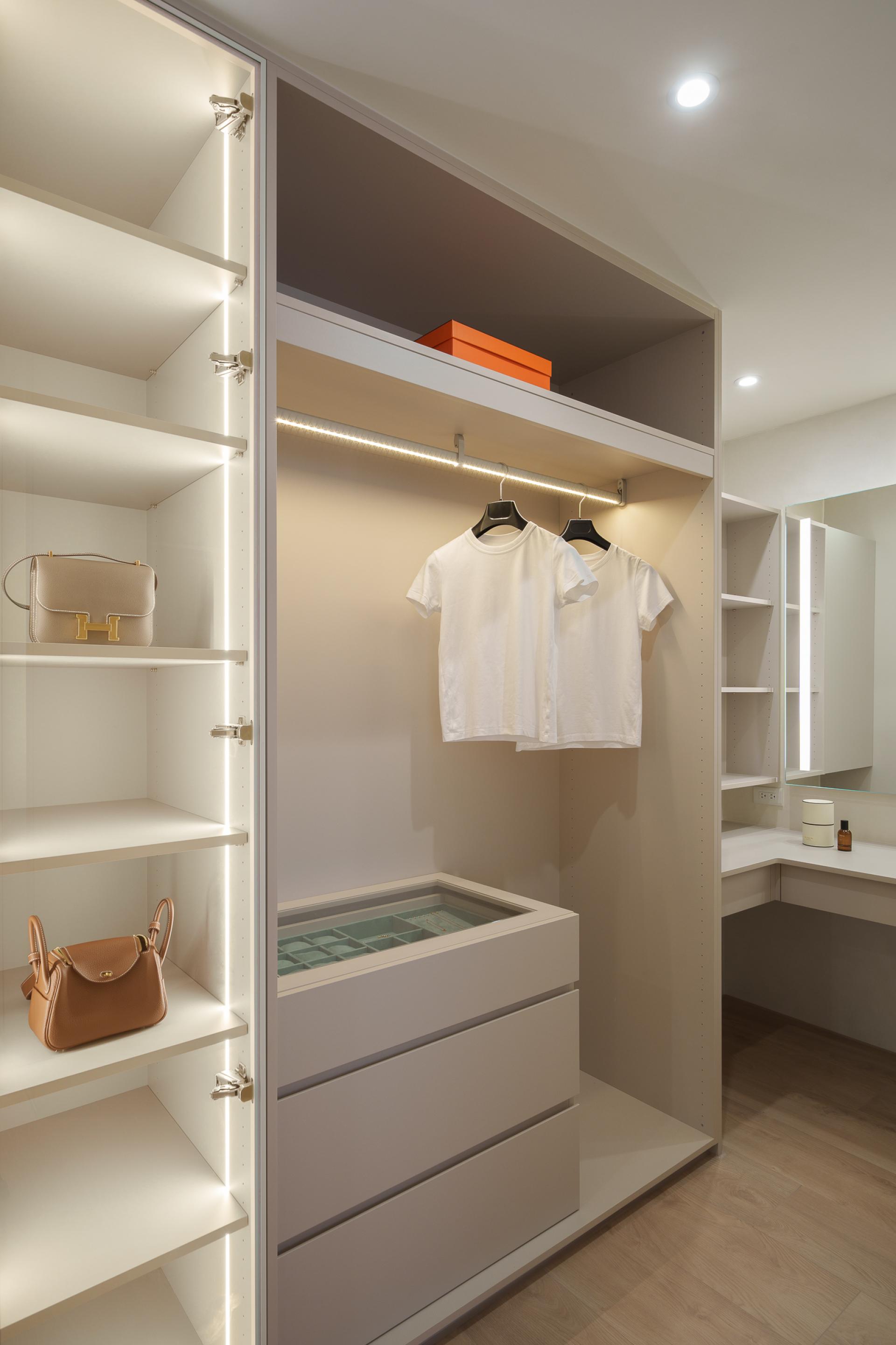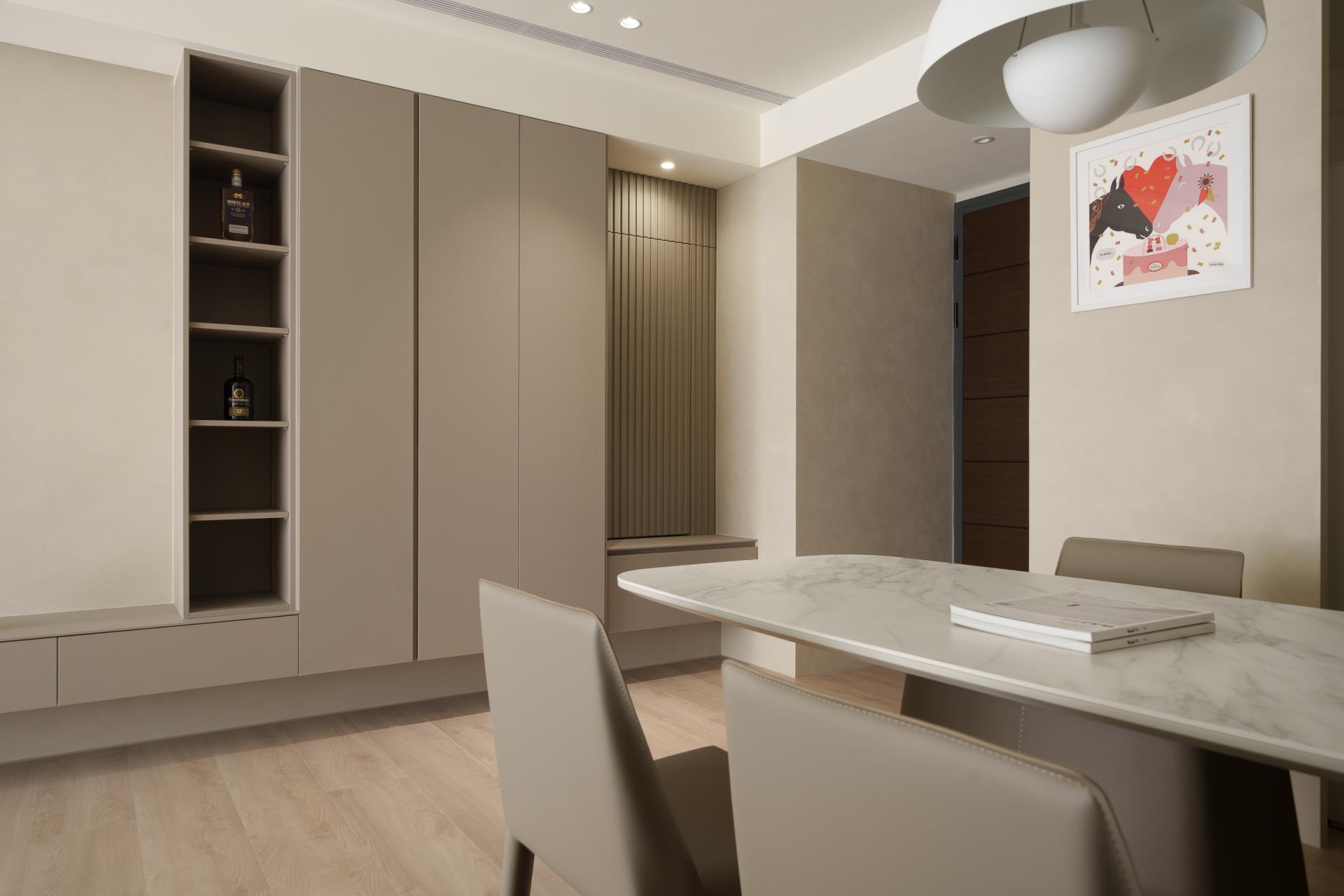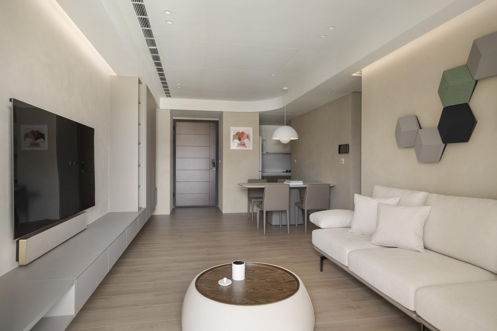 From the very beginning of the design process, the designer employed gentle off-white tones and bright natural light to paint a sweet picture of a family of four cozily nestled together. The curved corners in the living room were created to provide a safe play area for the children. Entering the dining area, extended indirect lighting softly envelops the moments of daily meals. The low-saturation color palette not only accompanies the family but also listens to all weariness, dissolving into the space as smoothly as cream. Every corner of the home blends comfort and beauty in everyday life.