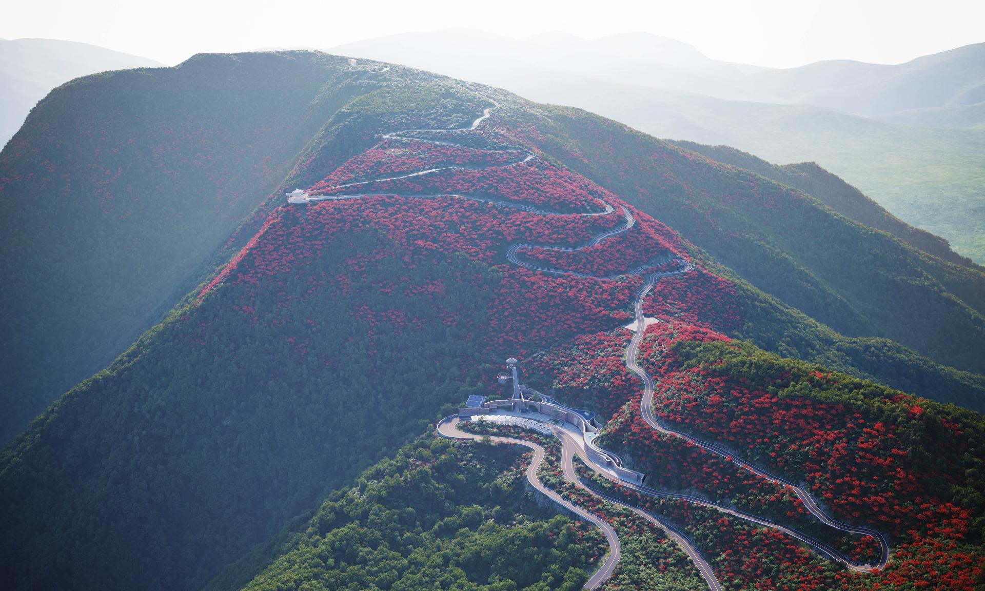 Located within the core high-altitude azalea bloomscape of Yangming Mountain in Yongzhou, Hunan Province, this dual-infrastructure remediation project addresses the ecological and spatial challenges of a steep mountainous terrain at 1,430 meters above sea level. Following initial tourism development, the site features a serpentine pathway system winding through dramatic floral valleys. The design comprises two interventions: Cloudscraper Outlook (formerly a cantilevered platform) and Lithic Flora Vault (formerly park facilities), each proposing site-specific upgrades to existing structures across distinct elevations.