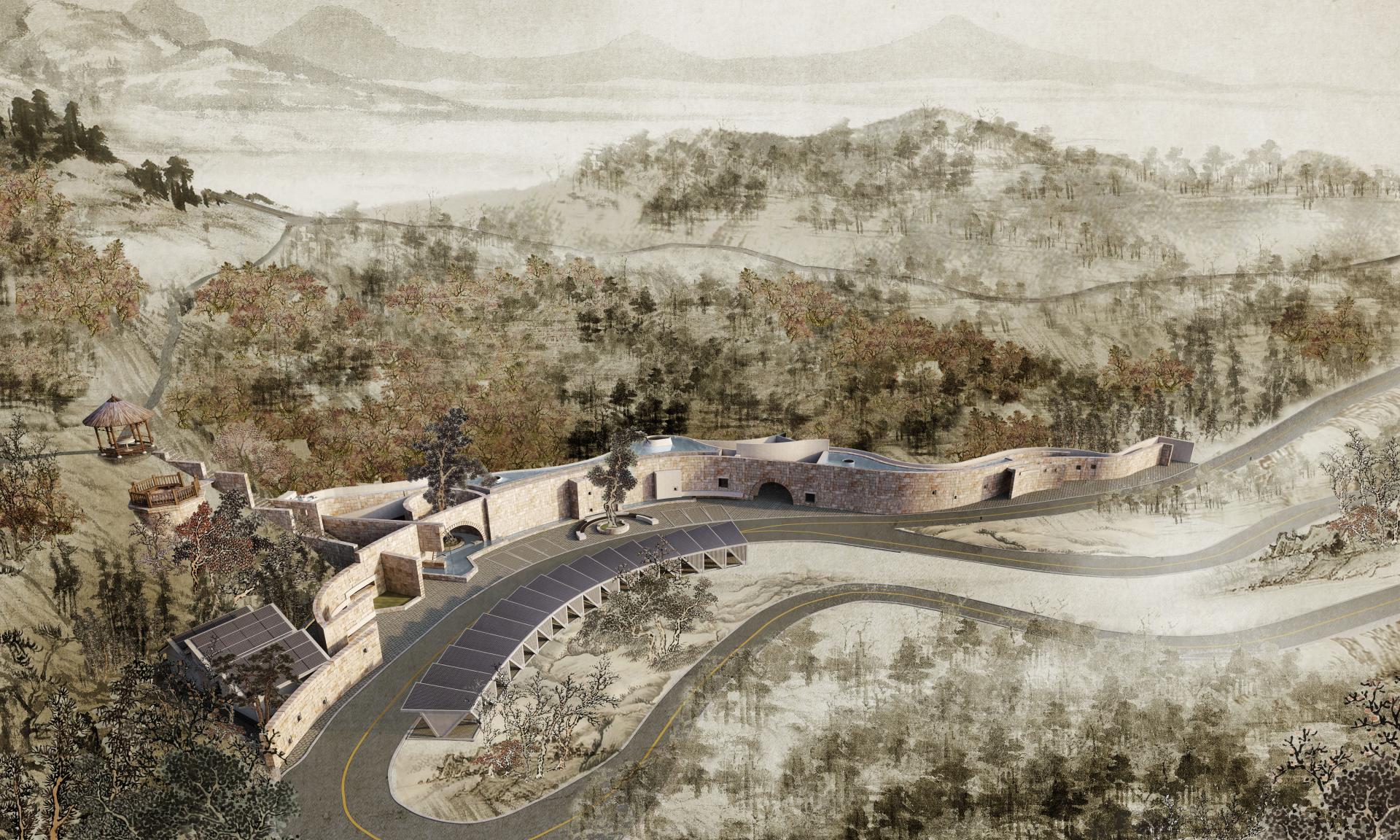Both interventions employ altitude-responsive design strategies: Lithic Flora Vault operates as a hydro-geological suture at the lower slope, while Cloudscraper Outlook crowns the summit as a phenomenological observatory. Together, they form a cohesive "topographic tapestry" - weaving hydrological cycles, endemic biodiversity, and crafted geometries into a resilient mountain narrative. The project transcends mere infrastructure upgrades, instead articulating an ethic of reparative stewardship where architectural articulation becomes an ephemeral imprint within Yangming Mountain's perennial bloom cycles.