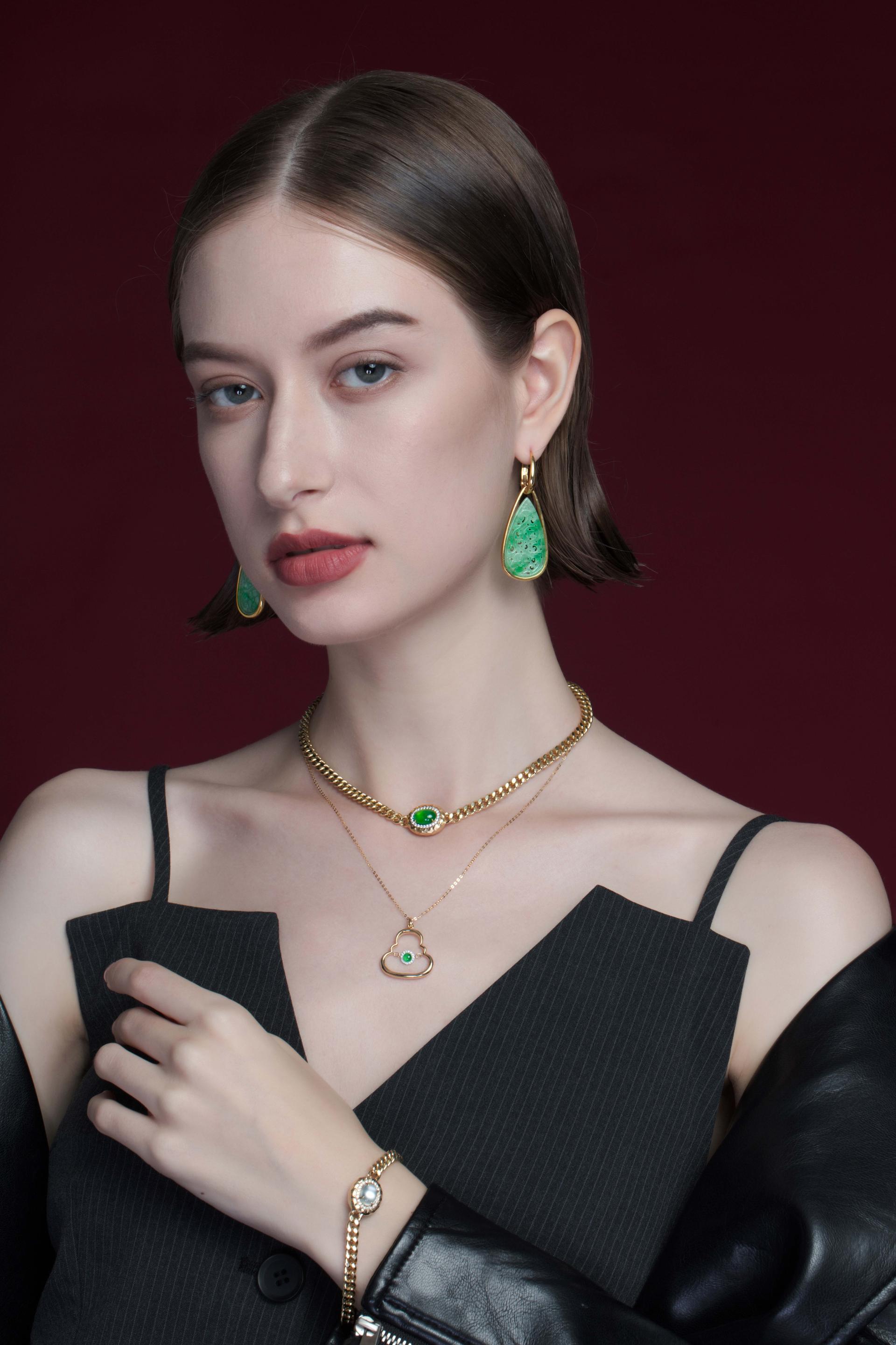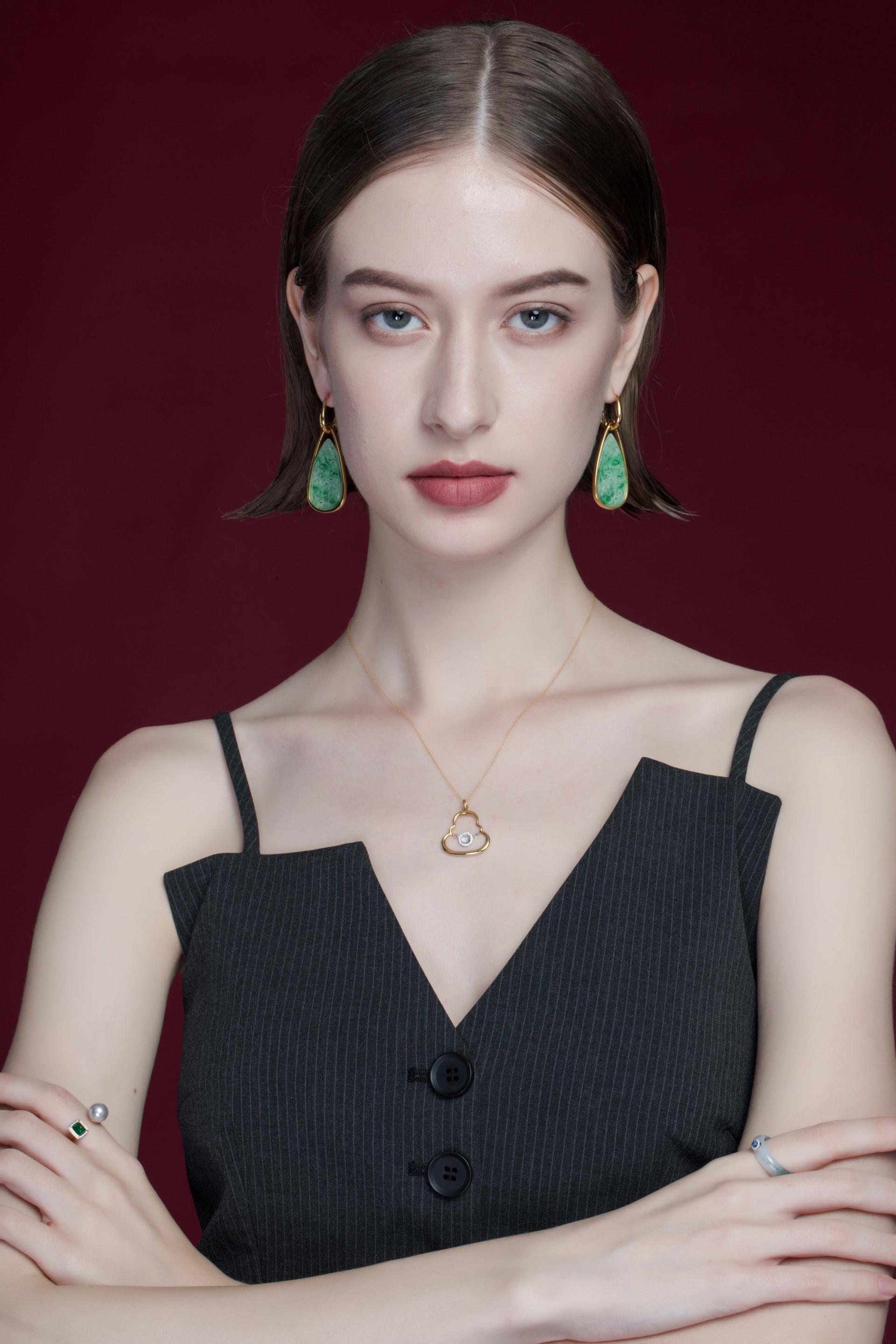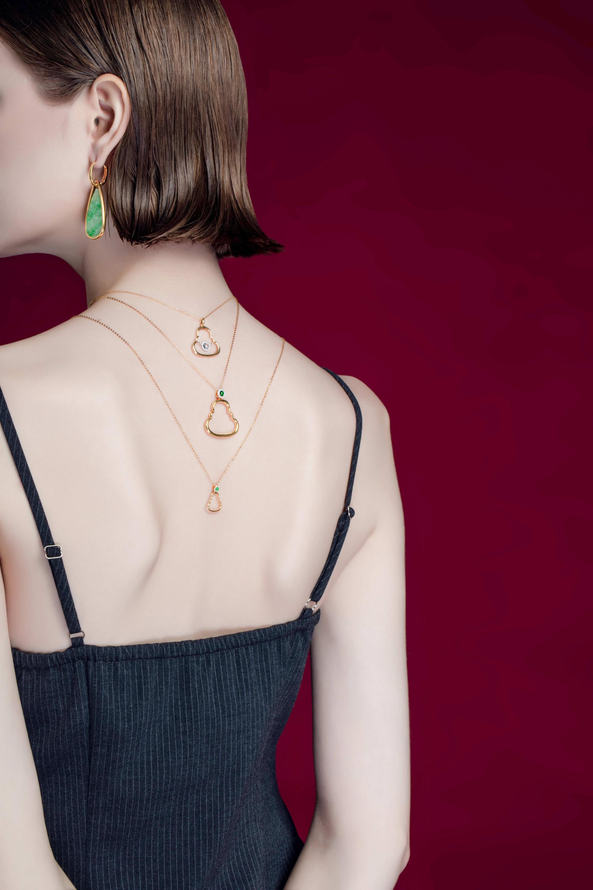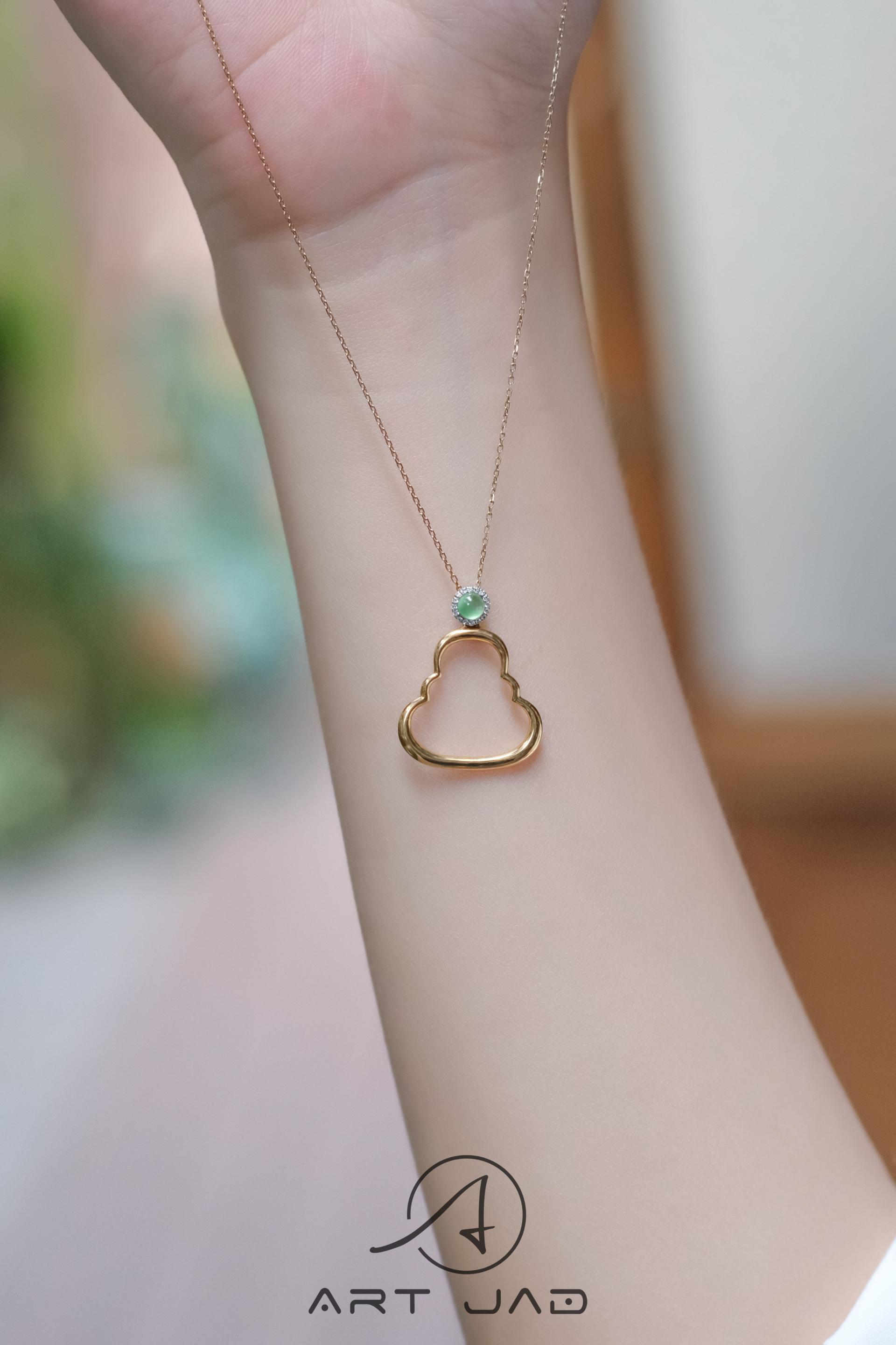 Crafted from 18K gold and set with natural diamonds, the necklace embodies fine jewelry craftsmanship. Available in three sizes, it is designed to suit a wide range of wearers, extending the meaning of protection and blessing across all ages. The piece blends modern aesthetics with traditional spiritual symbolism, preserving its sacred essence while infusing it with contemporary cultural depth. At its heart is natural jadeite, long revered in Chinese culture as a symbol of peace and good fortune, its gentle luster bringing a quiet, profound Eastern elegance to the design.