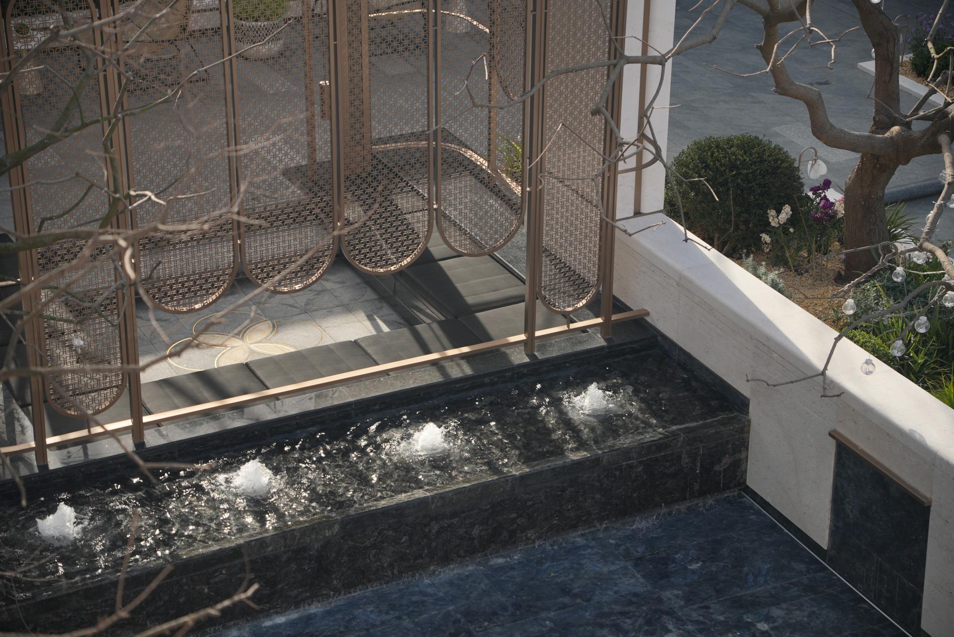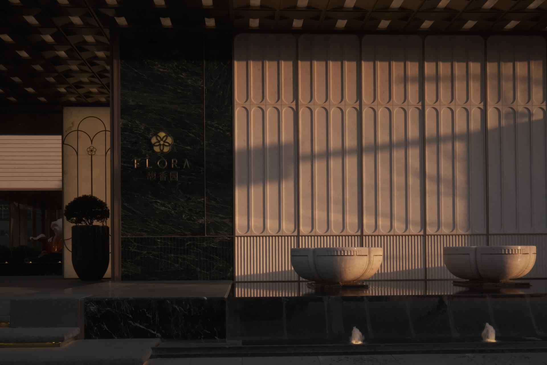 景观以香为轴的叙事,融合翰墨书香和自然沁香,形成“一芯两轴三园六院”,以中心泳池为核,延伸出春知学堂、大树聚场、童真聚场、六大芯归院等场域,带来游园入画的感官体验。