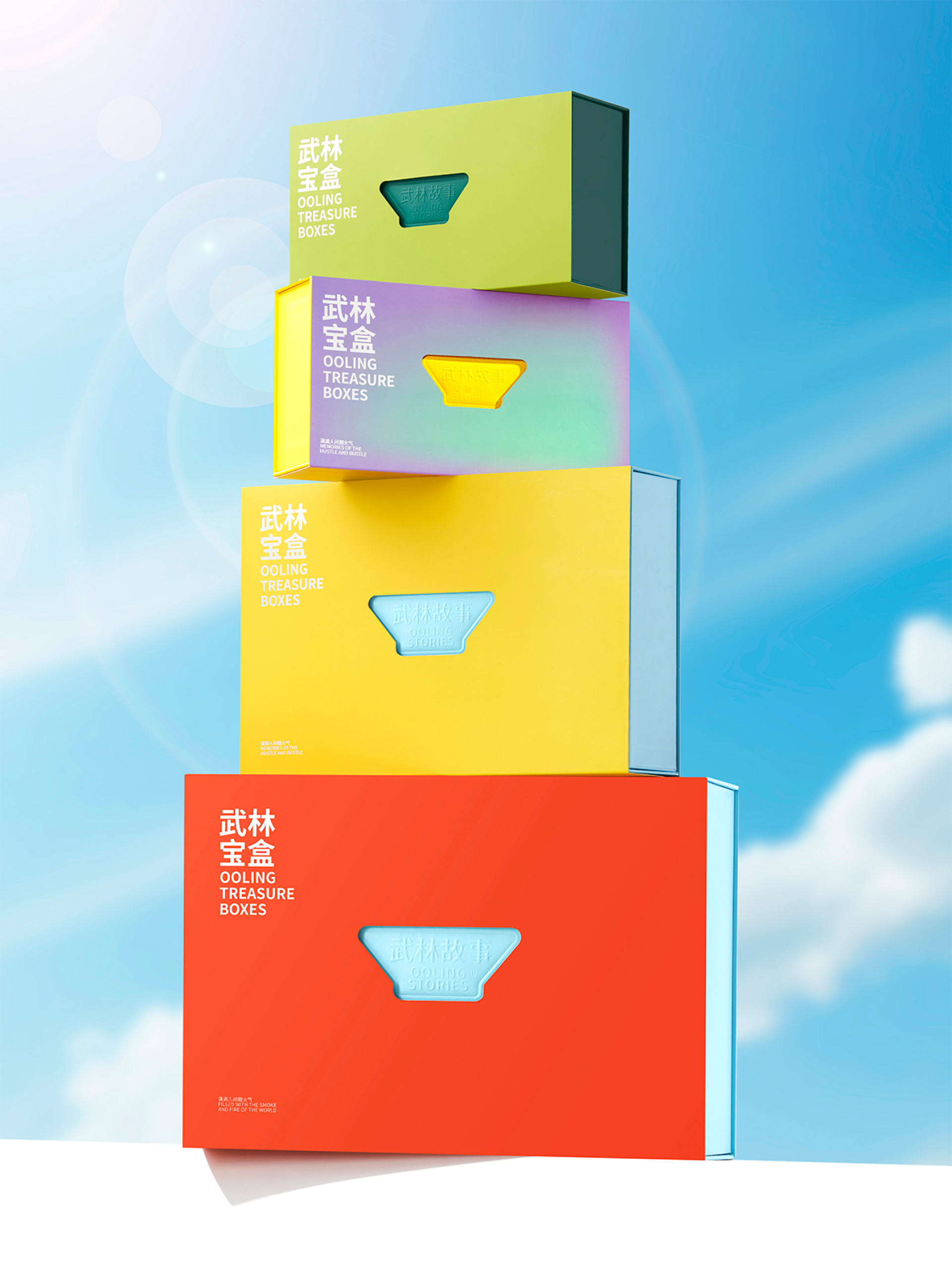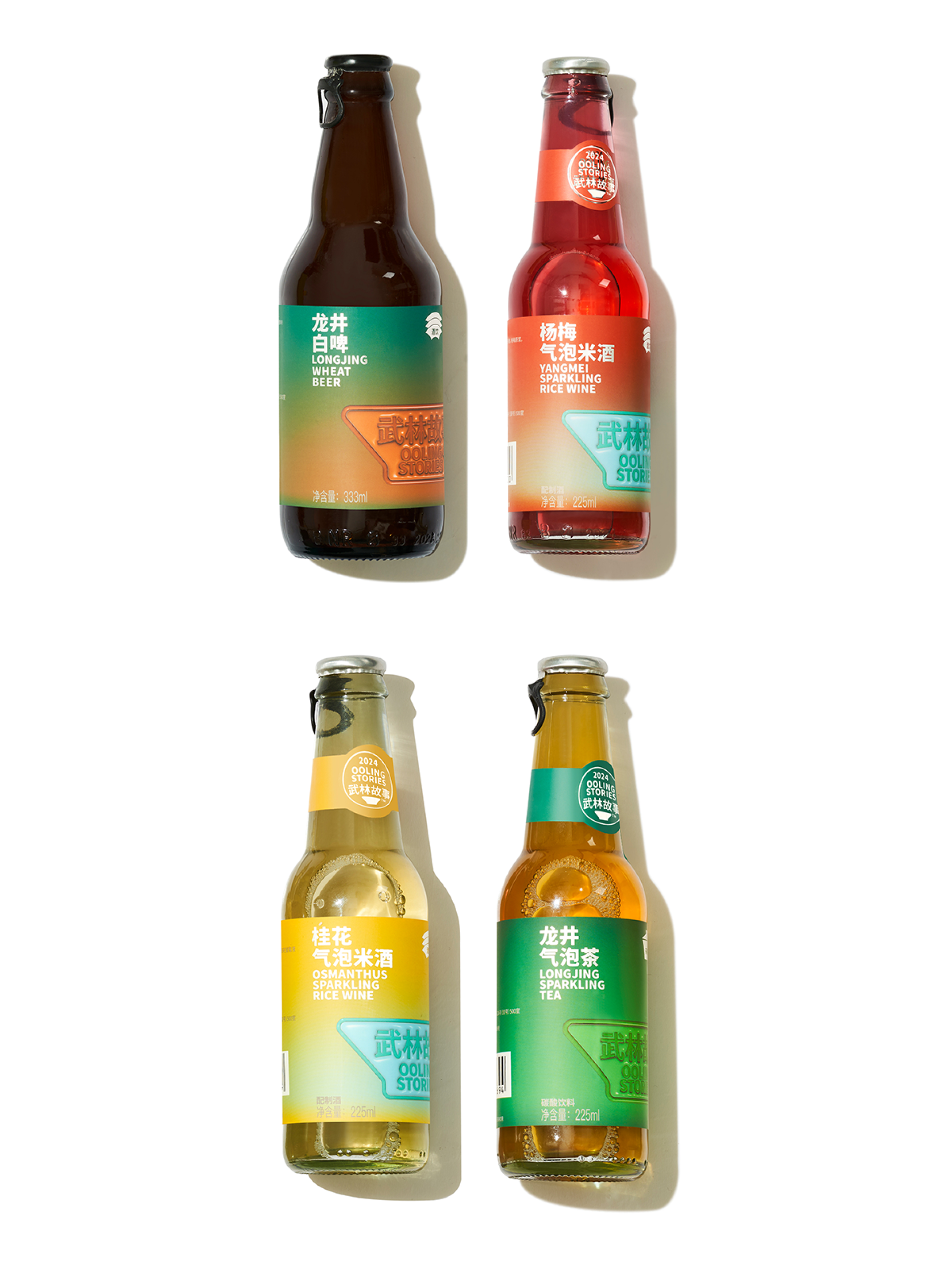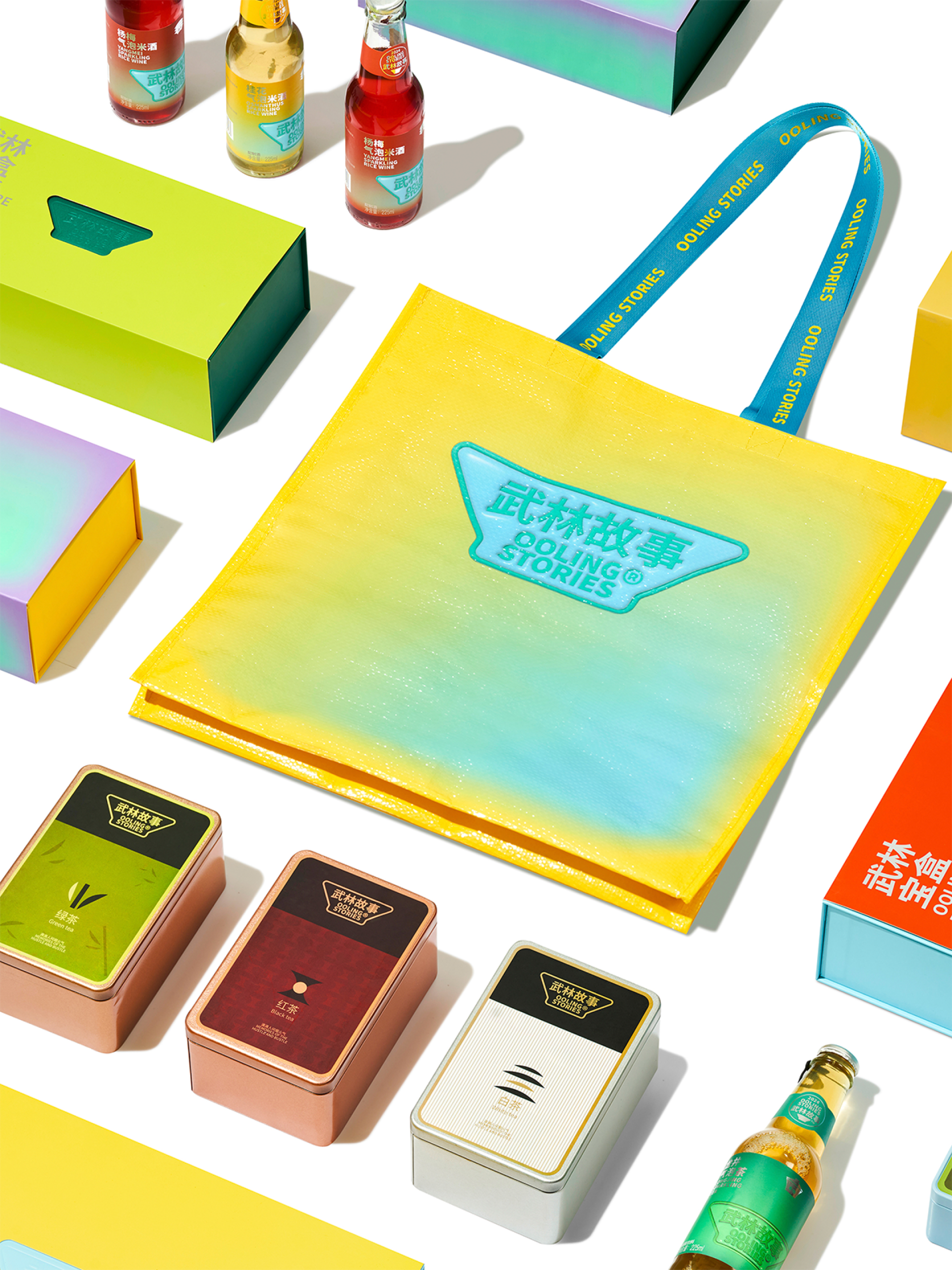 The complete visual concept for the OOLING STORIES brand, including the gift box packaging and the design of the liquor products. Inspired by the "liquor bowl" shape and the culture of Hangzhou's Wulin Night Market, the design combines minimalist style and bold colors to creatively showcase local charm and modern beauty. The packaging design incorporates color gradients and interactive elements, breaking away from the typical look of traditional liquor products. It also enhances functionality and entertainment by incorporating details such as die-cuts and pull-ring caps. At the same time, it uses environmentally friendly materials to embody the idea of sustainable development, striking a balance between aesthetics and functionality. The range not only carries on the cultural heritage of Hangzhou, but also showcases the innovative and original design, providing a distinctive experience for today's young consumers.