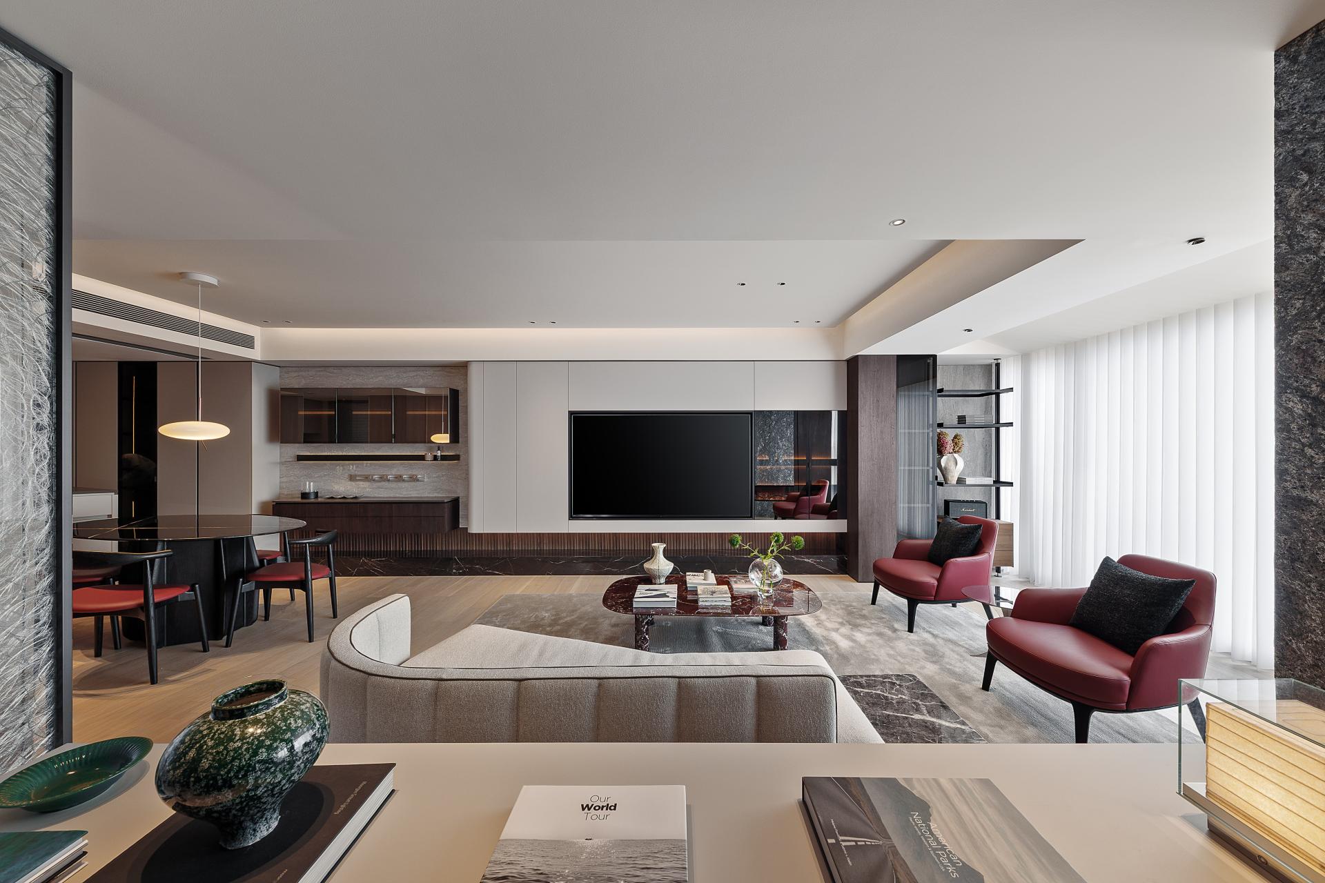 This project is a high-end renovation, aiming to optimize the existing layout while elevating the residence’s tactile quality and emotional depth. By reorganizing spaces, juxtaposing materials, and enhancing natural and artificial lighting, the once fragmented structure transforms into an open, multi-layered living environment. A palette of soft beige and warm coffee tones, complemented by wood’s warmth, stone’s coolness, glass’s transparency, and metal’s refinement, creates a balance of contrast and harmony—delivering a space that is both luxurious and inviting.