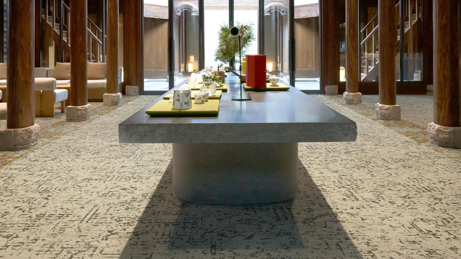 The series integrates 3D abstract weaving technology and precision machinery, creating a subtle micro-relief texture that enhances both the visual appeal and tactile comfort of the carpet. The surface layer utilizes hand-tufted-like multi-color jacquard weaving technology, providing full, plush pile for a more comfortable feel underfoot. The large-size backing enhances the sense of space, offering excellent soundproofing and noise reduction. The high-density structure increases durability while optimizing fire-resistance, significantly improving space safety. The unique gradient-dyeing yarn technique introduces rich color transitions and artistic layers, enhancing the aesthetic appeal.