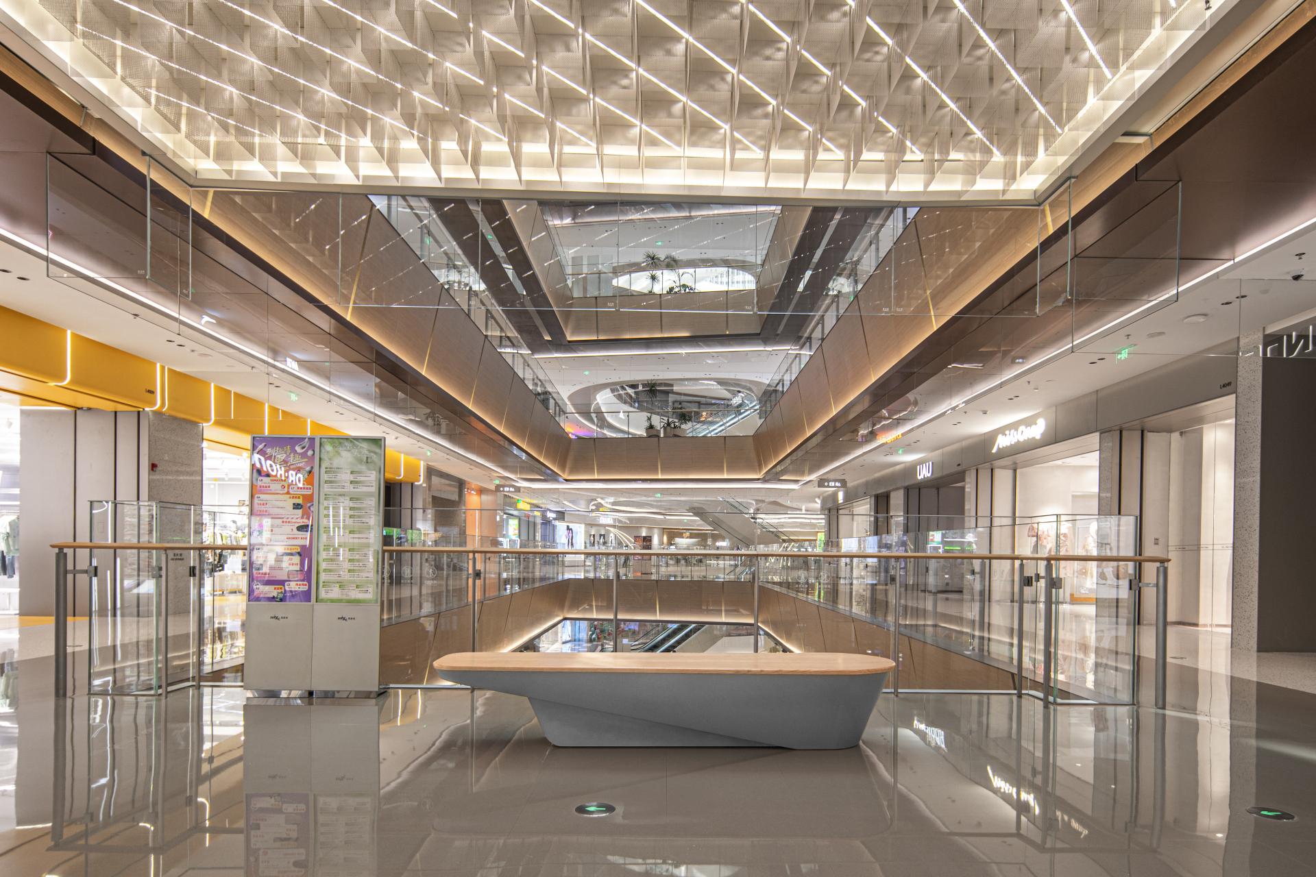 One of the most striking features is the "Mall + Park" ecological design. A 40,000㎡ open urban green corridor brings natural light and rooftop gardens, emphasizing the harmony between commercial and natural environments. Over 40% of the brands are regional firsts, including flagship stores like Apple Store, Ole’ supermarket, and Vientiane Cinemas, strengthening the center's allure for high-end consumers. Partnerships with art institutions such as UCCA Lab create a "City Art Lounge," offering permanent art exhibitions that elevate the shopping experience.