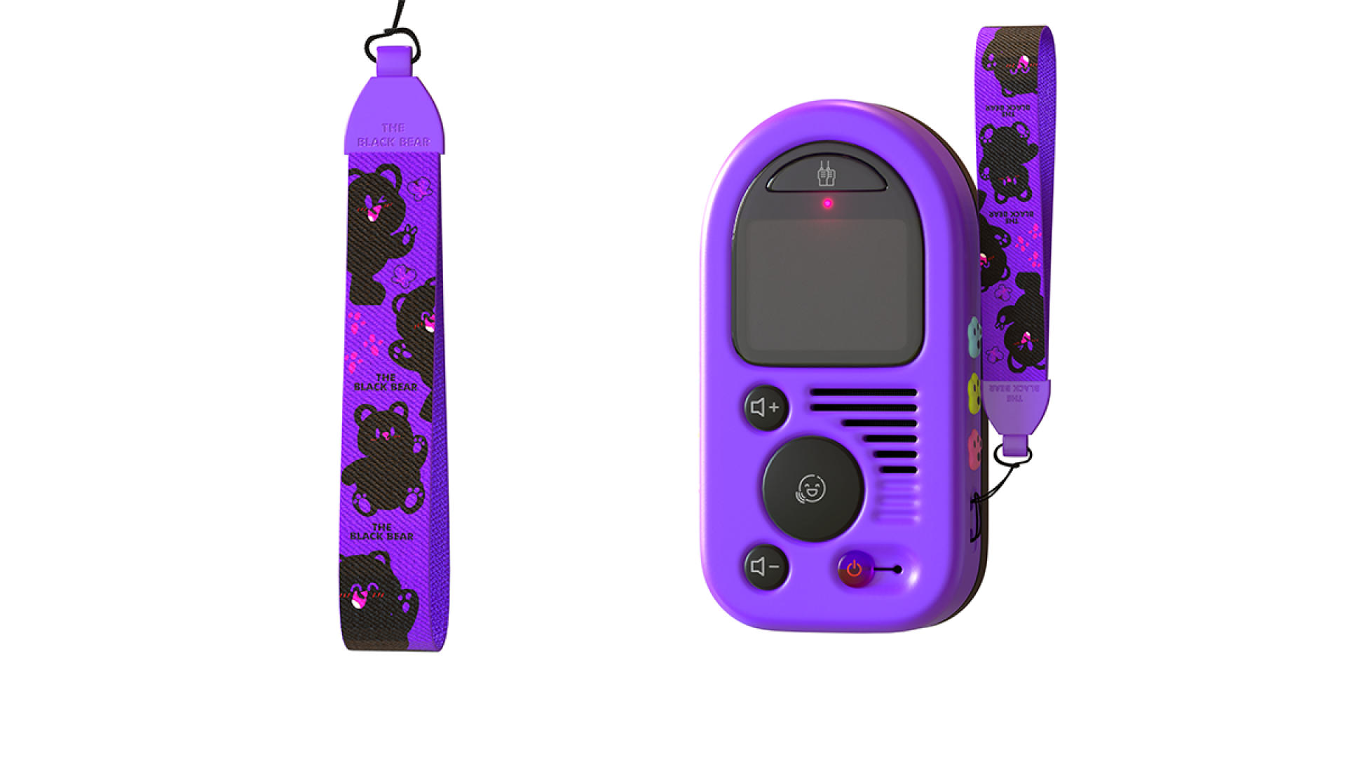 The Black Bear AI Walkie-talkie is designed specifically for students, with a cute design and simple functionality. It has a large screen and oversized buttons for easy and quick operation. The curved design and soft edges help prevent injury from collisions, meeting students' aesthetic and functional preferences. The product is made from durable, drop-resistant materials and has a portable design, making it safe and comfortable for children to use. At the same time, it combines visual appeal and functionality, offering a comfortable grip and incorporating IP elements into the non-slip design to achieve a harmonious blend of beauty and utility. The Black Bear partnership IP draws inspiration from parallel universes, allowing for customization of appearance and features to enhance enjoyment and interaction. Adding IP features to the product enhances its appeal as a learning tool and developmental companion for children.