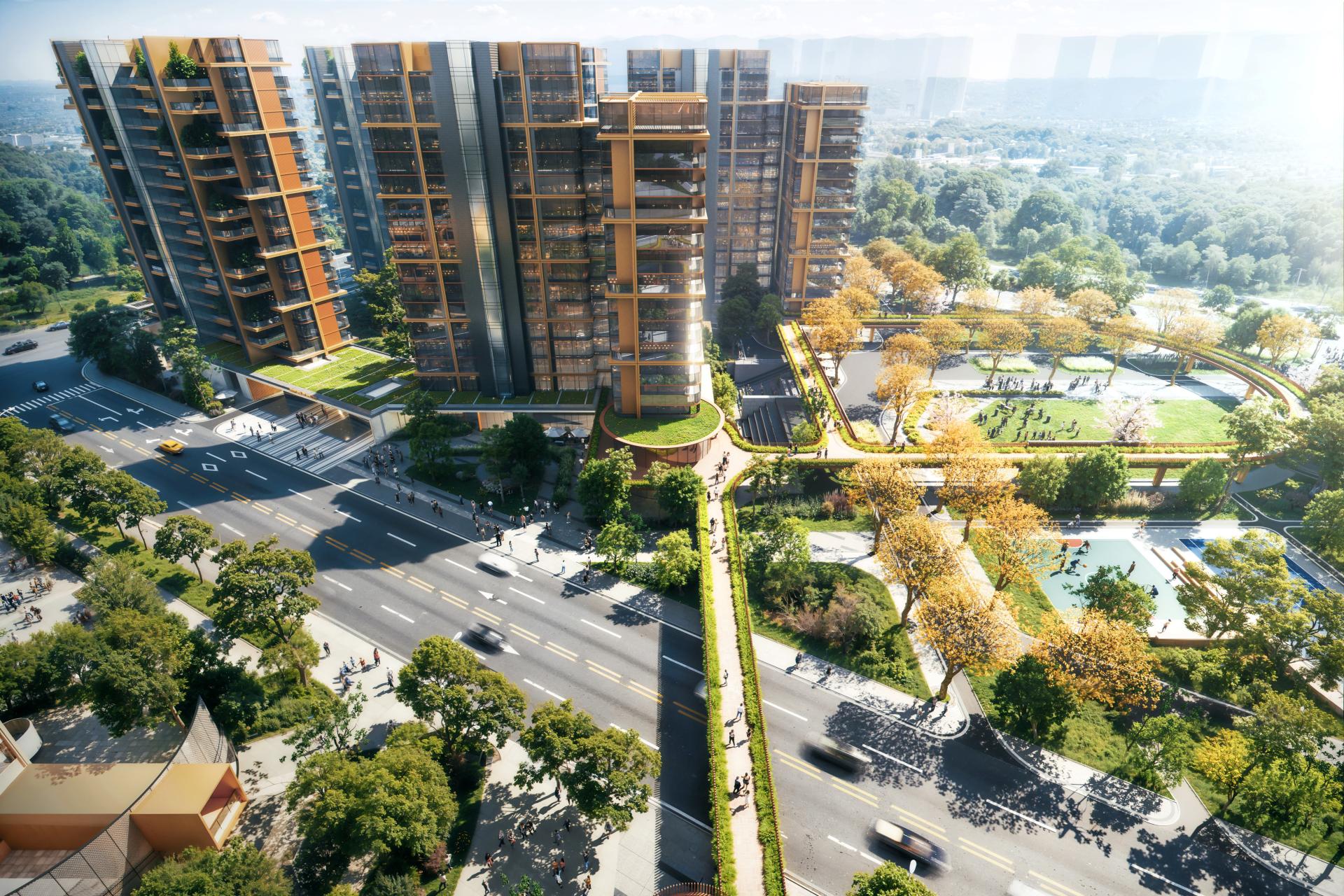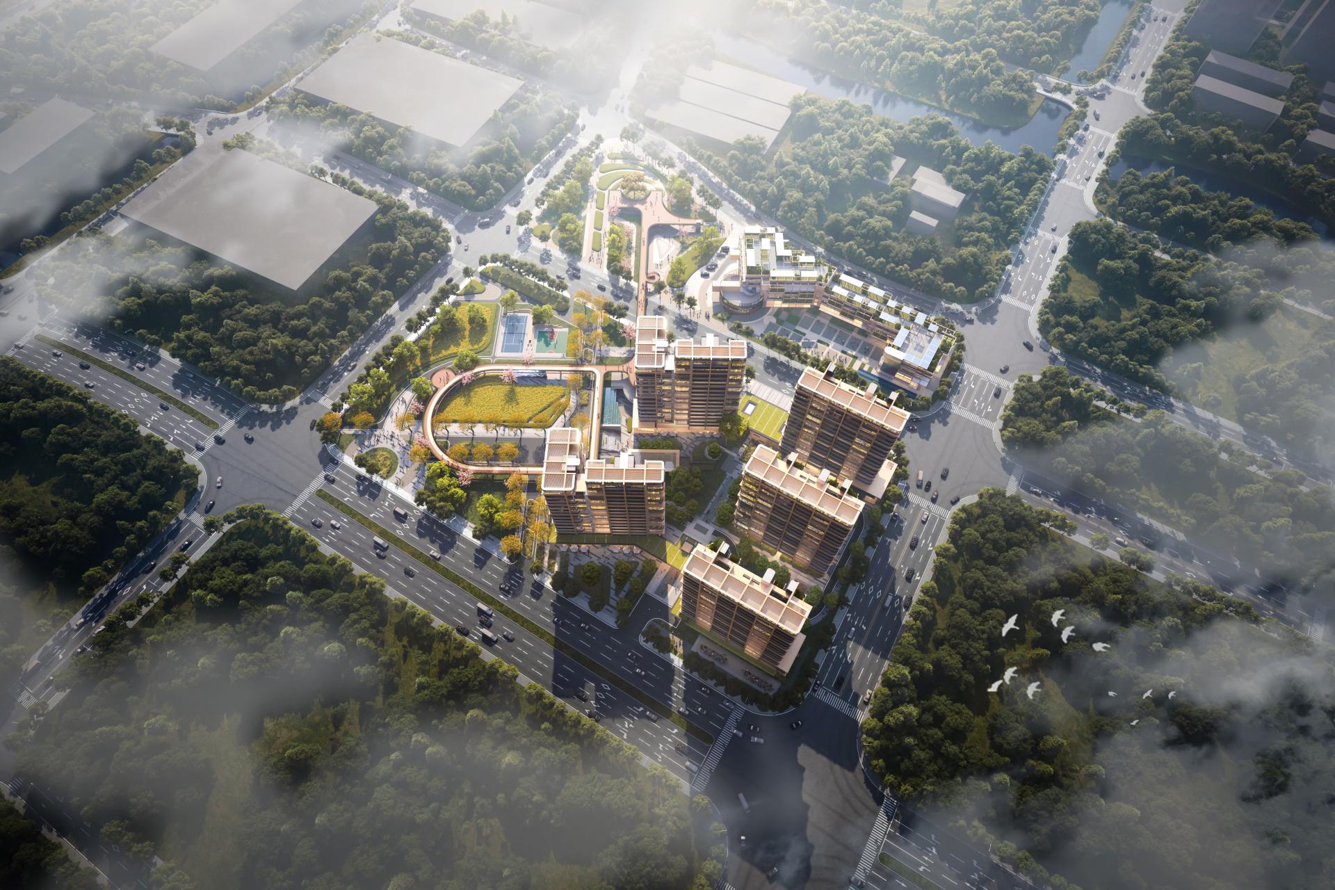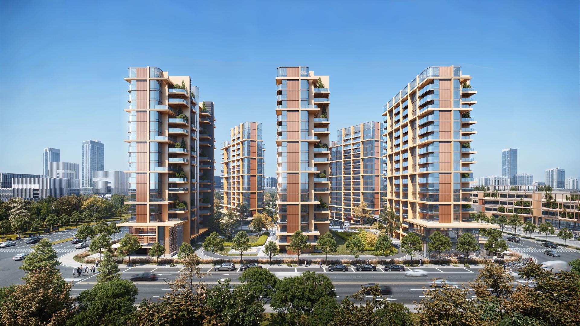 Project located in the core of Shanghai’s South Grand Area, leveraging the TOD hub and riverside park, to create a 37,100㎡ community. The planning employs a "Boundary Reversal" strategy, utilizing ground-floor residential setbacks to intersperse 2,600㎡ of commercial and all-age supporting facilities along the perimeter, forming a vibrant interface; while partially sunken underground clubs and courtyards are created. The overall landscape integrates with the west park greenbelt, connecting the community via a 100-meter plane tree boulevard, and an aerial corridor links the 21-class kindergarten to the north. The entire project adopts heavy-timber prefabricated construction, integrates green building technologies such asphotovoltaic roofs and rainwater gardens, establishing the nation’s first carbon-negative community demonstration project.
