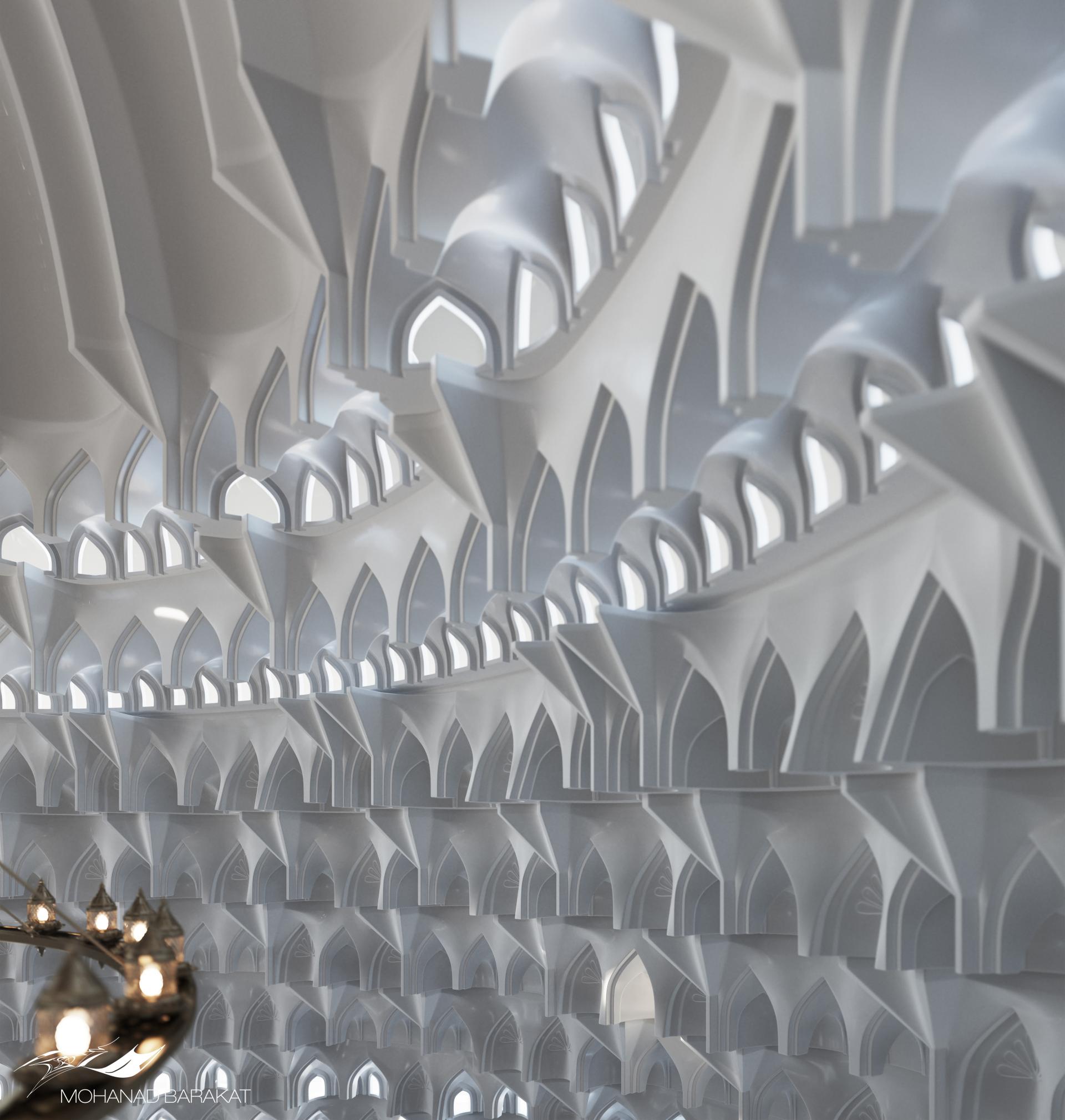 The mosque’s design embodies spirituality and contemplation, with its symphony of repeating patterns fostering a meditative atmosphere. Every architectural element is meticulously crafted to highlight Islamic geometric artistry while maintaining a seamless connection to its natural surroundings. This interplay of form, light, and shadow transforms the Muqarnas Mosque into a living, breathing masterpiece that evolves with time, offering visitors an ever-changing visual and spiritual experience.