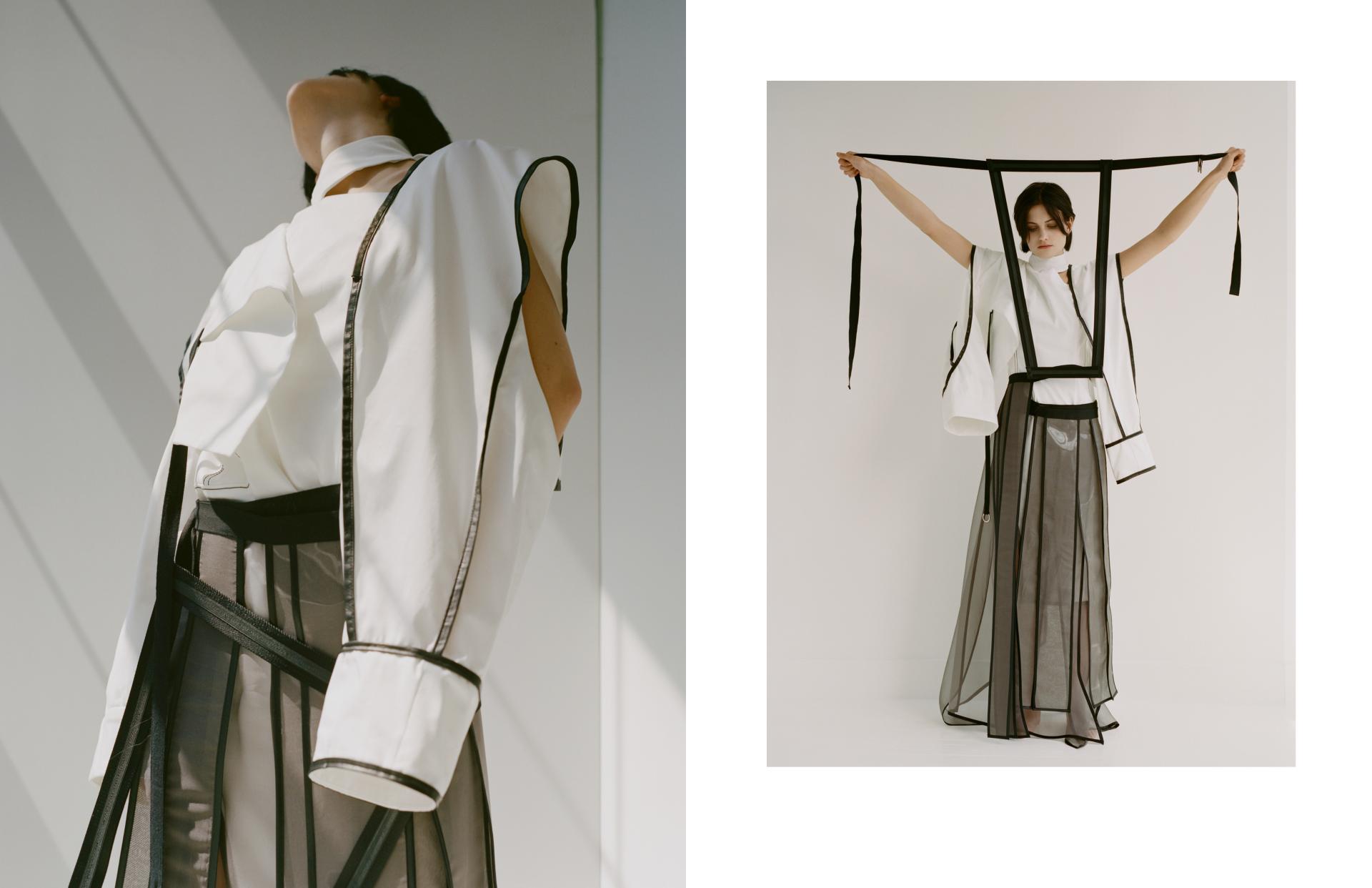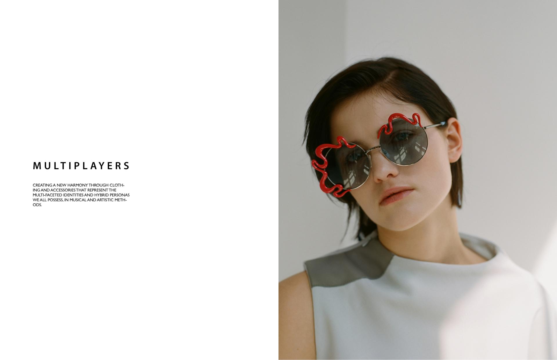 Multiplayers is a self-referential collection that explores the fusion of art, music, film, and literature to create a unique visual identity-one that resonates with personal rhythm and harmony. Inspired by the body as an instrument, each piece reflects the movement, fluidity, and improvisational energy of musicians in performance. Balancing structure and spontaneity, the designs mirror the hybrid personas of modern life. Through a blend of precision and instinct, Multiplayers transforms creative influences into a wearable expression of ever-evolving identity.