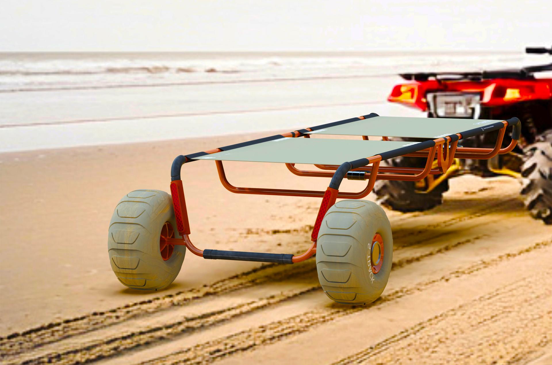 S-Track is designed for beach rescues, solving traditional stretchers’ issues of sinking in sand and relying only on manual transport. Its foldable design enables quick deployment and compact storage, while ATV towing reduces resistance for better mobility and efficiency. By combining manual and vehicle-assisted transport, Strack lessens physical strain, speeds up patient transfer, and offers a more efficient, terrain-adapted solution than conventional rescue stretchers.