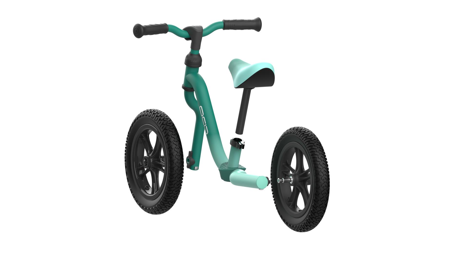 Nimble supports swapping between 10-inch silent foam tires for indoor use and 12-inch pneumatic tires that enable older kids to achieve higher speeds and drifting tricks for increased playability. The height of the handlebars and saddle can be adjusted to accommodate children's growth, thereby lowering usage costs.