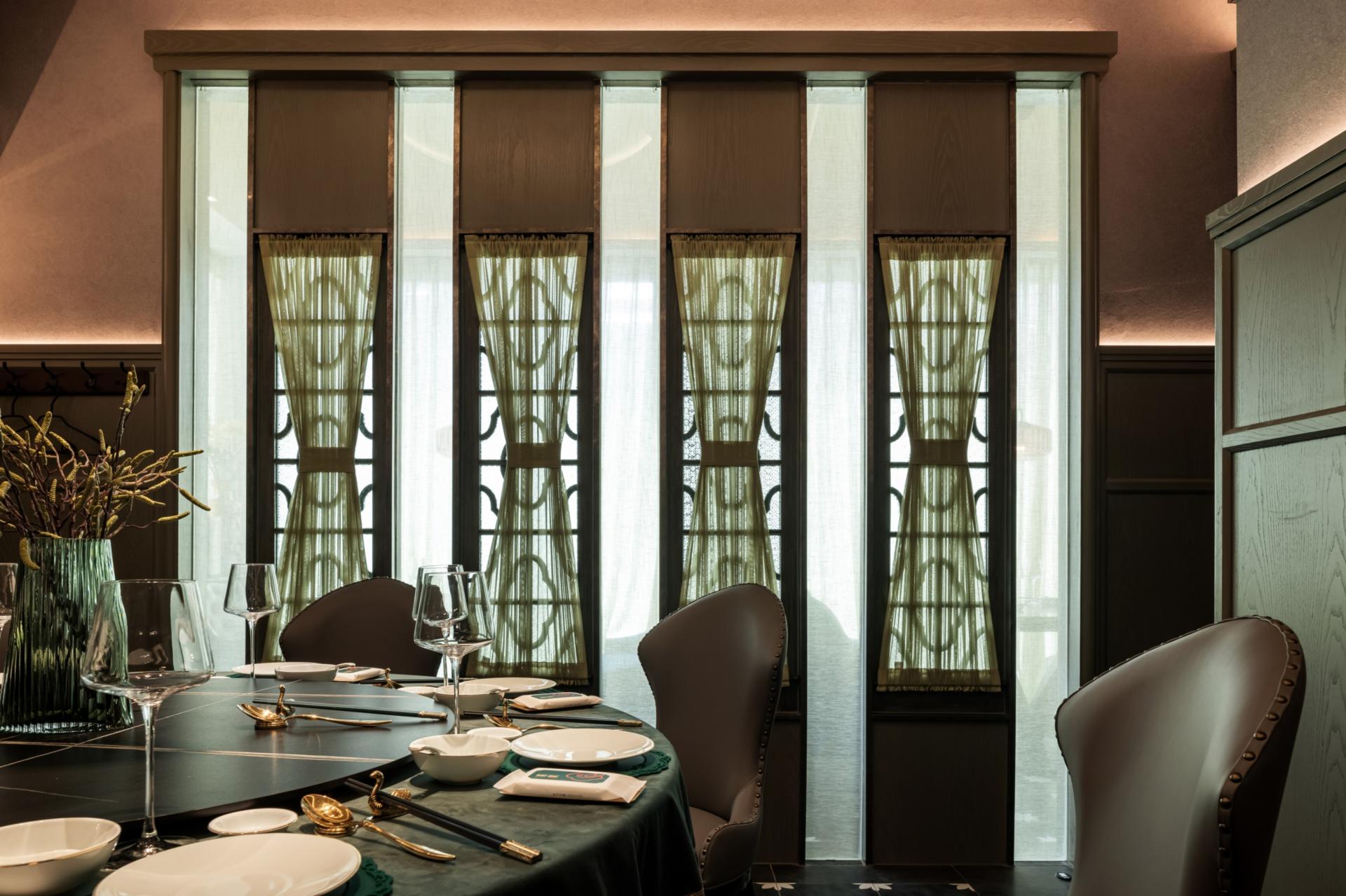 A garden has been added at the entrance. The interior layout mainly con-sists of a dining hall, private rooms, and a seating area. In terms of color us-age, traditional Republican architectural color elements have been extracted and reorganized with modern materials to enhance the space's modernity. A modern lighting design approach has been used to shape the spatial hierarchy and charm.
