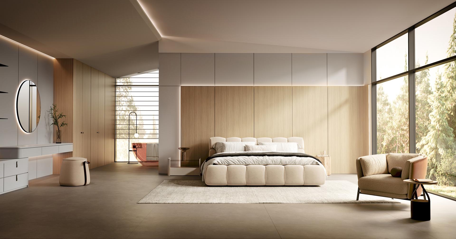 Bedroom: Self-reflection meets restorative sleep in a sanctuary of stillness.