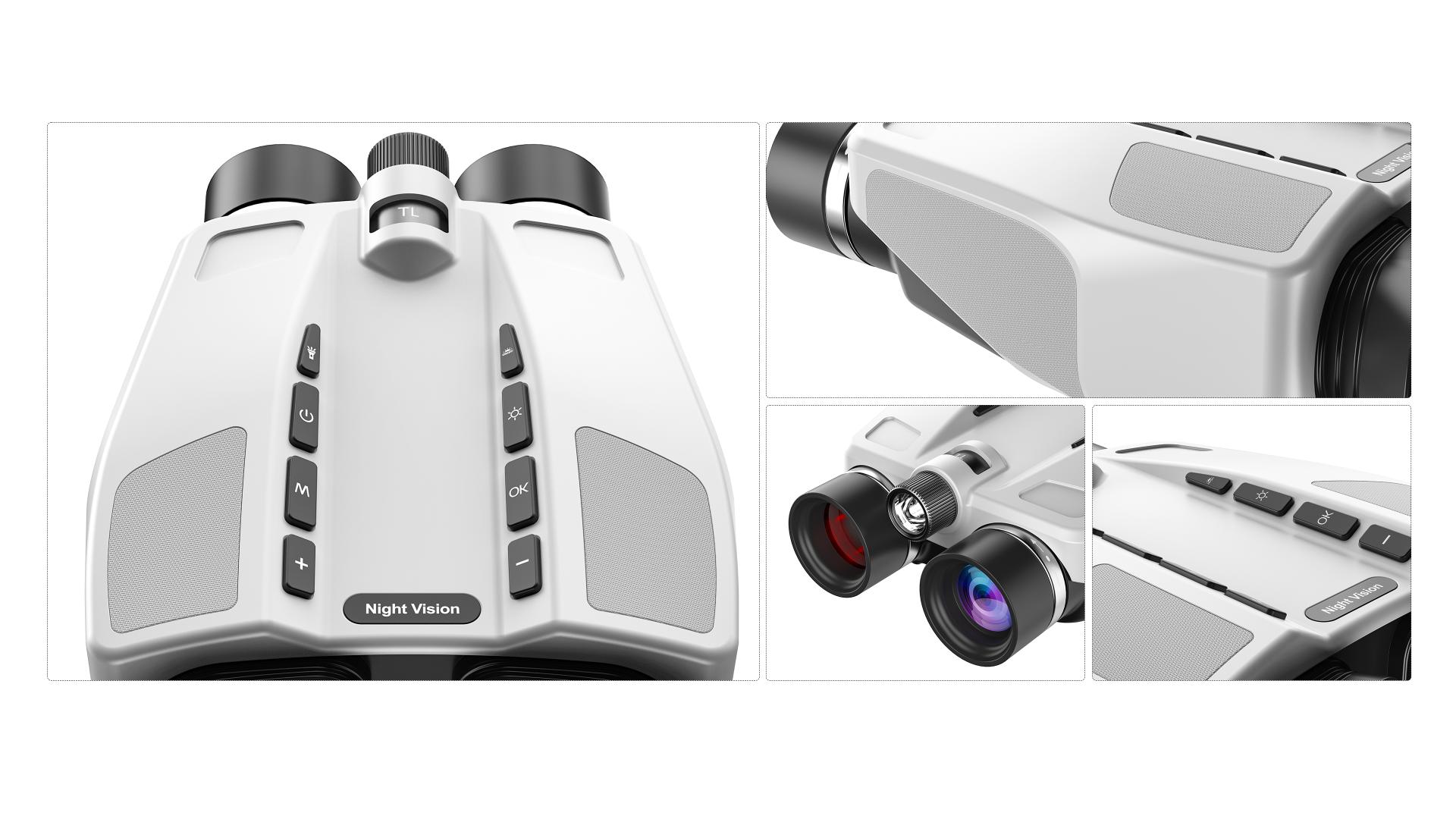 The DZ381 Night Vision Device features a streamlined, modern design that blends professionalism with a stylish aesthetic. The body is primarily white, accented with black details, presenting a unique sense of technology and professionalism. The housing is made from high-strength composite materials, ensuring durability and lightness for easy portability, while being adaptable to various environments and usage conditions.