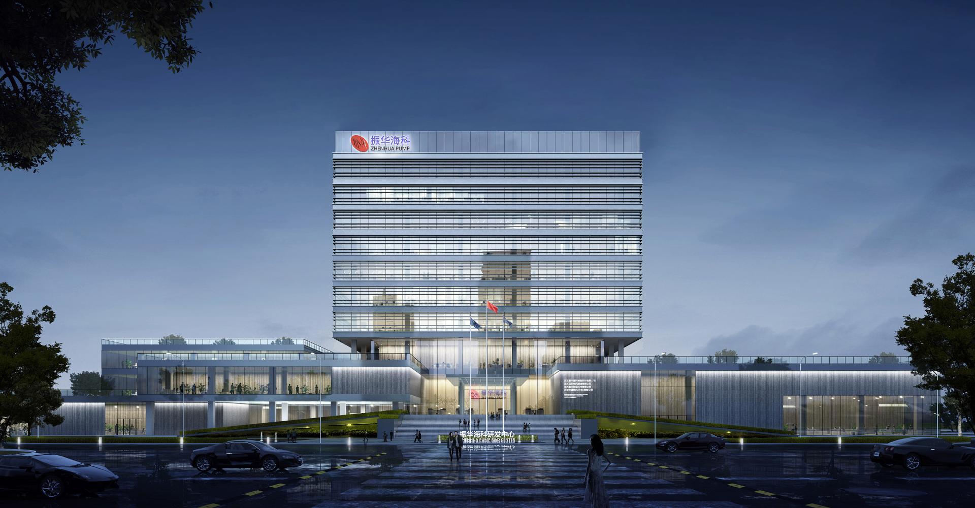 The R&D center building is designed with the concept of an industrial aircraft carrier. Through the superimposed volumes of the podium, a three-dimensional garden is formed, creating a good office environment and visual hierarchy, highlighting the core position and visual focus of the tower. The main facade materials of the R&D center building are GRC panels and glass curtain walls, which are simple and modern. The tower adopts a square-shaped plan layout, which is efficient in use and forms a full-height landscape atrium, which is conducive to achieving a good architectural microclimate.