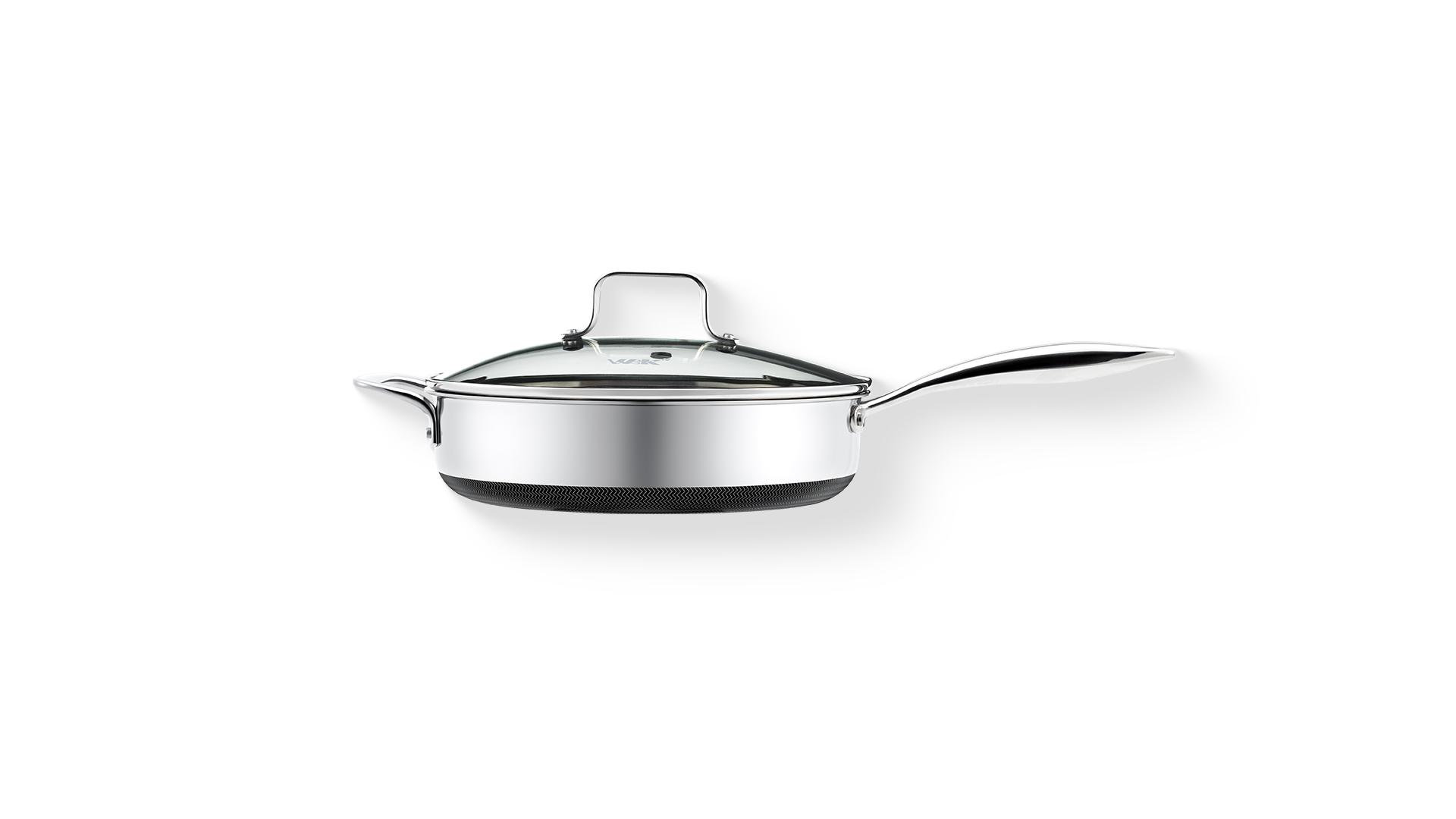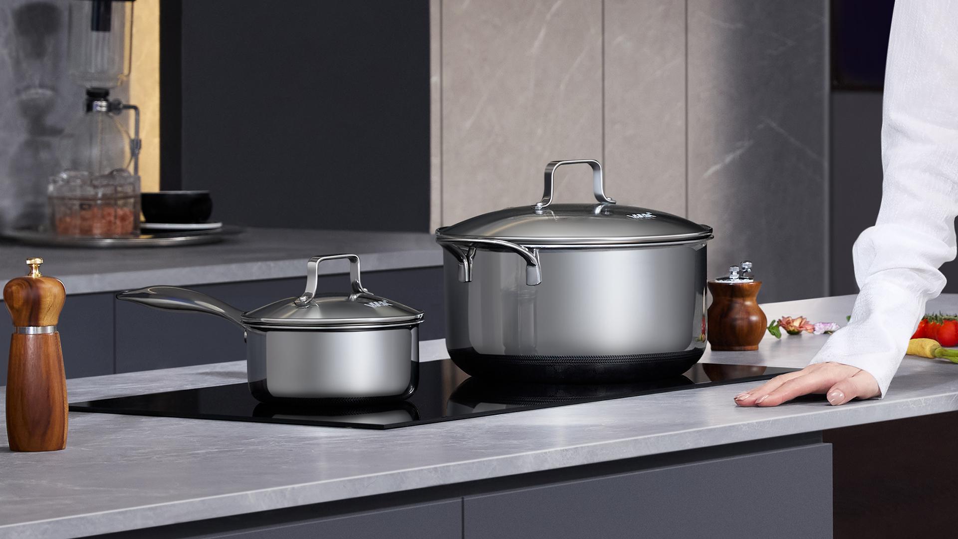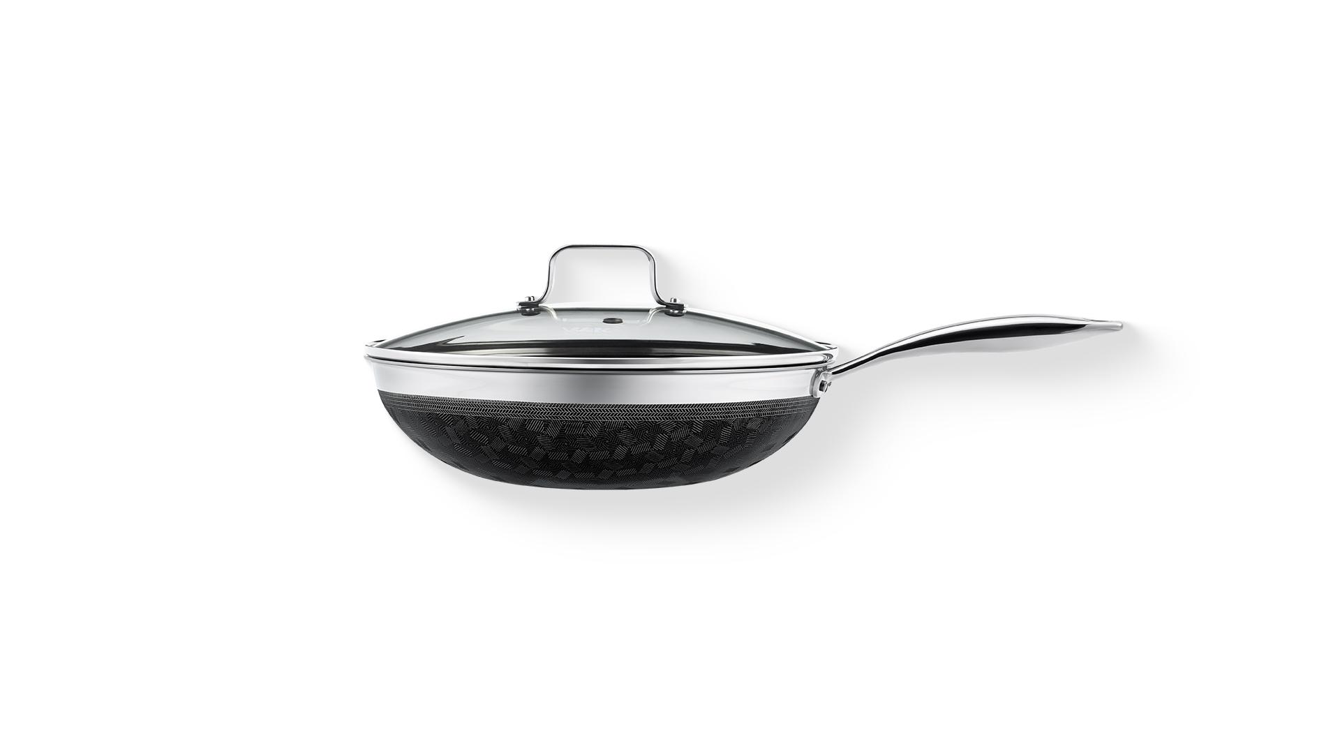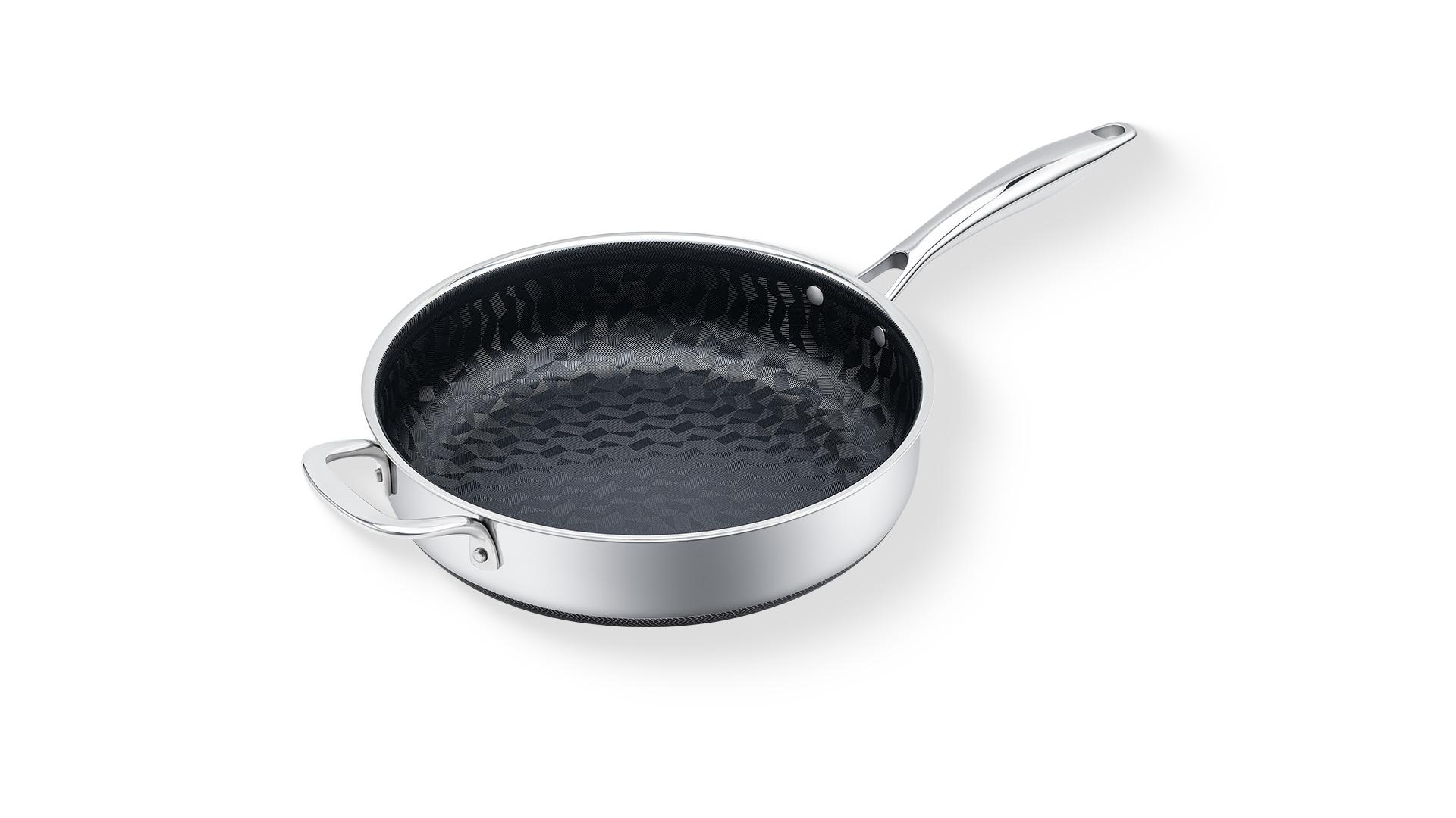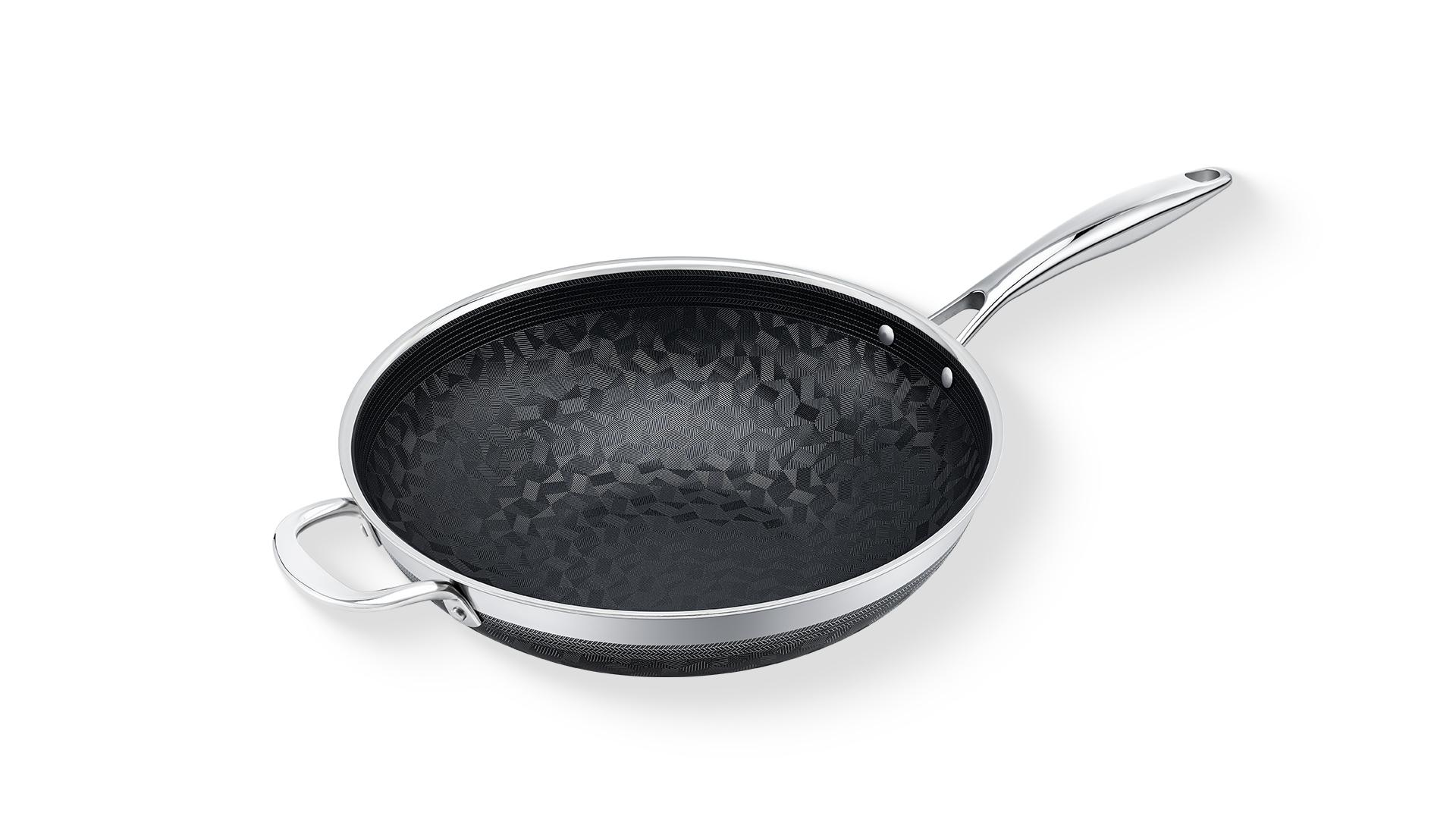 3D Cyclone Pattern Non-Stick Pan redefines healthy cooking standards through innovative materials and structural breakthroughs. Its inner layer is crafted from food-grade 304 stainless steel to ensure cooking safety, while the middle layer utilizes 1050-series aluminum alloy for instant and uniform heat distribution. The base layer, reinforced with 430 stainless steel, provides stable structural support, enhancing overall durability by 80% while maintaining a lightweight design. The pan’s surface is coated with a cutting-edge nano-ceramic layer that achieves physical non-stick performance through a seamless, pore-free texture, eliminating the health risks associated with traditional chemical coatings. A laser-etched pattern creates microscopic air cushions on the surface, reducing food contact area and adhesion while delivering a striking 3D visual effect. Combined with an oil-water repellent design, this innovation simplifies cleanup—stubborn residues can be effortlessly removed with water alone, no detergents required. The exterior features a high-hardness ceramic spray coating that resists scratches, withstands high temperatures without discoloration, and enhances both stain resistance and aesthetics. Further optimizing performance, the hexagonal heating zones at the base maximize thermal conductivity and heat retention through an expanded surface area, enabling rapid, even heating that cuts cooking time and reduces energy consumption by over 30%.