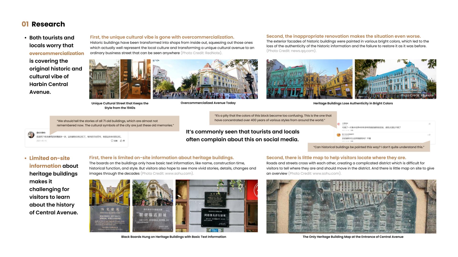On the Central Avenue in Harbin, China, a strong sense of history intertwined with modern vibrancy attracts both locals and tourists. However, merging modernity and historic preservation remains to be a challenge. On the one hand, people worry that overcommercialization is covering the original historic and cultural vibe of Harbin Central Avenue. On the other, the limited on-site information makes it challenging for visitors to fully appreciate its architectural heritage.