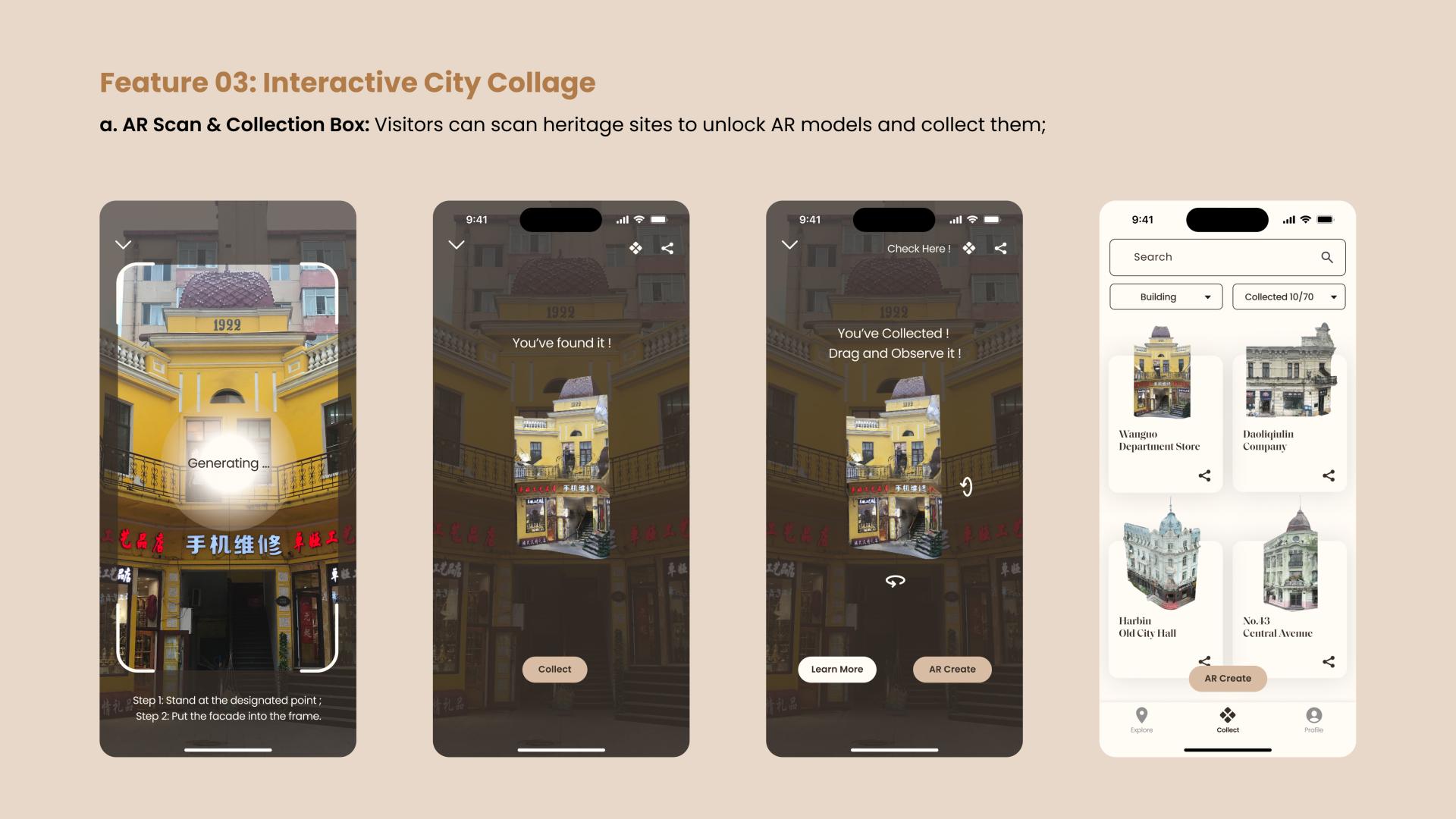 Harbin ARcollage bridges this gap through an interactive digital experience with three key features: