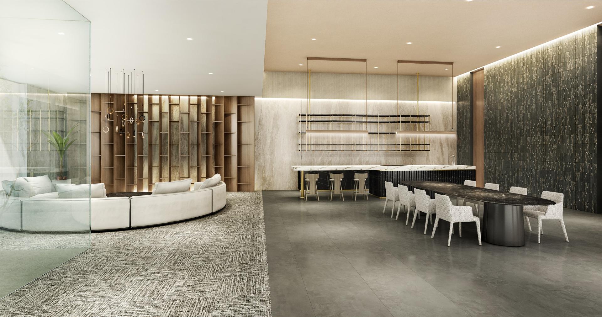 The interior is also lit by indirect lighting, which can be used to create a variety of different atmospheres depending on the time of day and the purpose of use.
