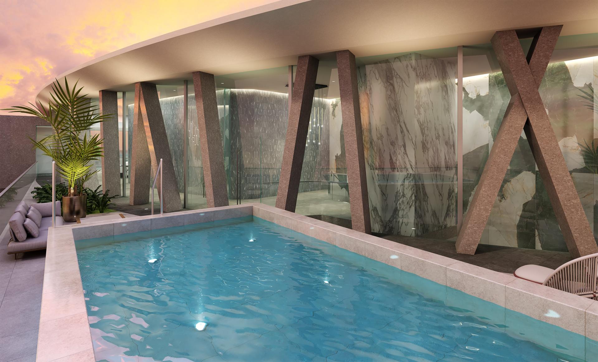 The second floor is considered to be the main floor for living, and for this reason, the terrace with the pool is also located on the second floor.