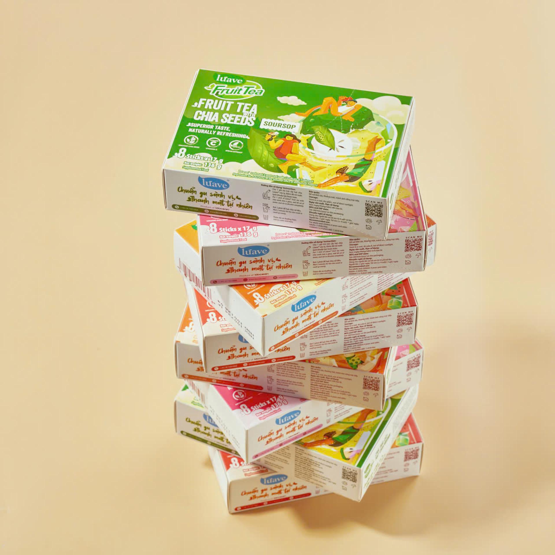 Result: The final packaging design is distinctive, clear, and eye-catching, standing out from competitors on the shelf. The design elements are versatile and can be easily adapted for marketing campaigns or brand storytelling. Launching in 2024, Luave Instant Fruit Tea is set to achieve significant success in both the Vietnamese and global markets.
