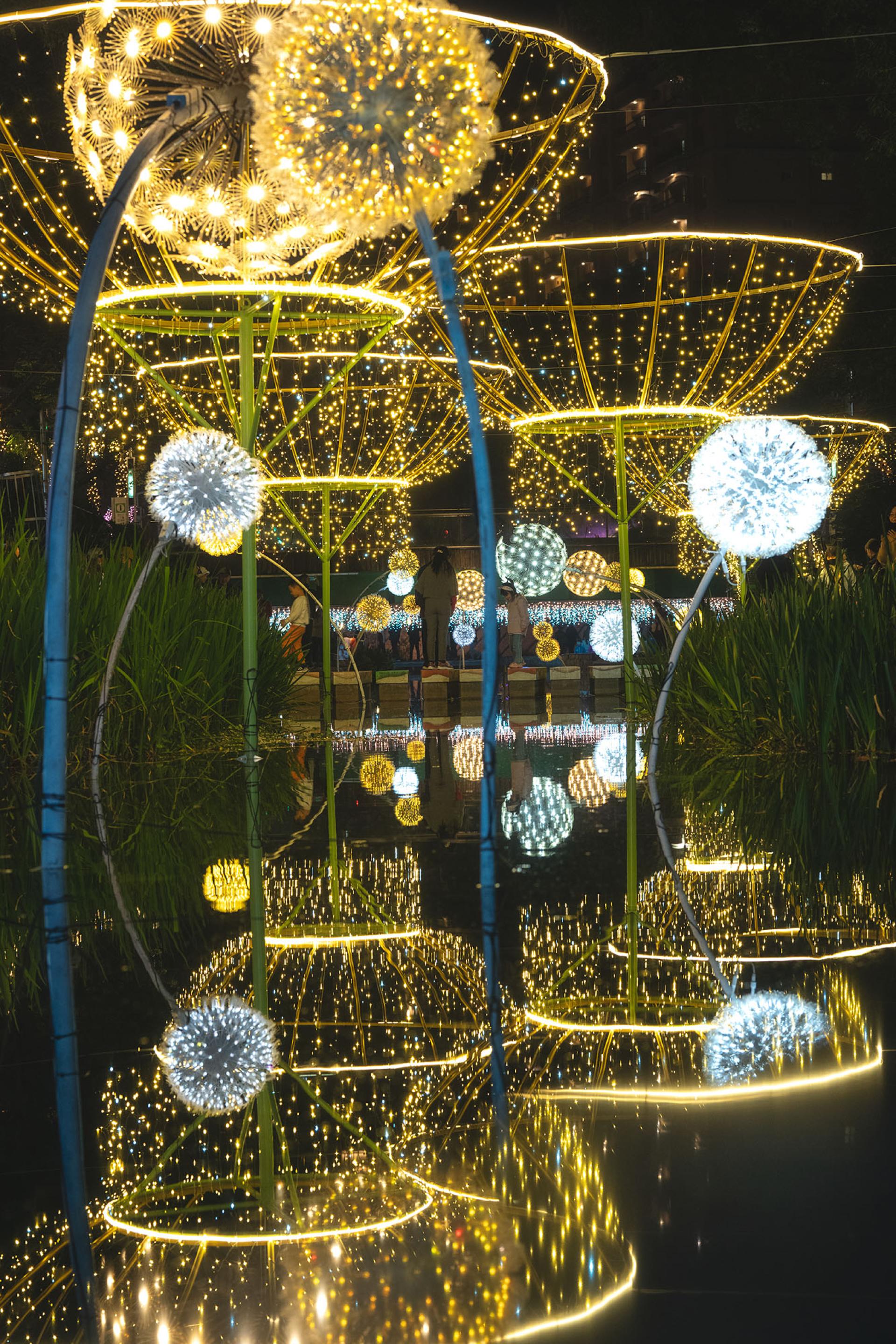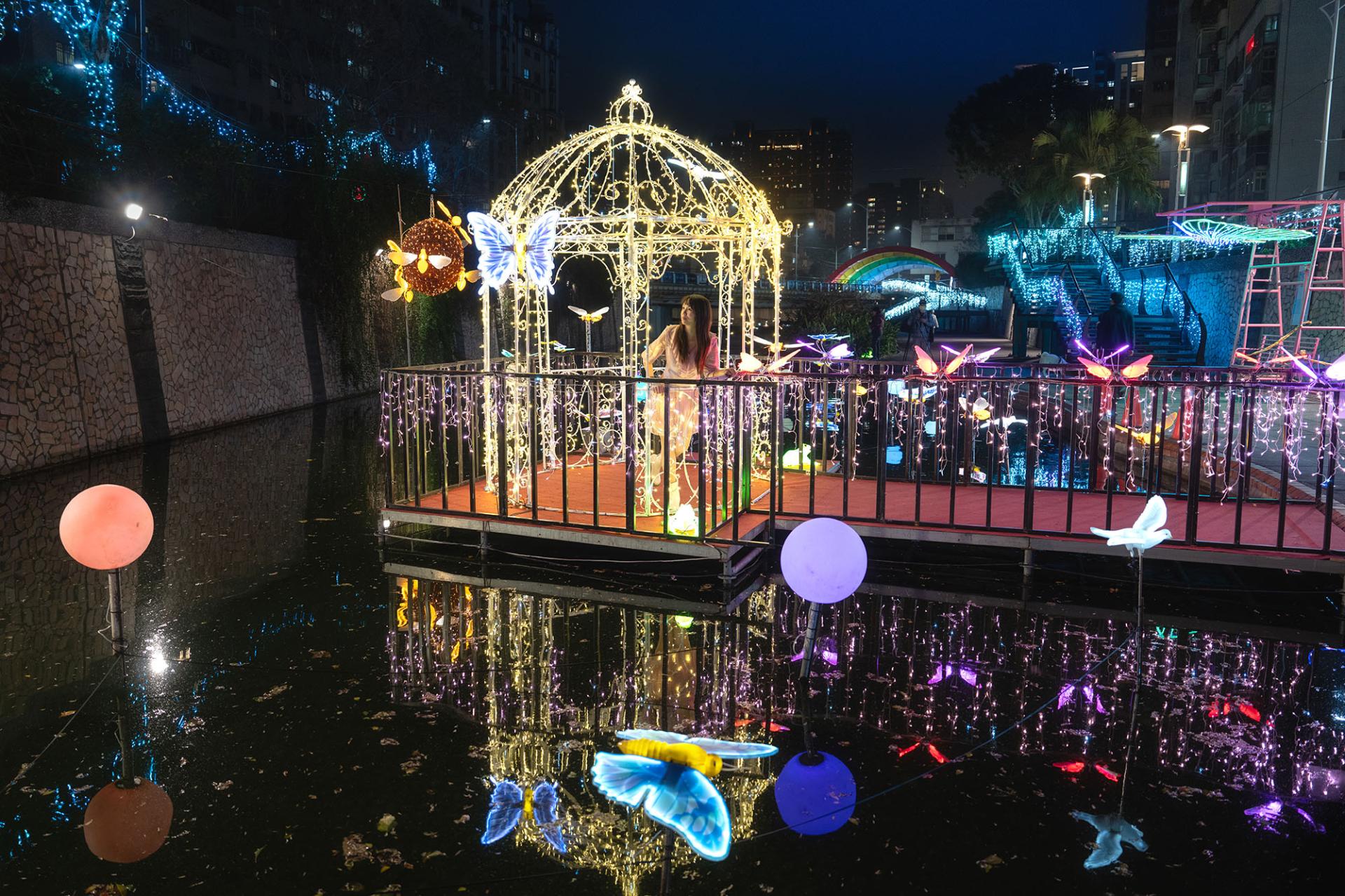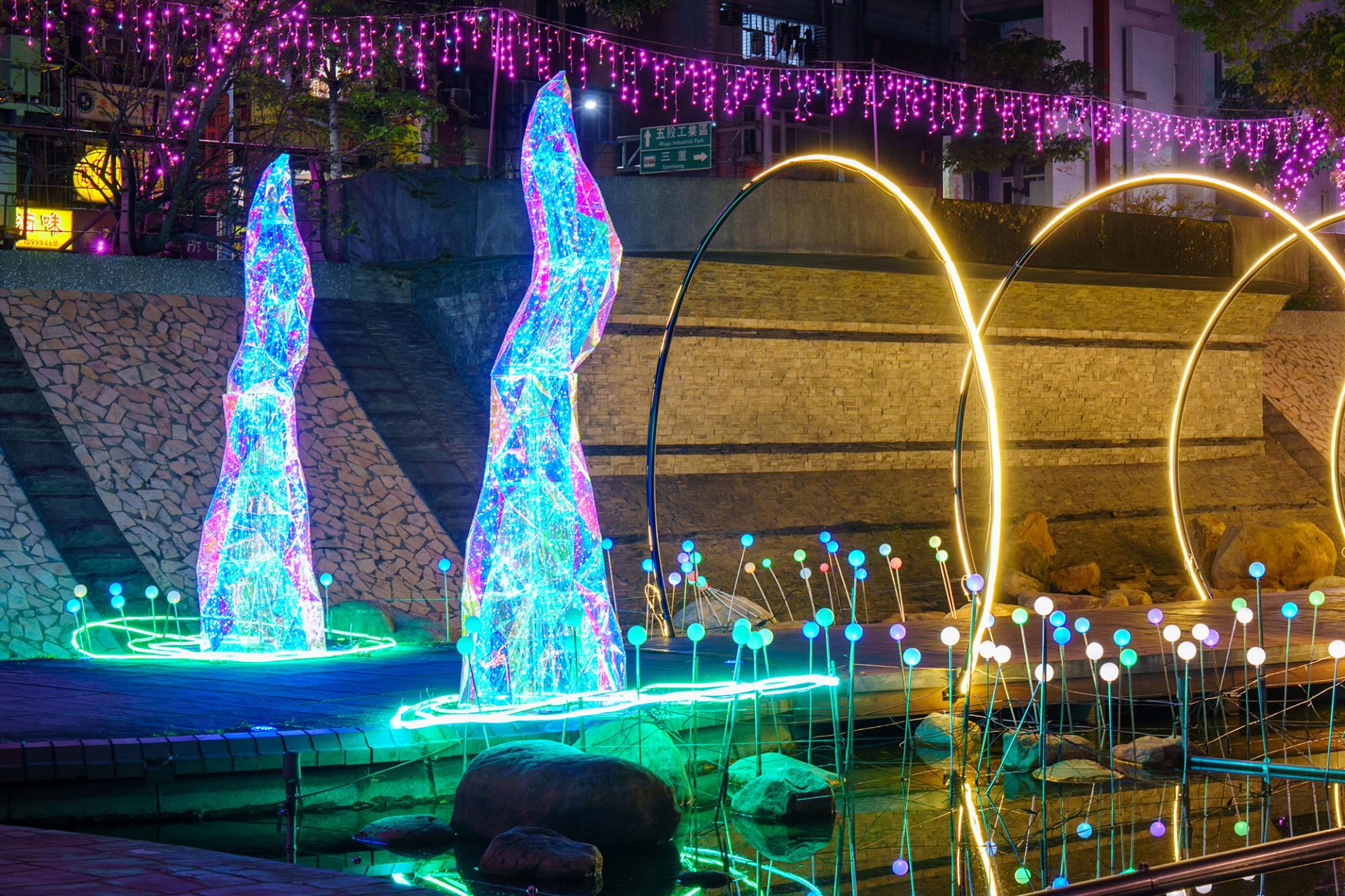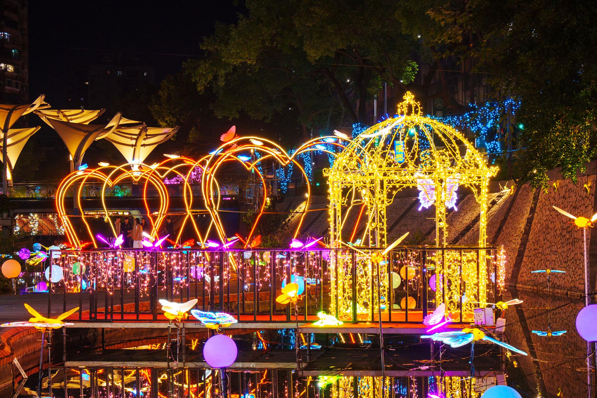 The 2025 New Taipei City Zhonggang Light Festival runs from February 26 to March 23, 2025. The event features a 5-meter-tall “Goddess of Light” display standing proudly on the Confidence Bridge, symbolizing blessings and protection. With over three million LED lights illuminating four main exhibition zones, the festival utilizes gentle lighting effects to craft a fairy-tale-like, heartwarming experience that embodies inner purity and beauty.