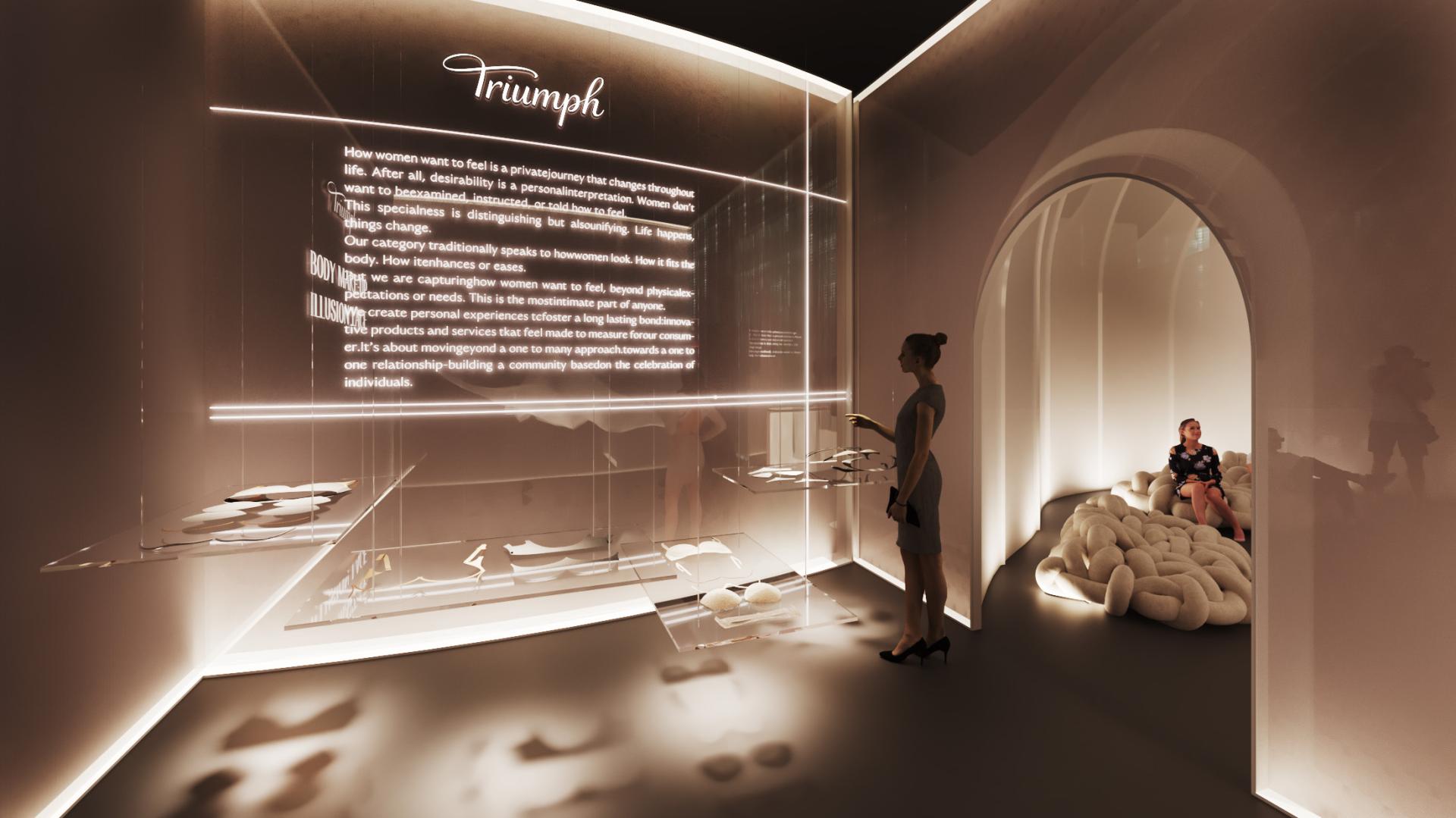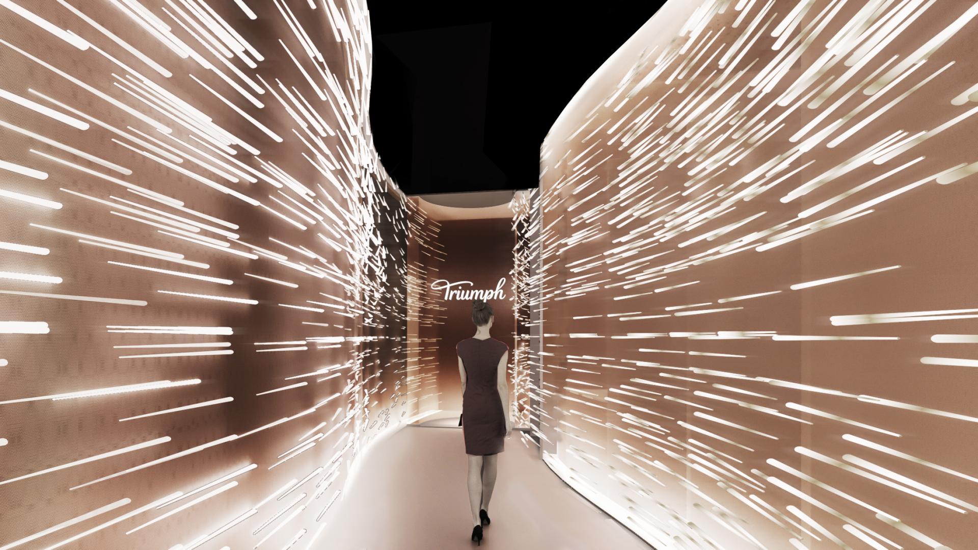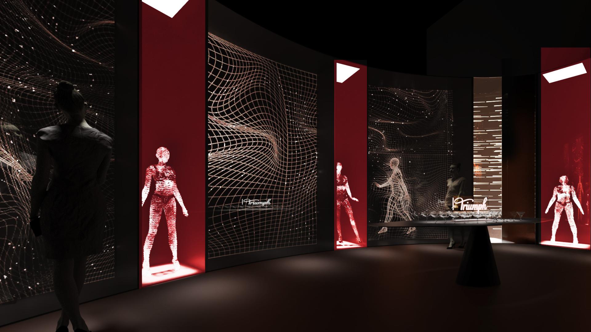 This project is a launch event for Triumph’s new bra collection, where we were responsible for the interior design of the event venue. Inspired by the product’s "zero gravity" concept and its unique structural network, our design translates these ideas into a dynamic spatial experience.