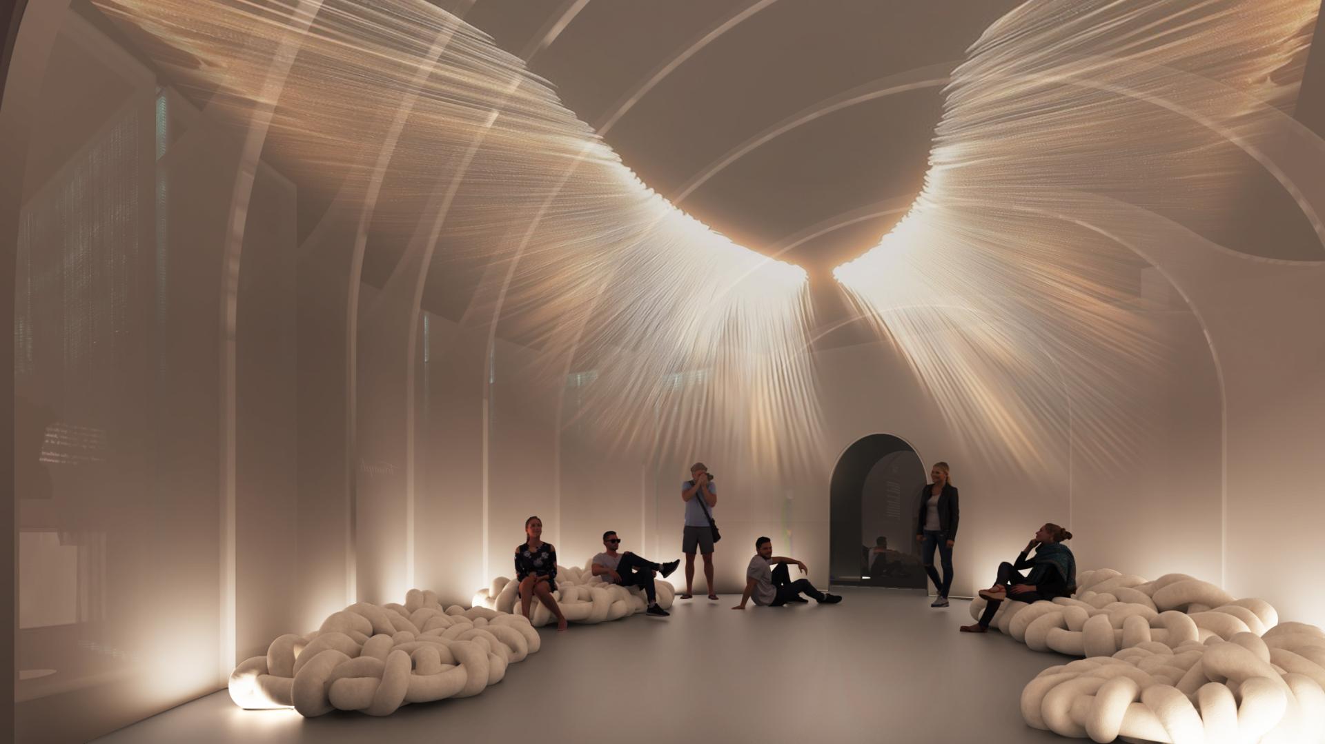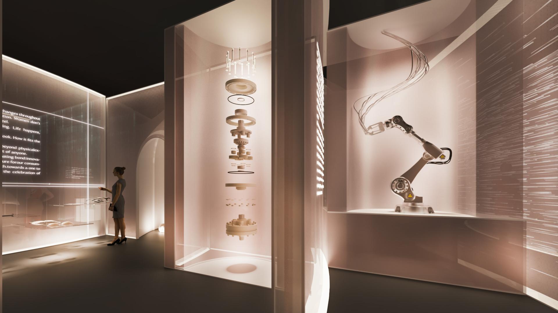 The venue features several distinct areas: the brand launch stage at the entrance, a narrative-driven brand story corridor, an immersive domed art space, a product display area, an interactive bar, and a gift section. These spaces are interconnected through an intricate web-like structure, mirroring the product’s design and creating a cohesive storytelling experience.