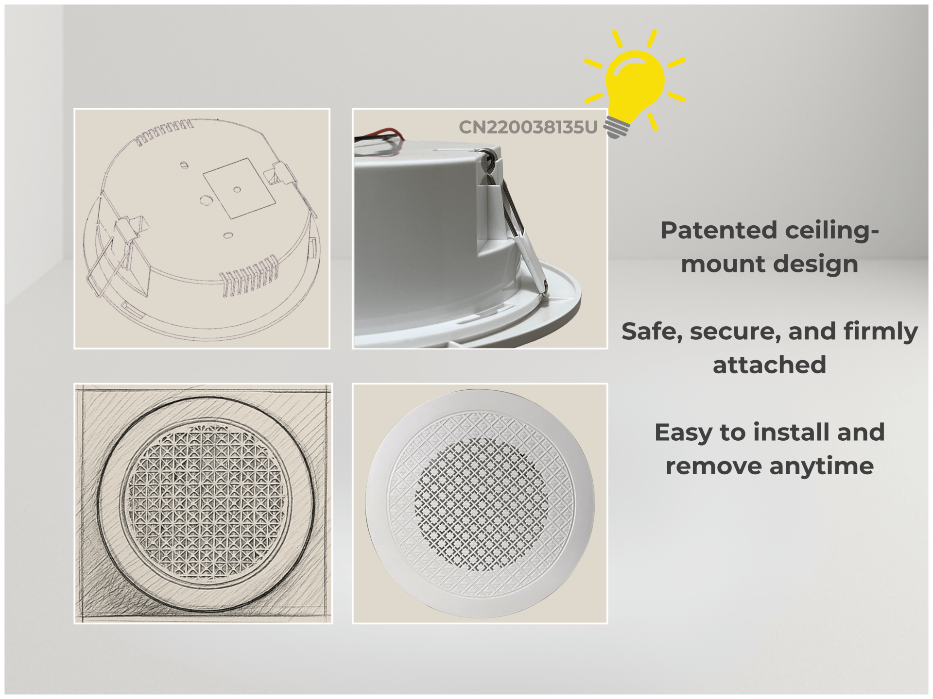 Designed with both form and function in mind, the series features minimalist, refined, and patented designs that suit any environment. Installation is effortless with our patented ceiling-mount and wall-mount options, enabling easy setup and removal at any time, while ensuring a safe, secure, and firm fit that never loosens.